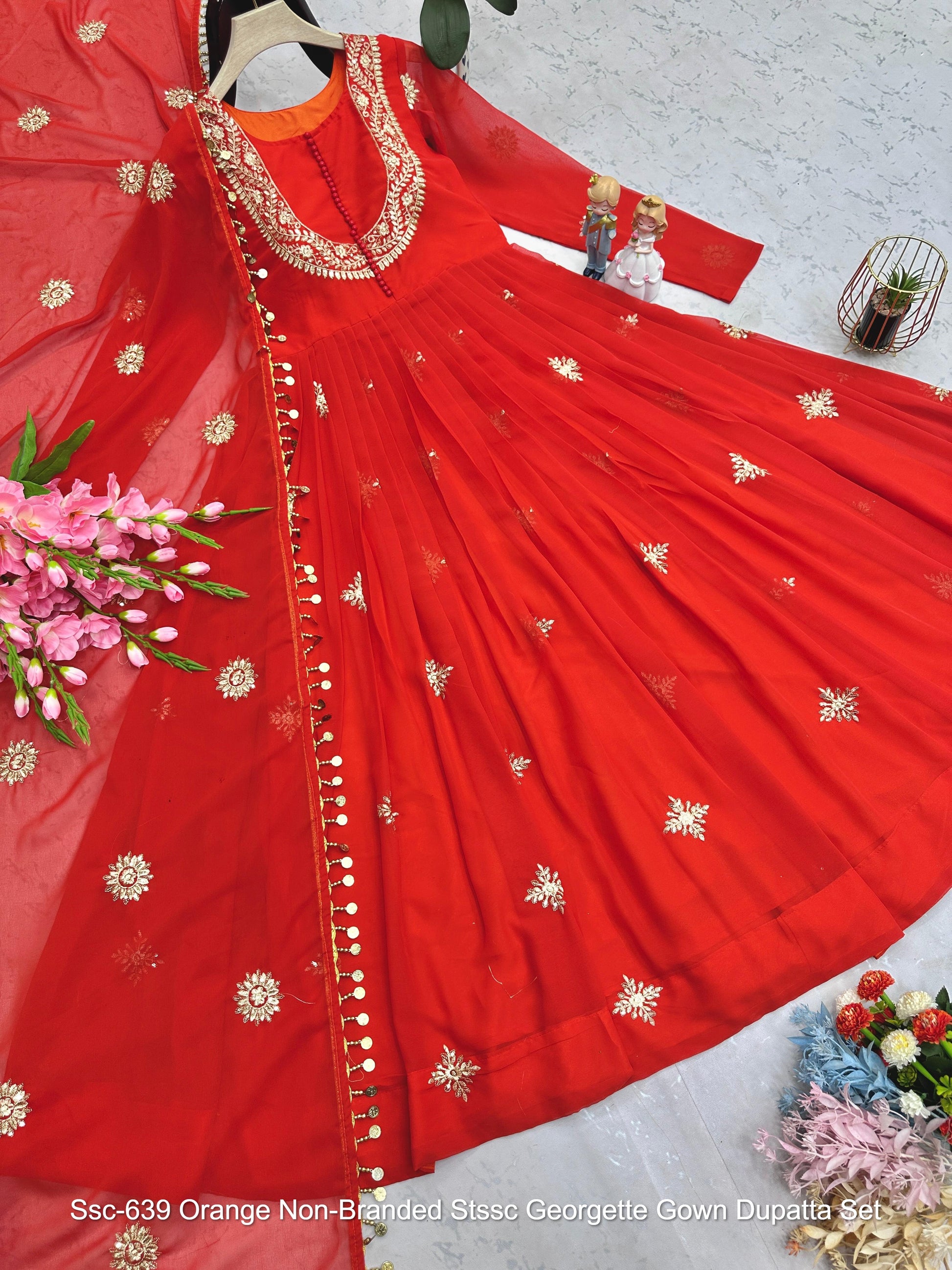 Ssc-639 Orange Non-Branded Stssc Georgette Gown Dupatta Set