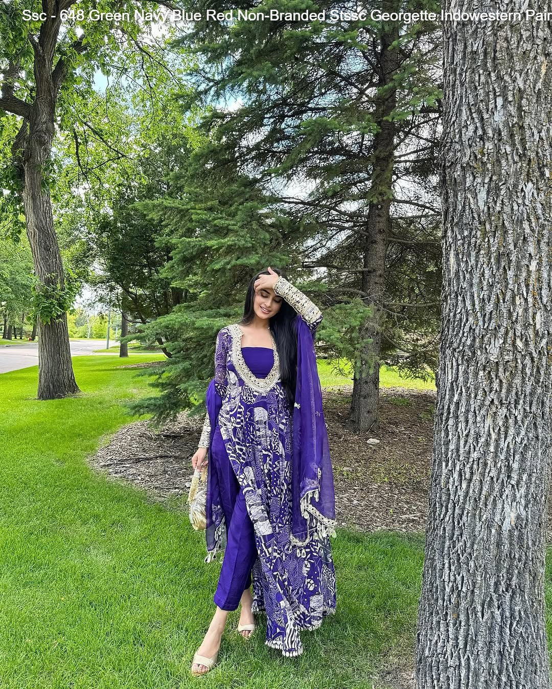 Ssc - 648 Green Navy Blue Red Non-Branded Stssc Georgette Indowestern Pair