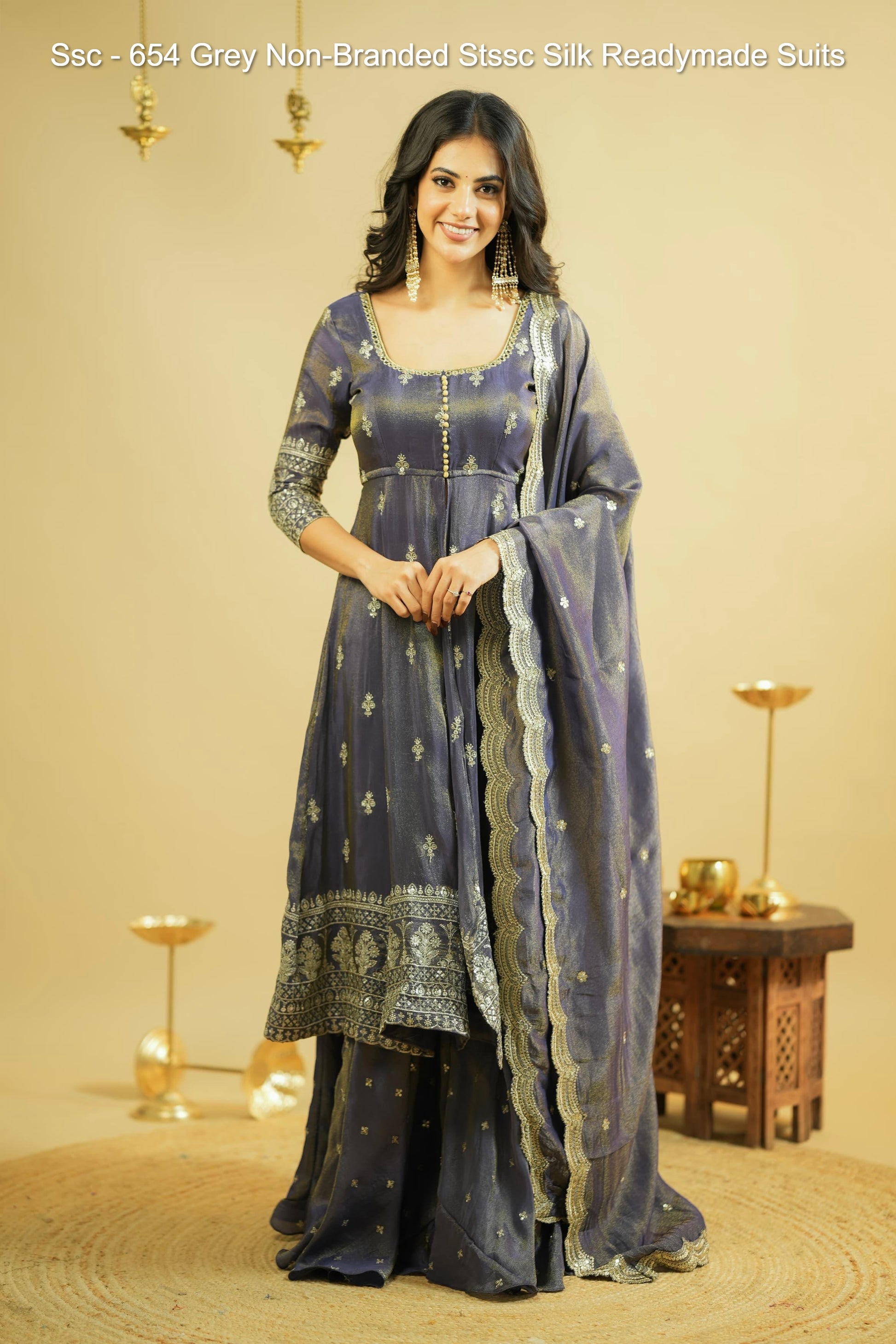 Ssc - 654 Grey Non-Branded Stssc Silk Readymade Suits