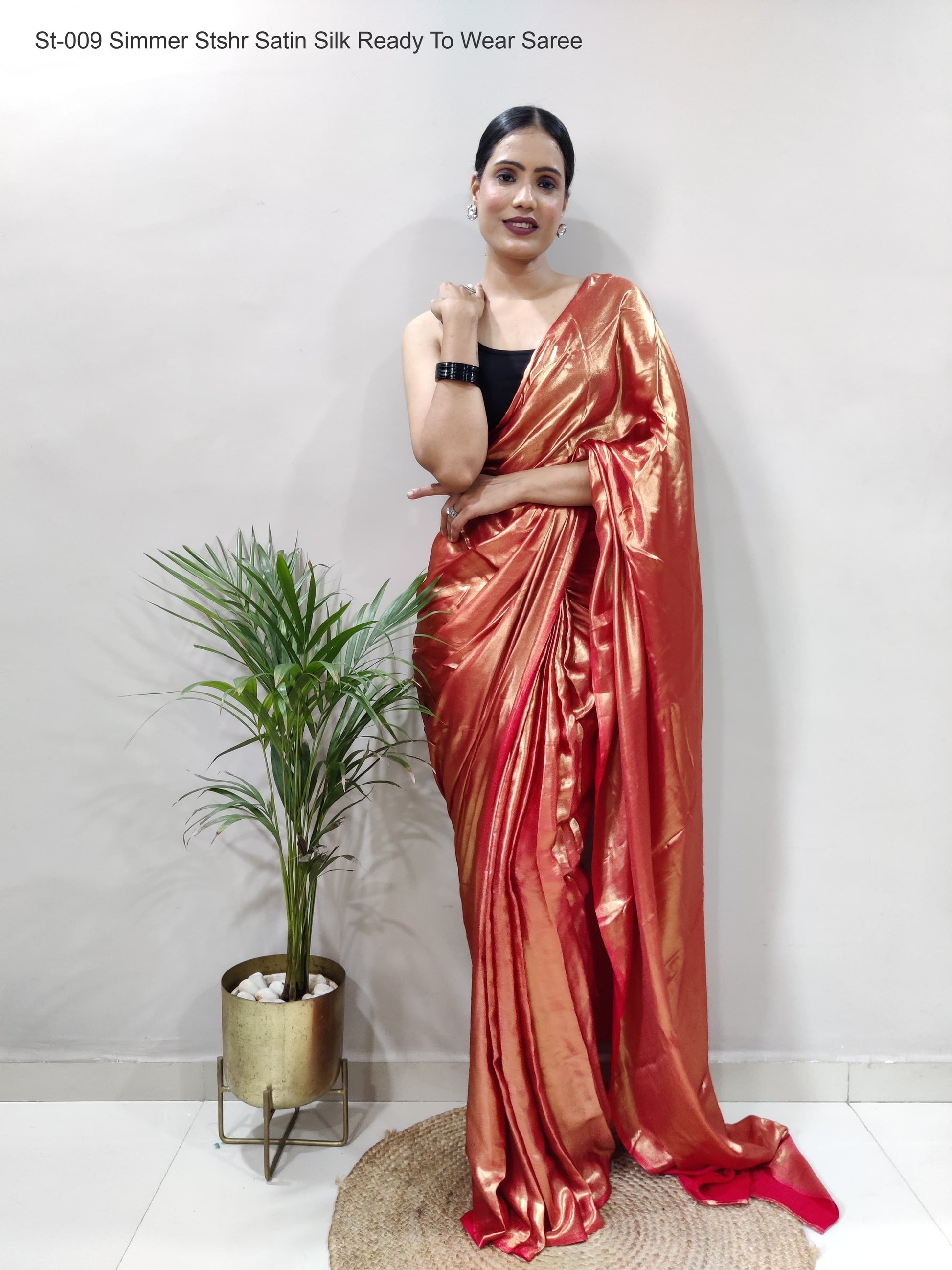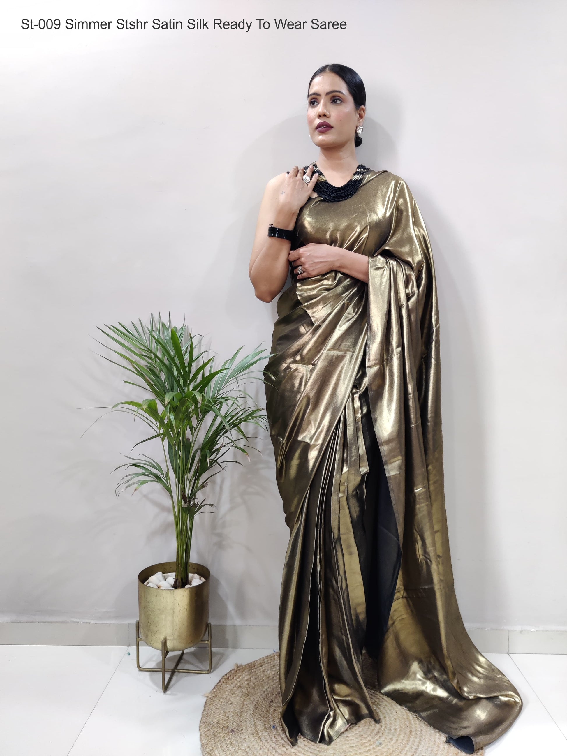 St-009 Simmer Stshr Satin Silk Ready To Wear Saree