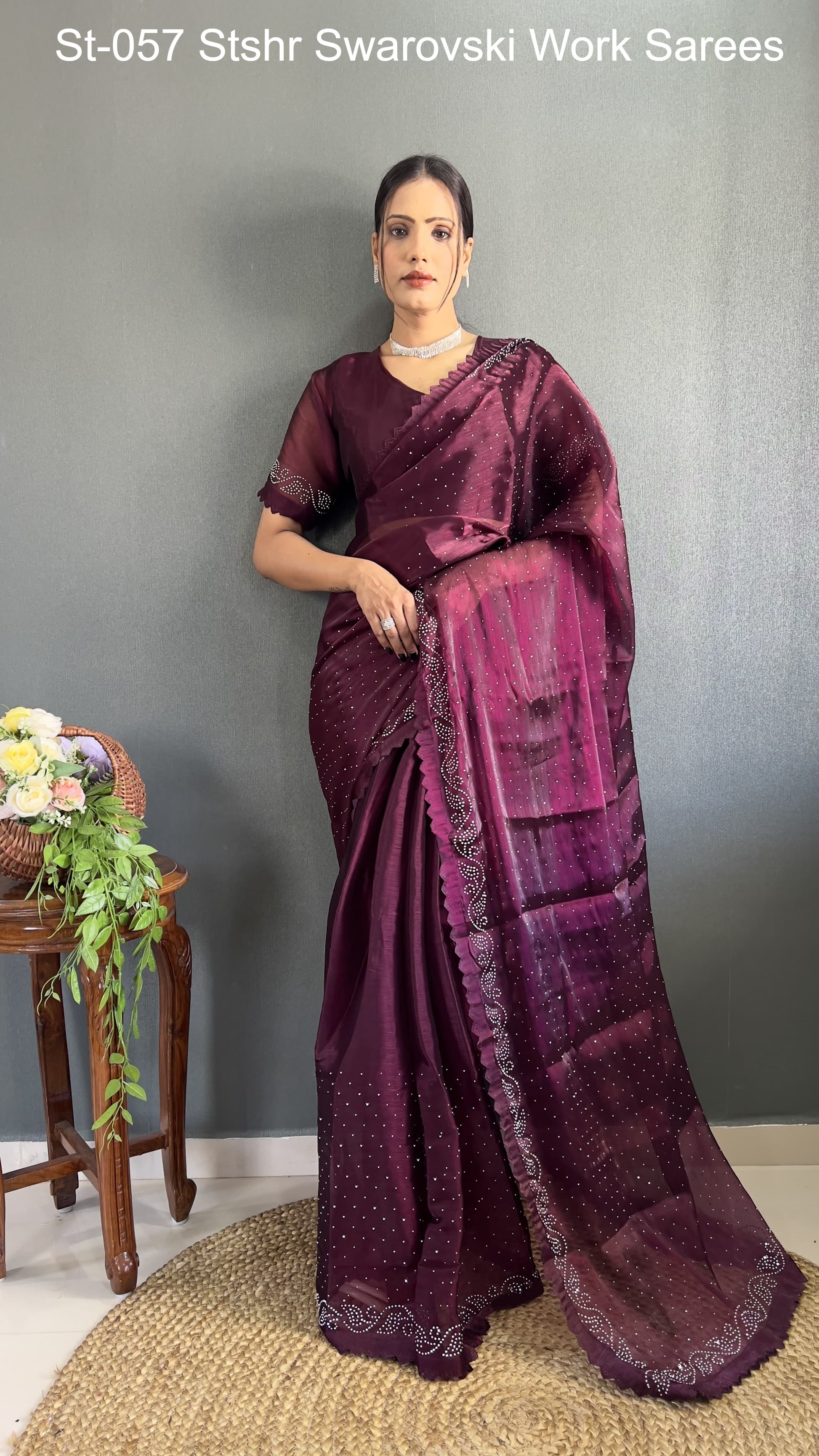 - St-057 Stshr Swarovski Work Sarees Dealer Ahmedabad Surat Wholesale Gujarat India Lowest Price Best Quality Buy Purchase Shipping Kurta Salwaar Kameez Also free Cash on delivery