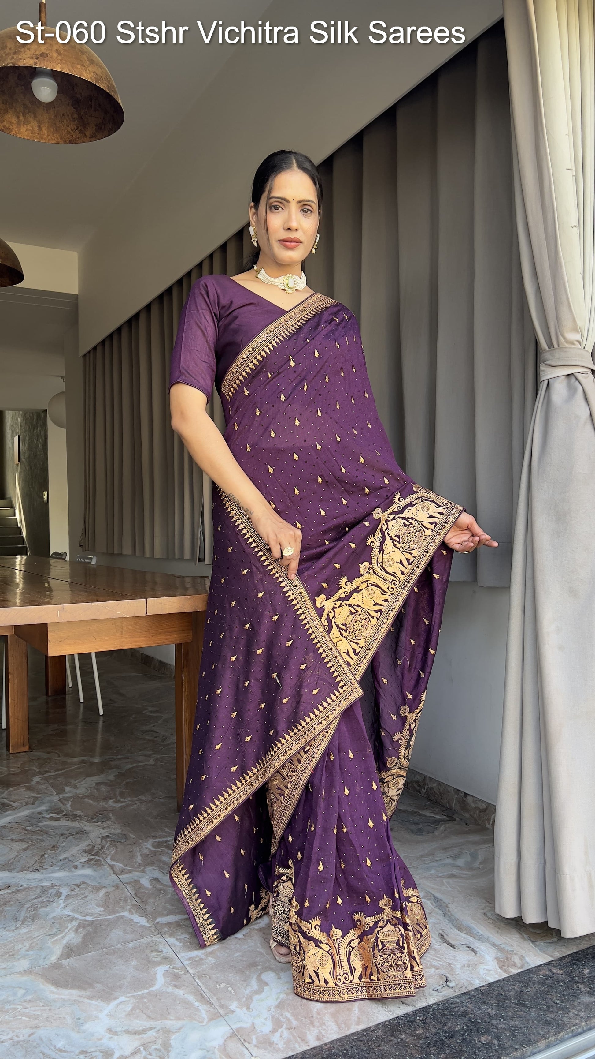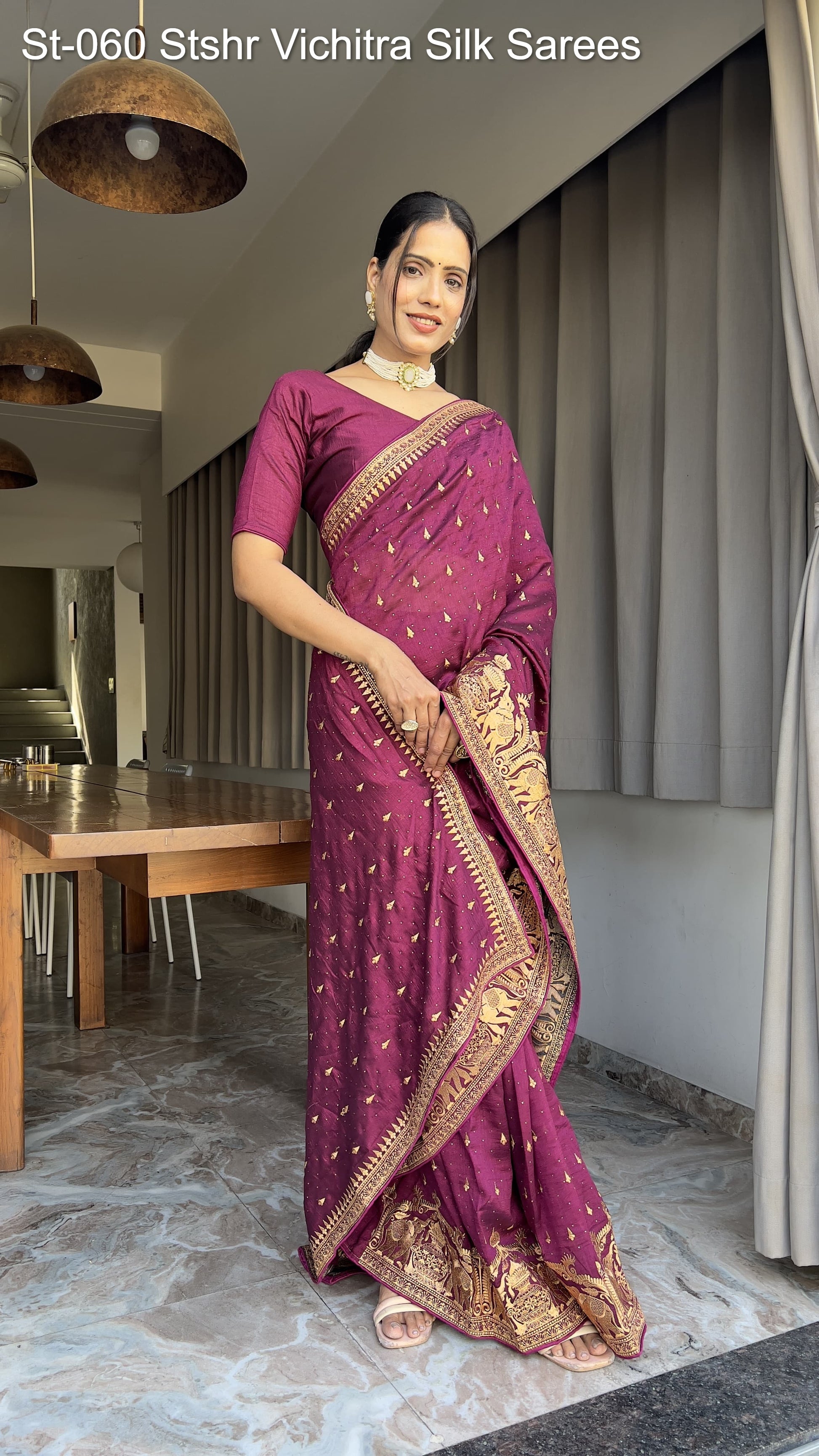 - St-060 Stshr Vichitra Silk Sarees Dealer Ahmedabad Surat Wholesale Gujarat India Lowest Price Best Quality Buy Purchase Shipping Kurta Salwaar Kameez Also free Cash on delivery