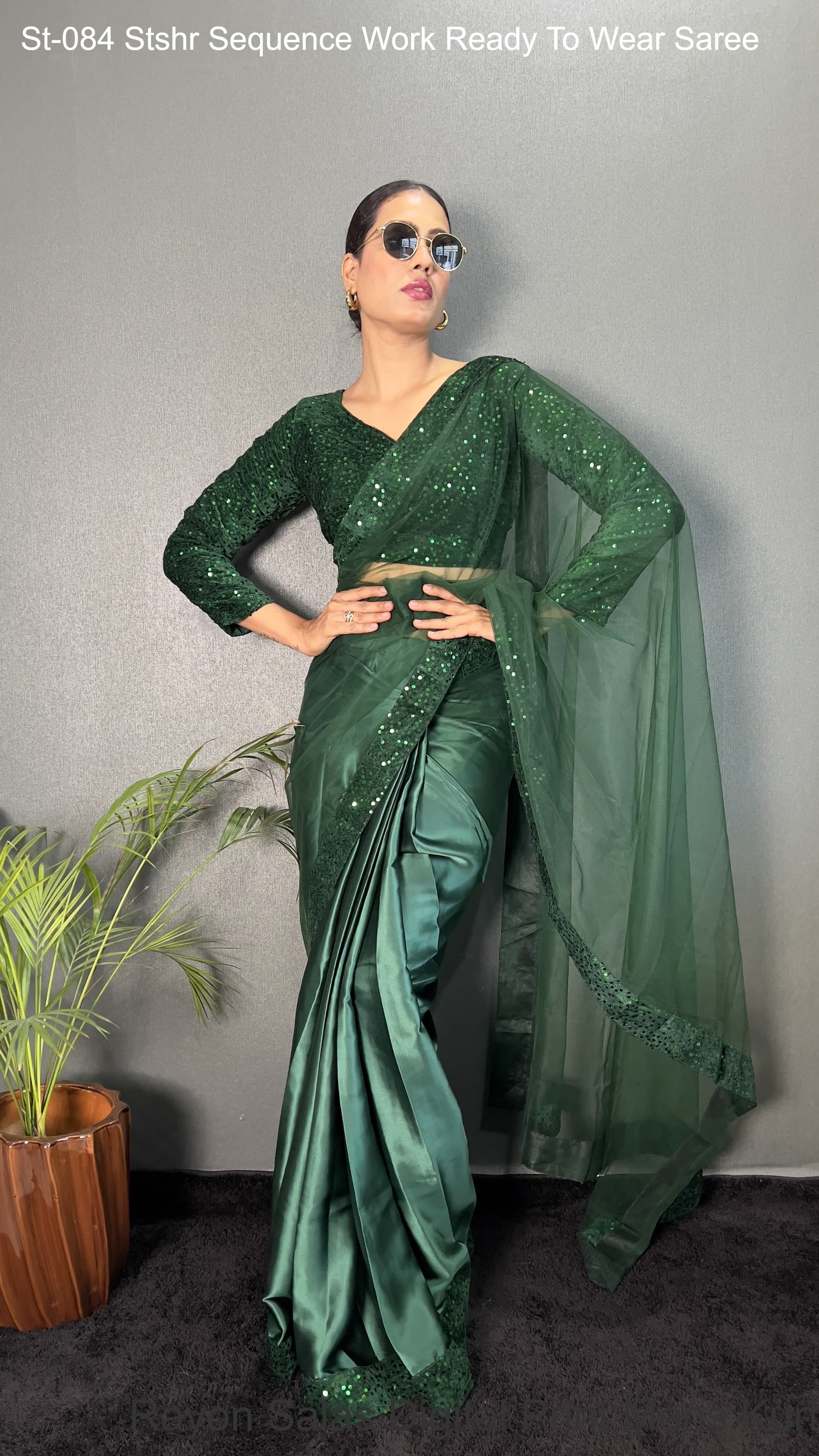 St-084 Stshr Sequence Work Ready To Wear Saree