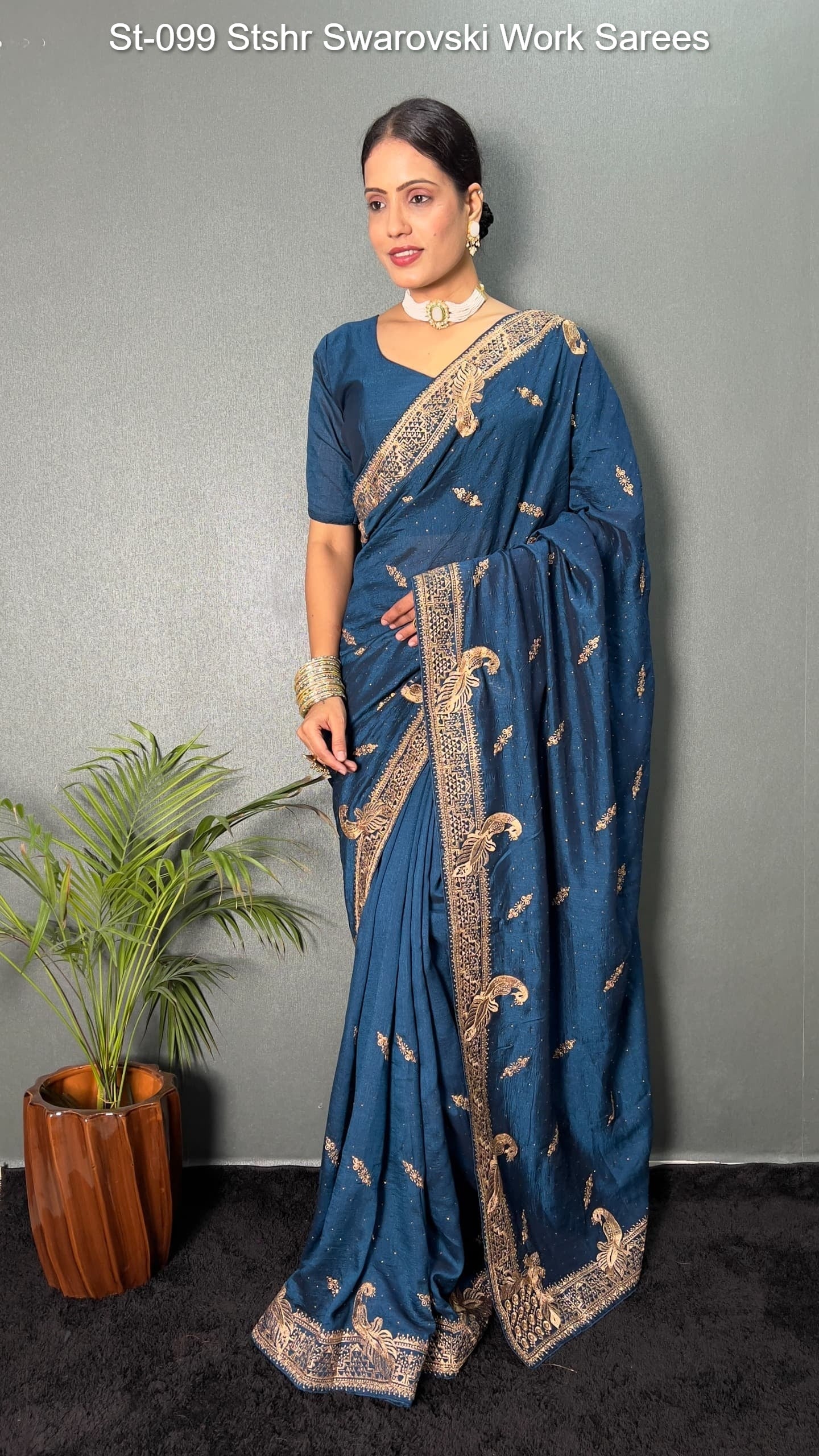 - St-099 Stshr Swarovski Work Sarees Dealer Ahmedabad Surat Wholesale Gujarat India Lowest Price Best Quality Buy Purchase Shipping Kurta Salwaar Kameez Also free Cash on delivery