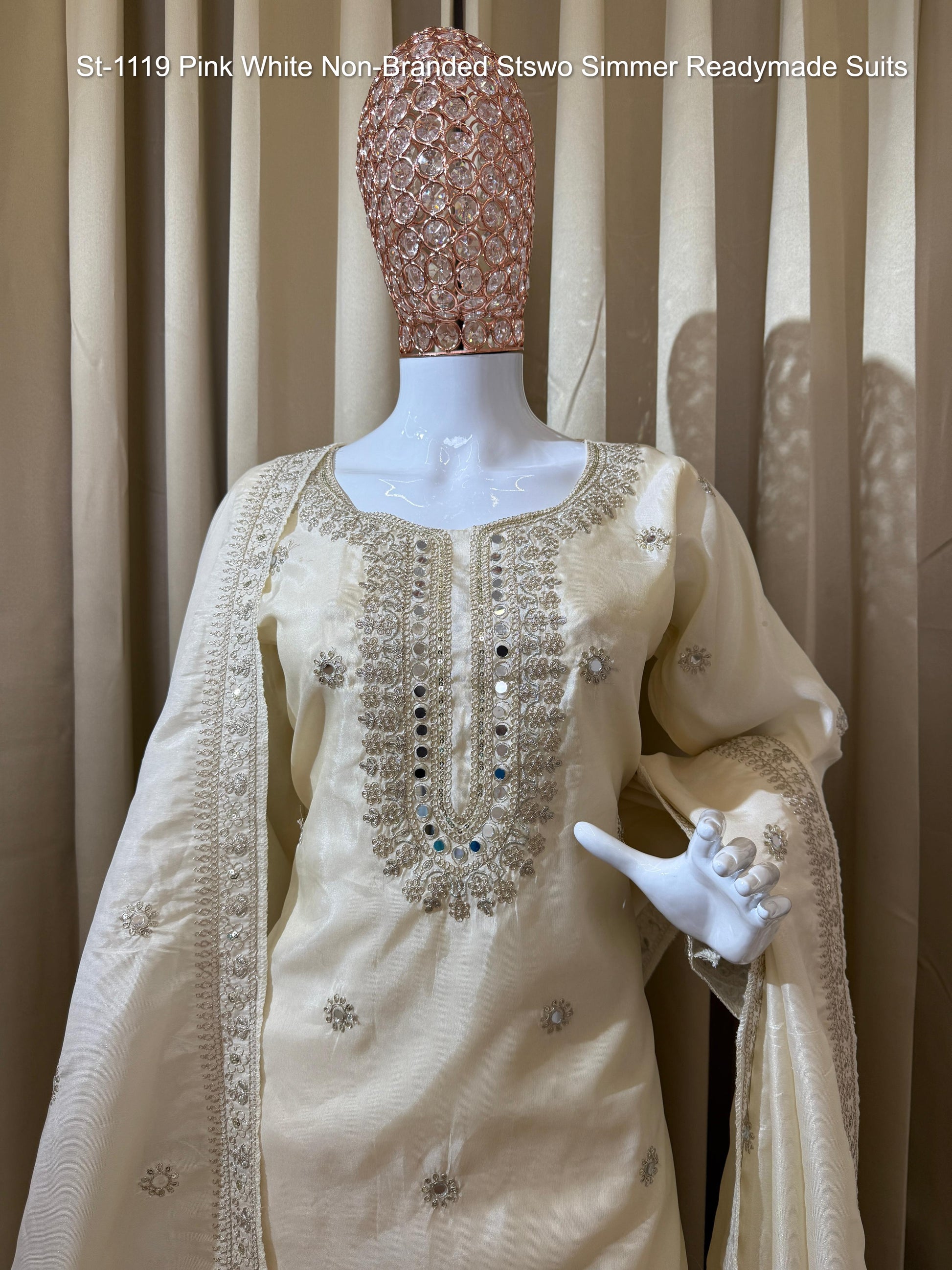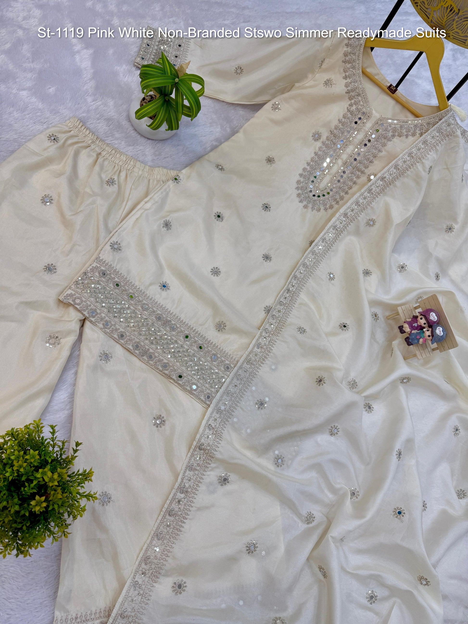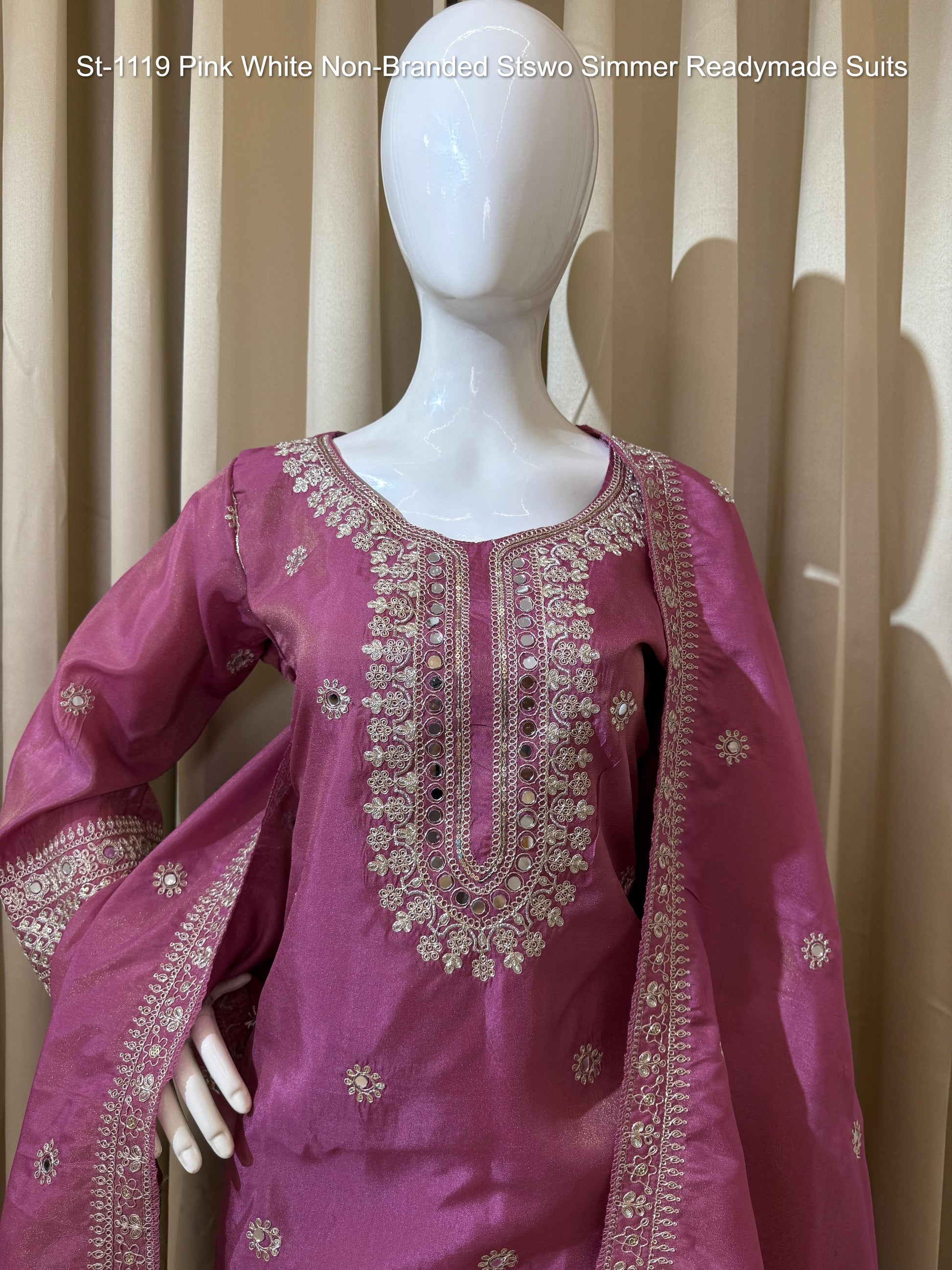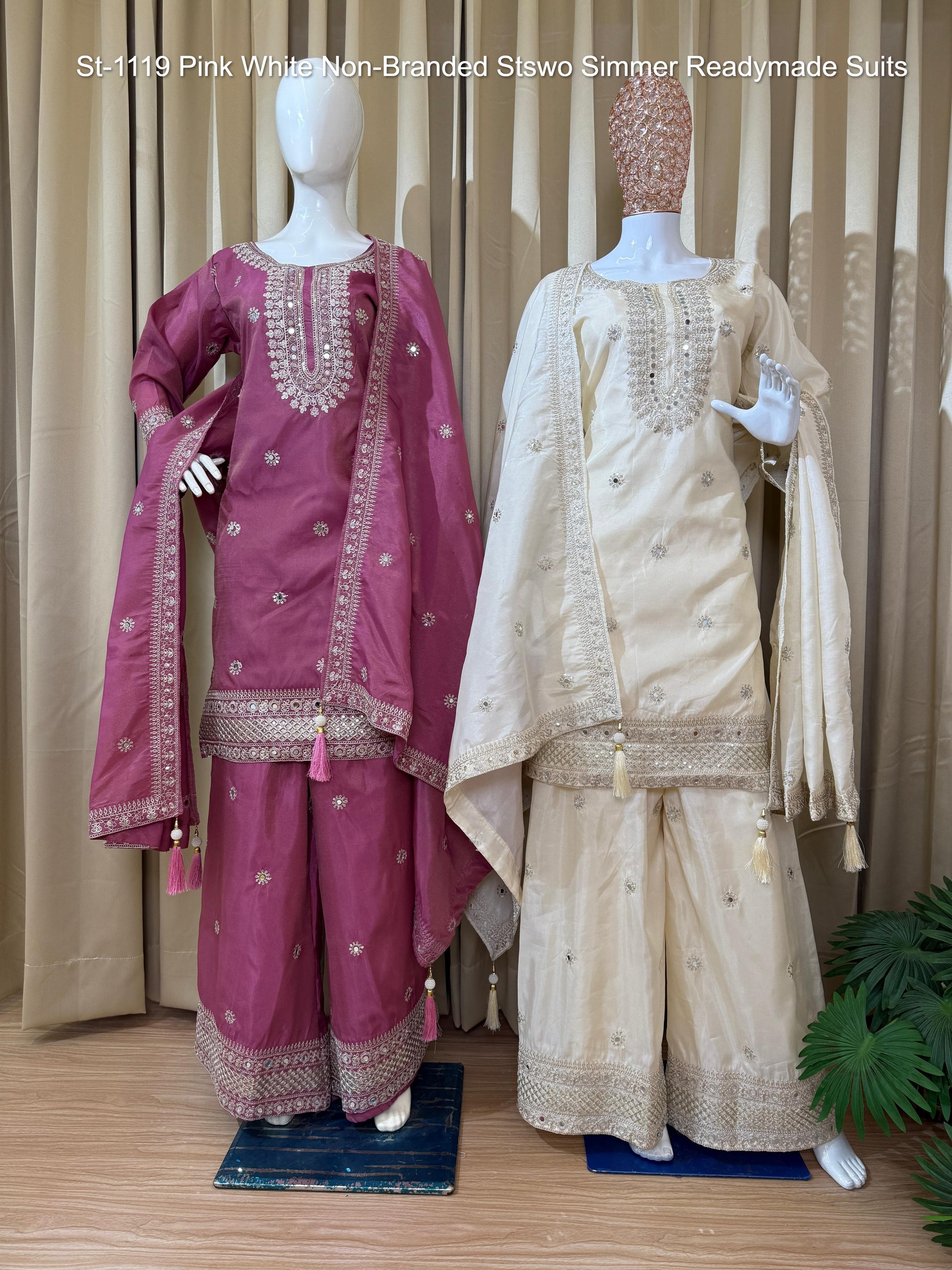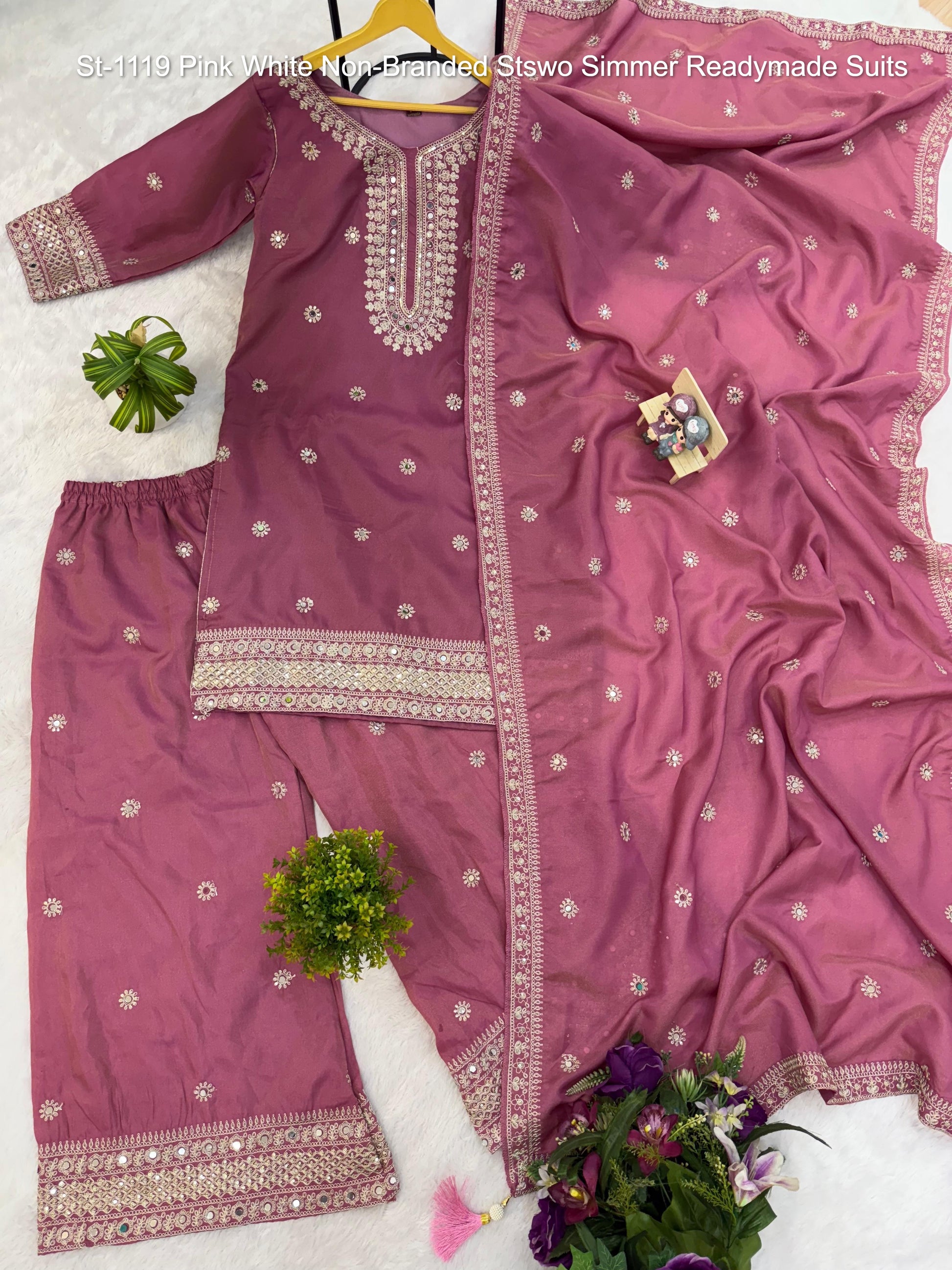 St-1119 Pink White Non-Branded Stswo Simmer Readymade Suits