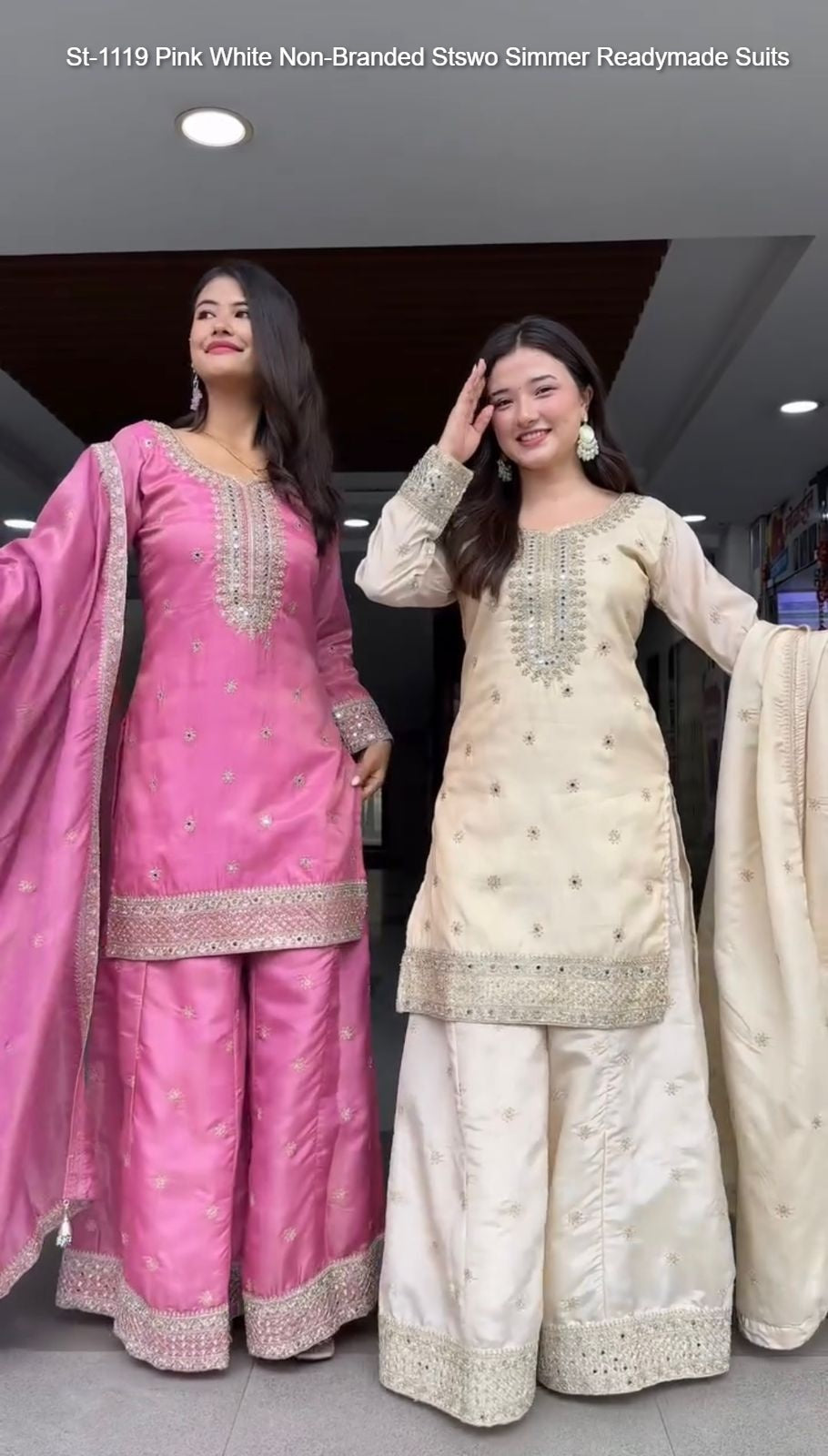 - St-1119 Pink White Non-Branded Stswo Simmer Readymade Suits Dealer Ahmedabad Surat Wholesale Gujarat India Lowest Price Best Quality Buy Purchase Shipping Kurta Salwaar Kameez Also free Cash on delivery