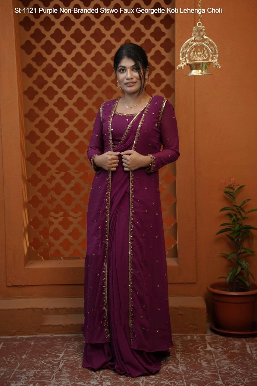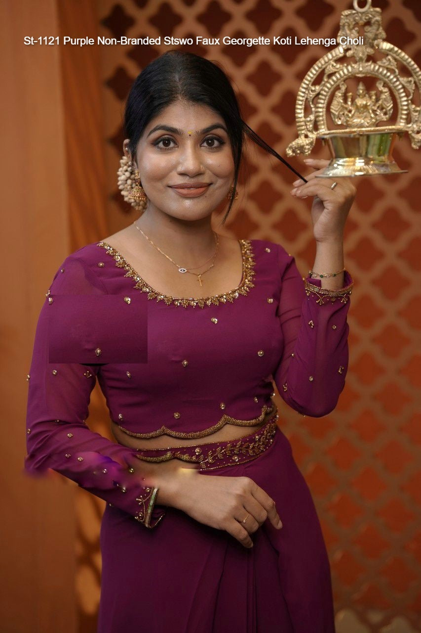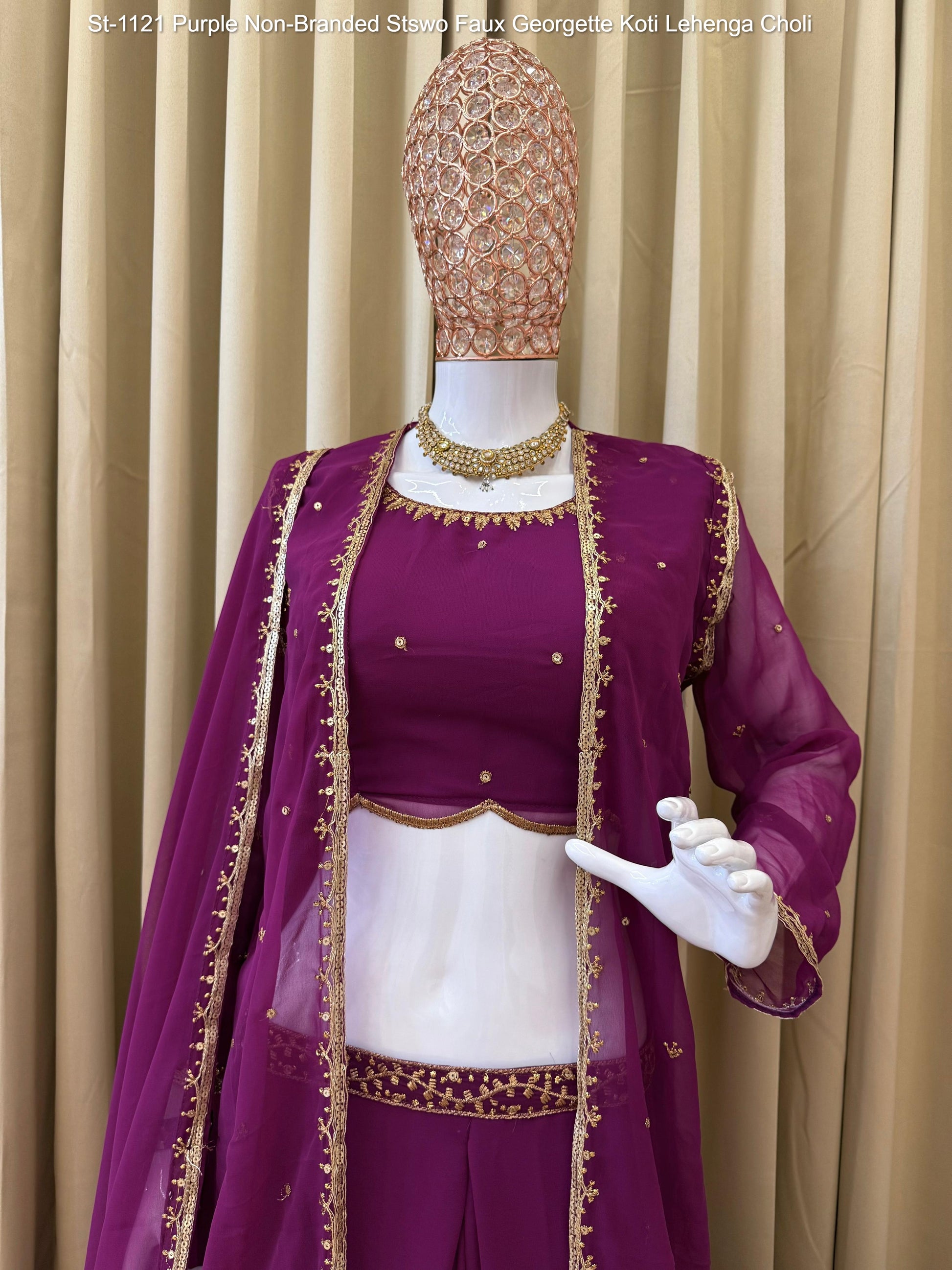 St-1121 Purple Non-Branded Stswo Faux Georgette Koti Lehenga Choli