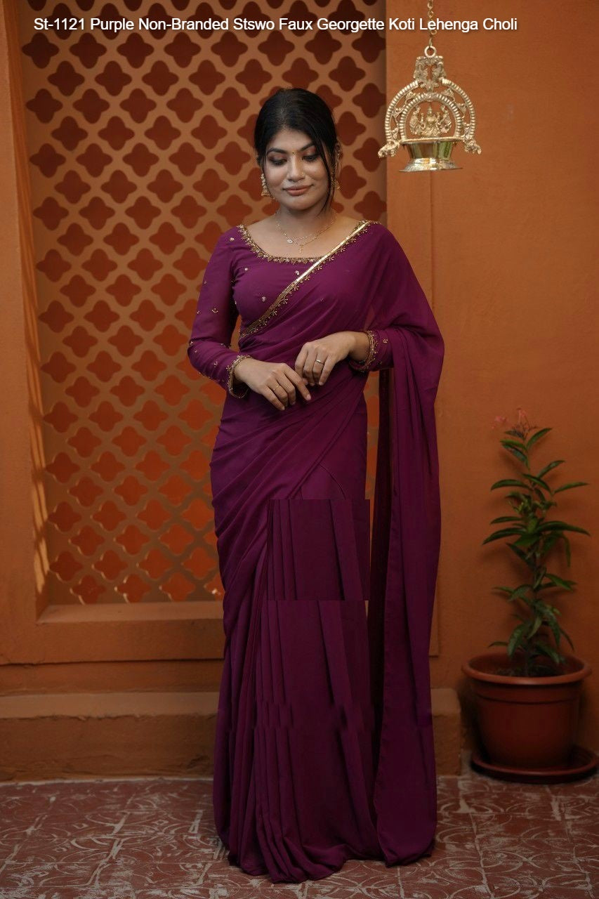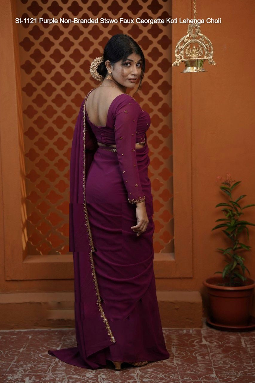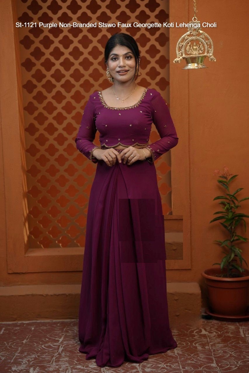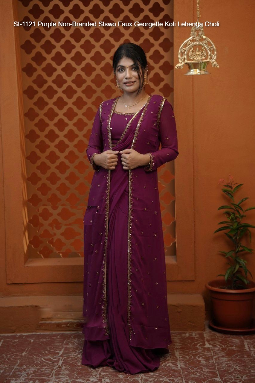 St-1121 Purple Non-Branded Stswo Faux Georgette Koti Lehenga Choli