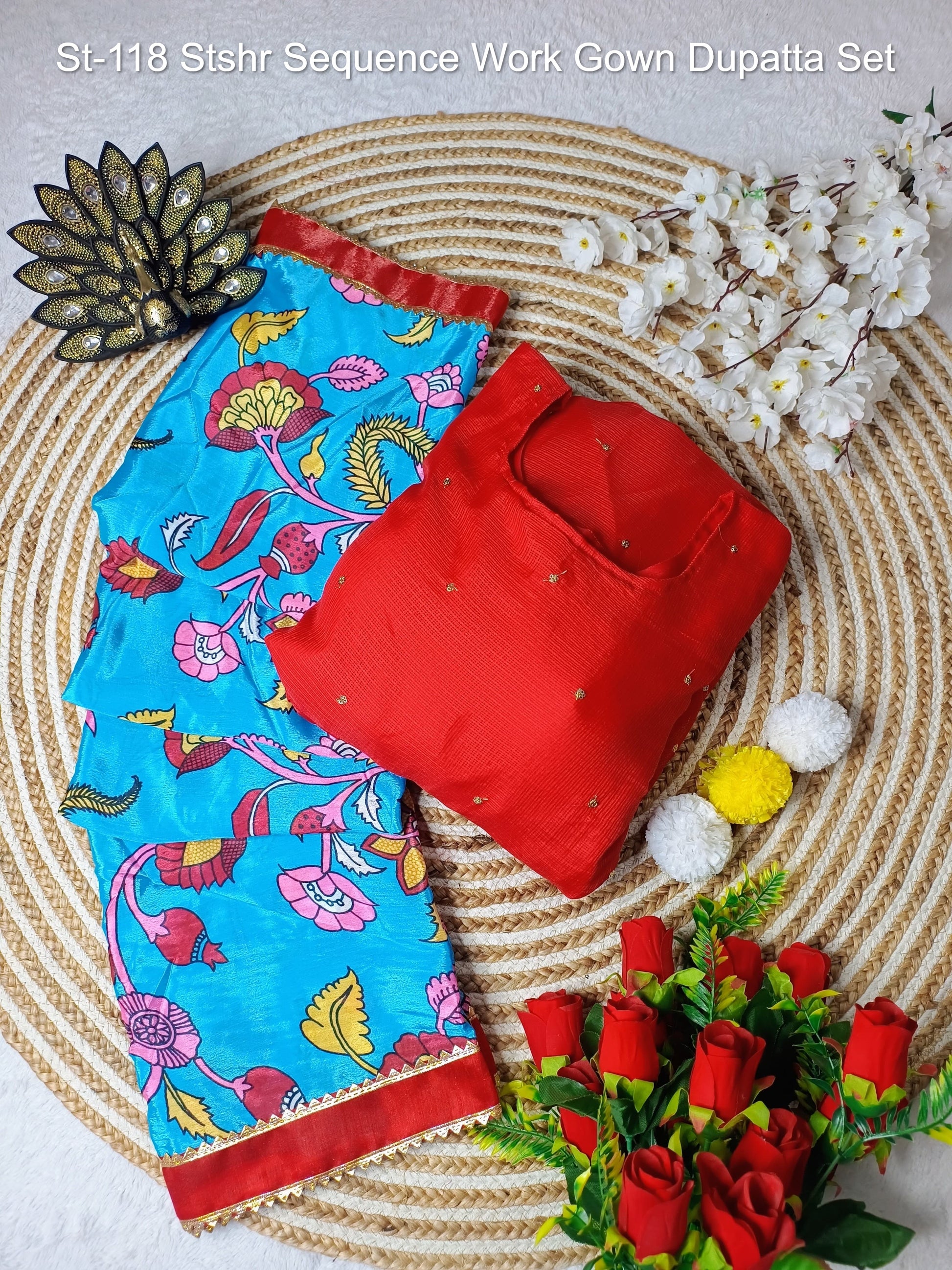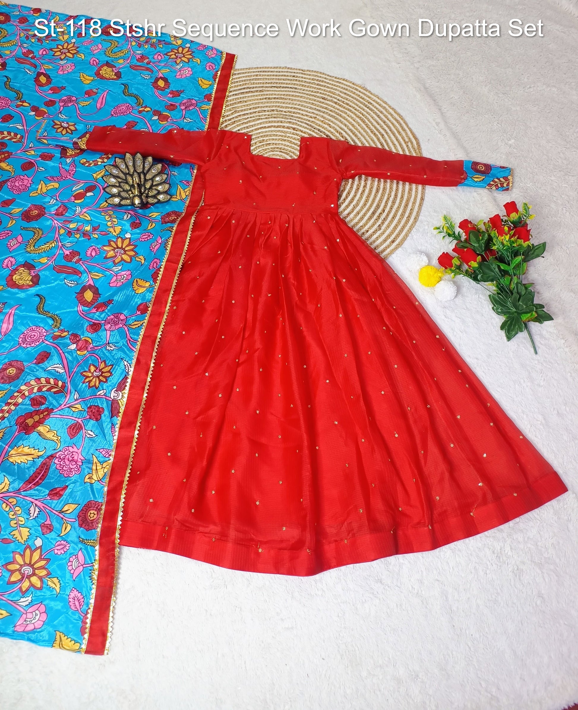 St-118 Stshr Sequence Work Gown Dupatta Set