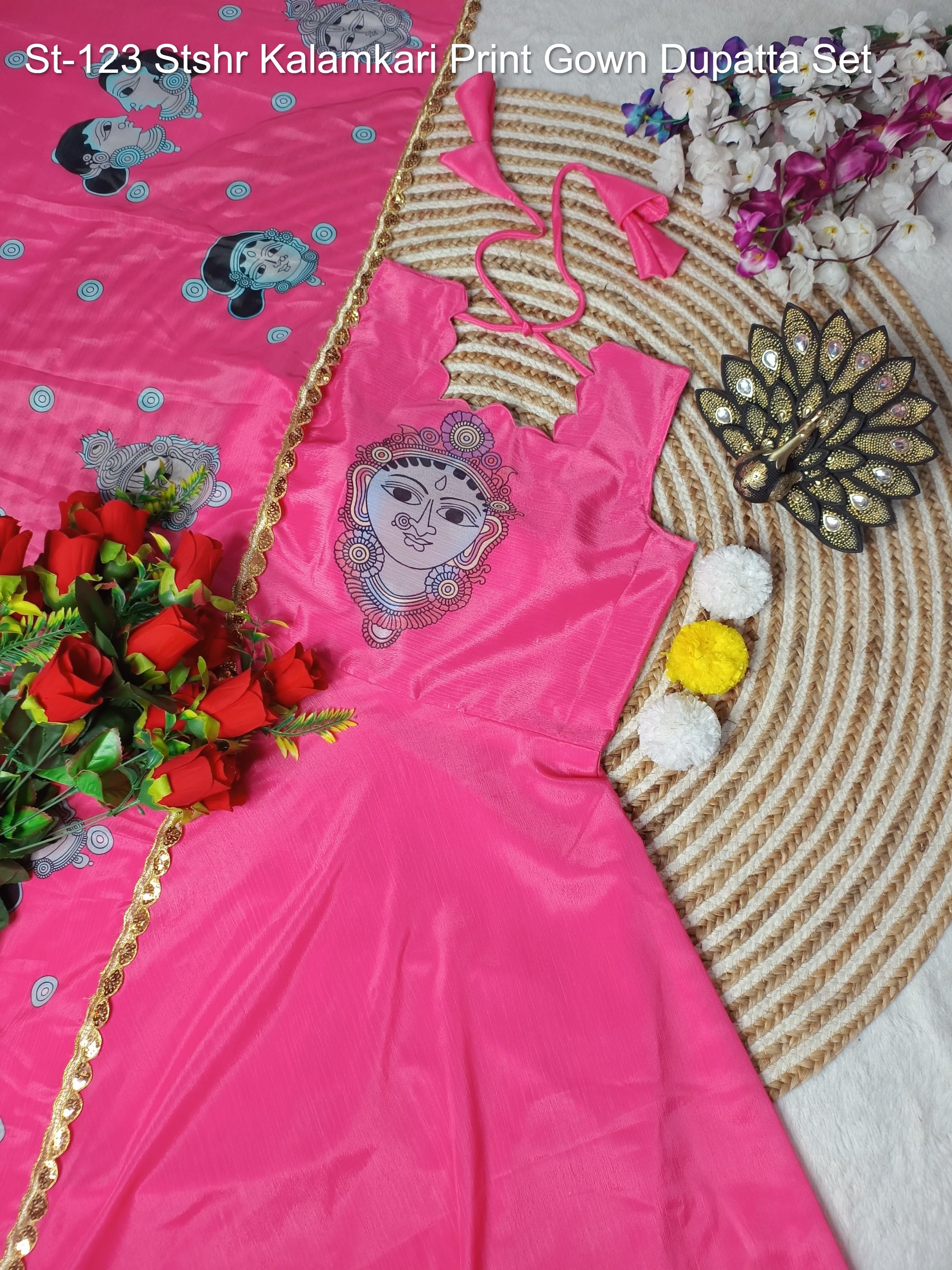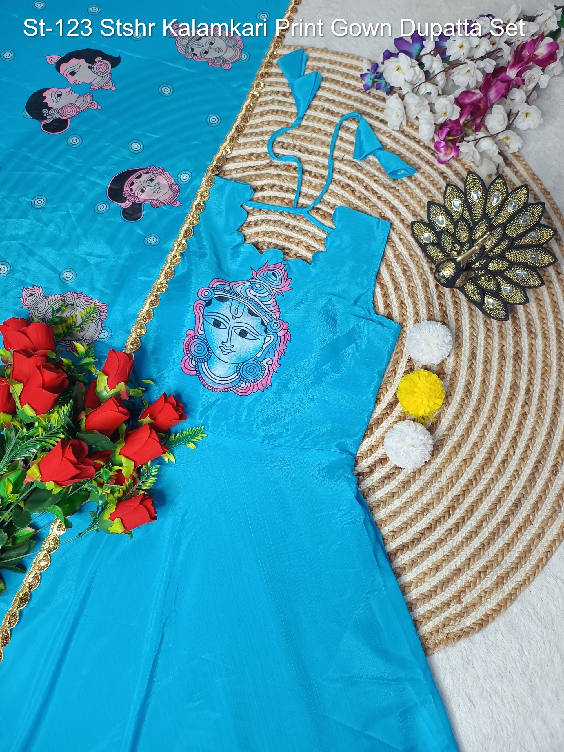 St-123 Stshr Kalamkari Print Gown Dupatta Set