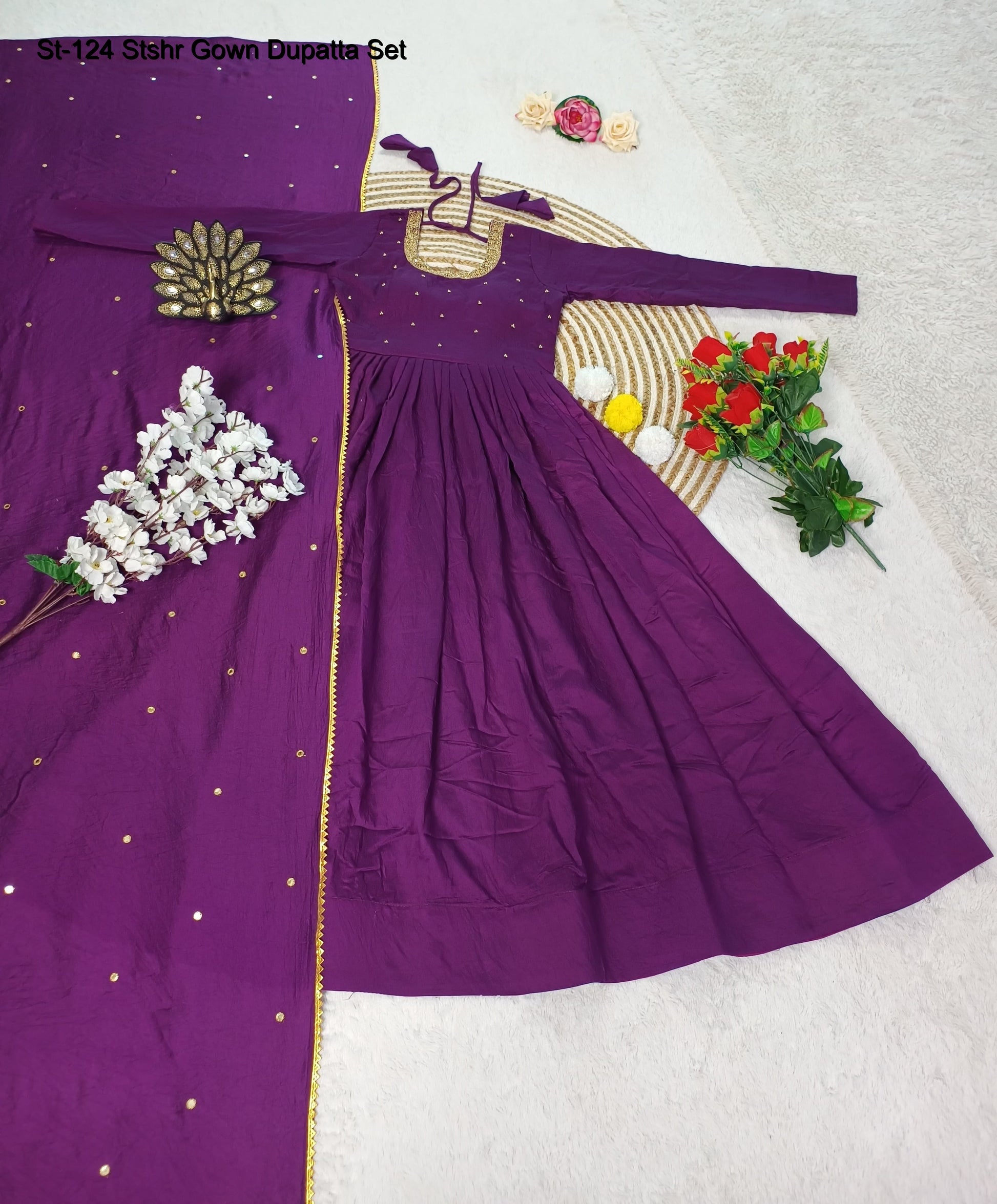 - St-124 Stshr Embroidery Gown Dupatta Set Dealer Ahmedabad Surat Wholesale Gujarat India Lowest Price Best Quality Buy Purchase Shipping Kurta Salwaar Kameez Also free Cash on delivery