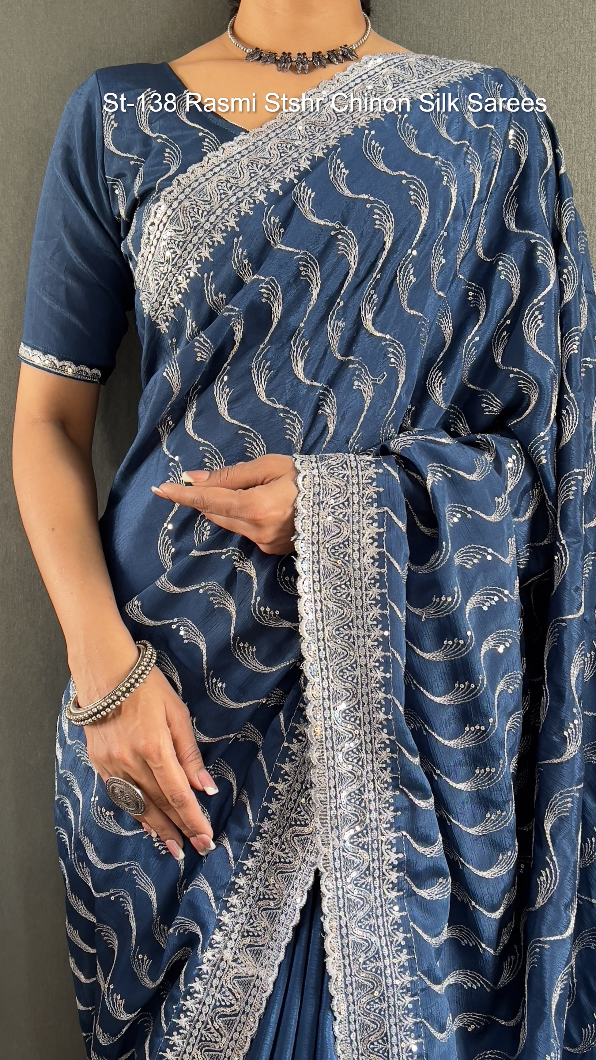 St-138 Rasmi Stshr Chinon Silk Sarees