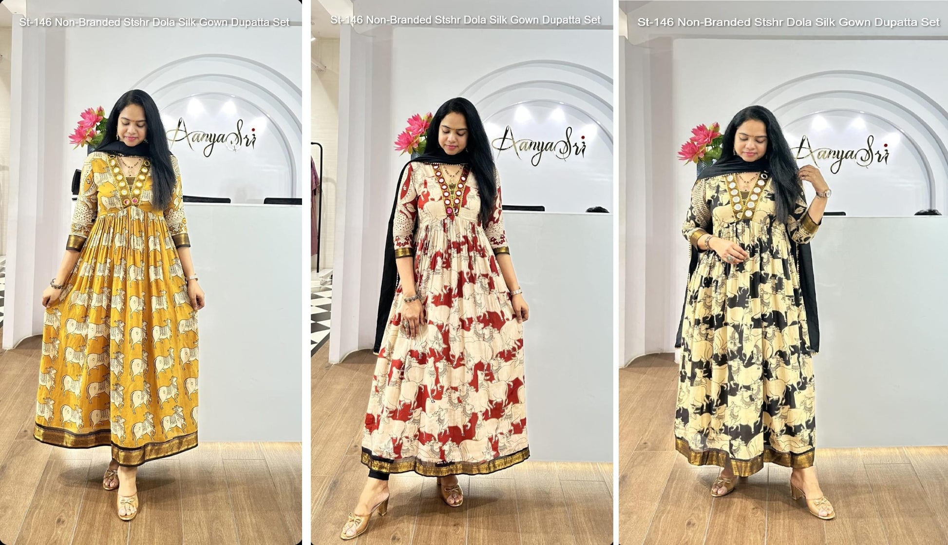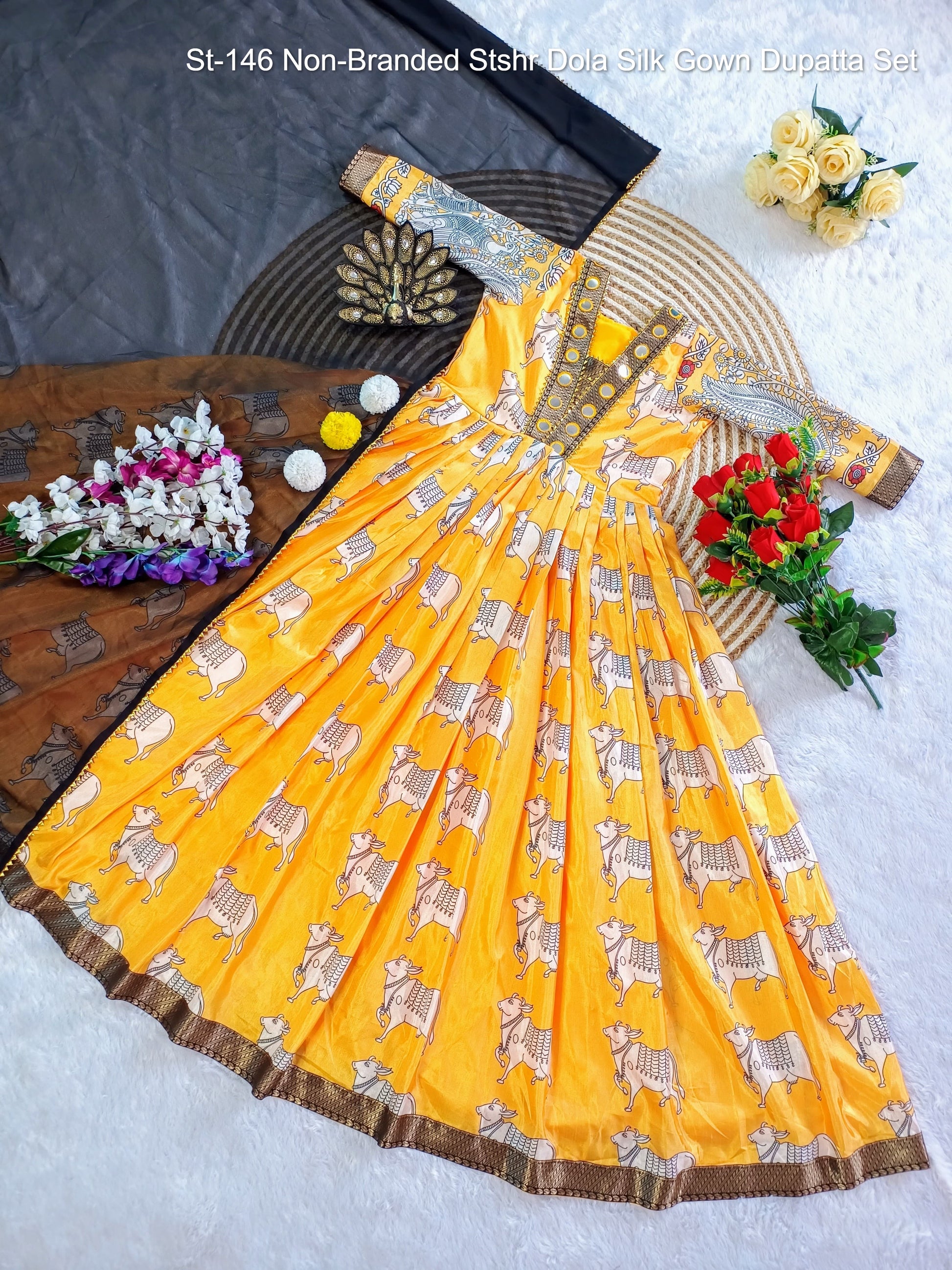 - St-146 Non-Branded Stshr Dola Silk Gown Dupatta Set Dealer Ahmedabad Surat Wholesale Gujarat India Lowest Price Best Quality Buy Purchase Shipping Kurta Salwaar Kameez Also free Cash on delivery