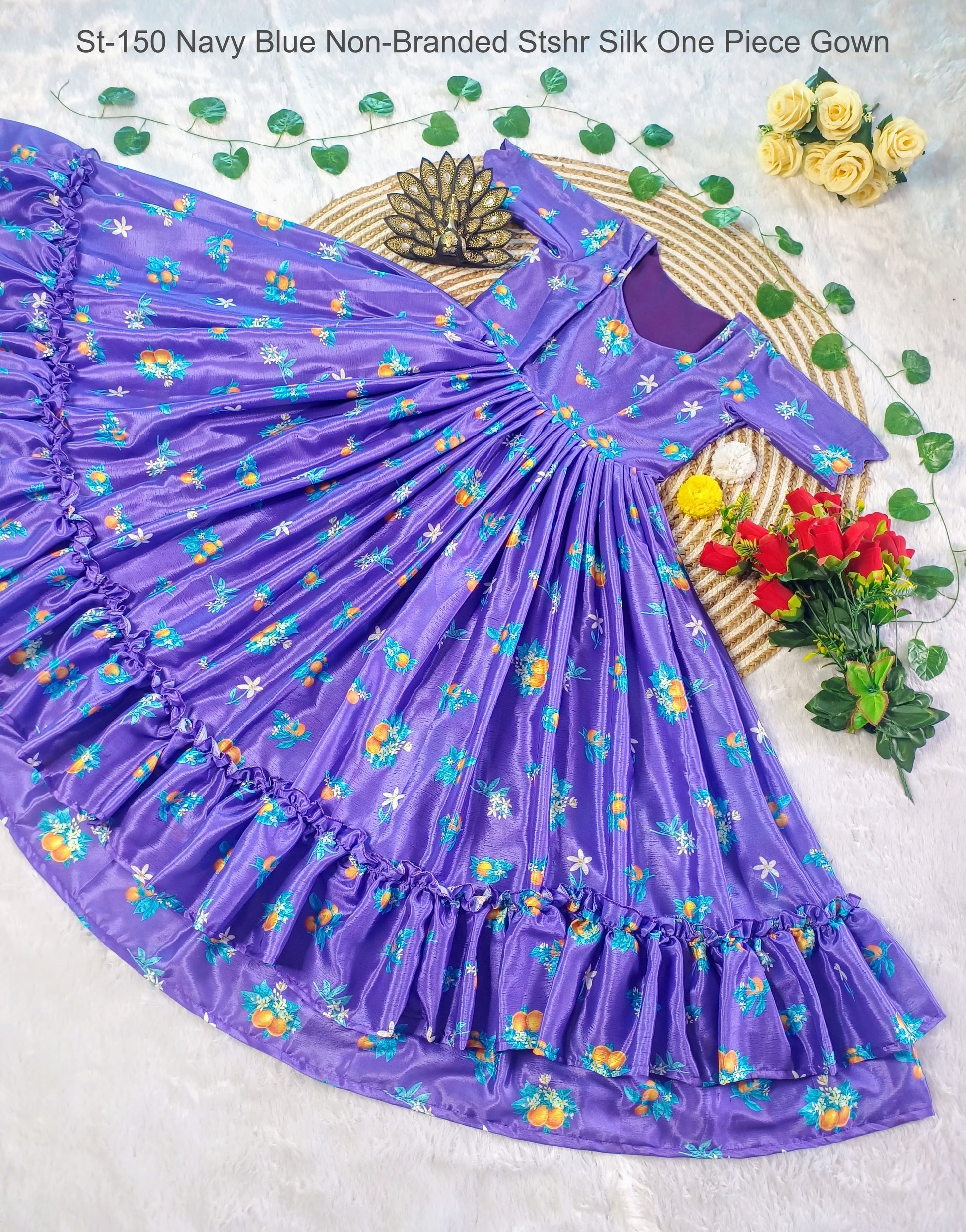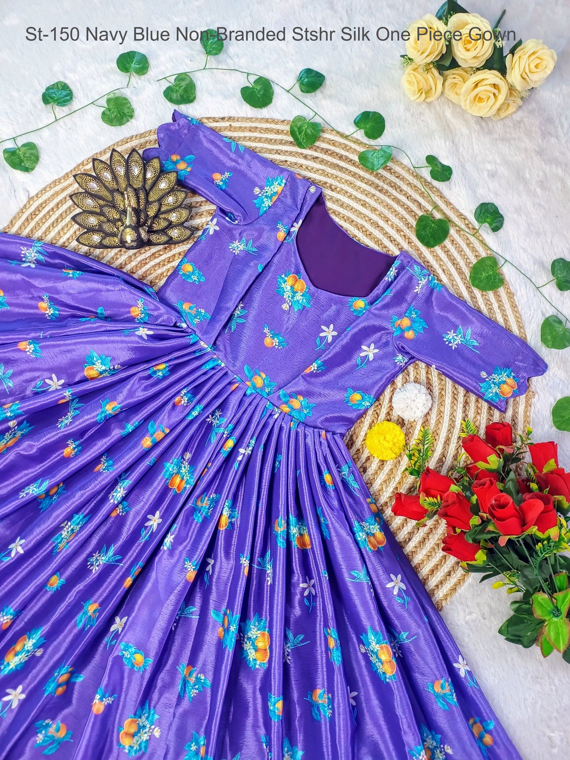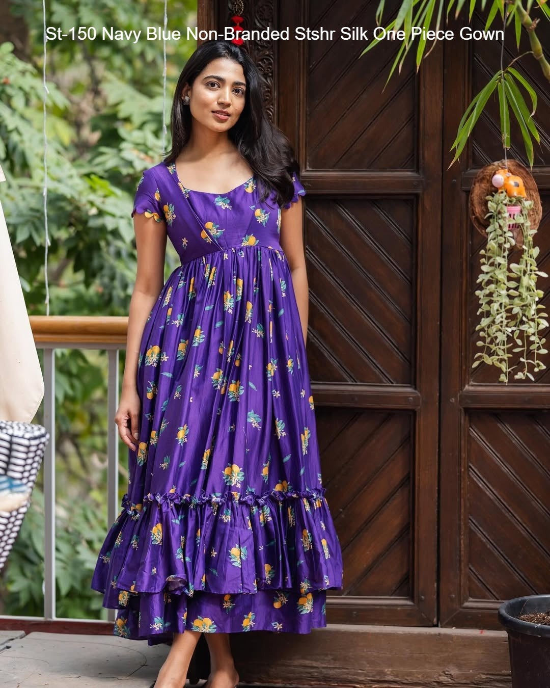 - St-150 Navy Blue Non-Branded Stshr Silk One Piece Gown Dealer Ahmedabad Surat Wholesale Gujarat India Lowest Price Best Quality Buy Purchase Shipping Kurta Salwaar Kameez Also free Cash on delivery