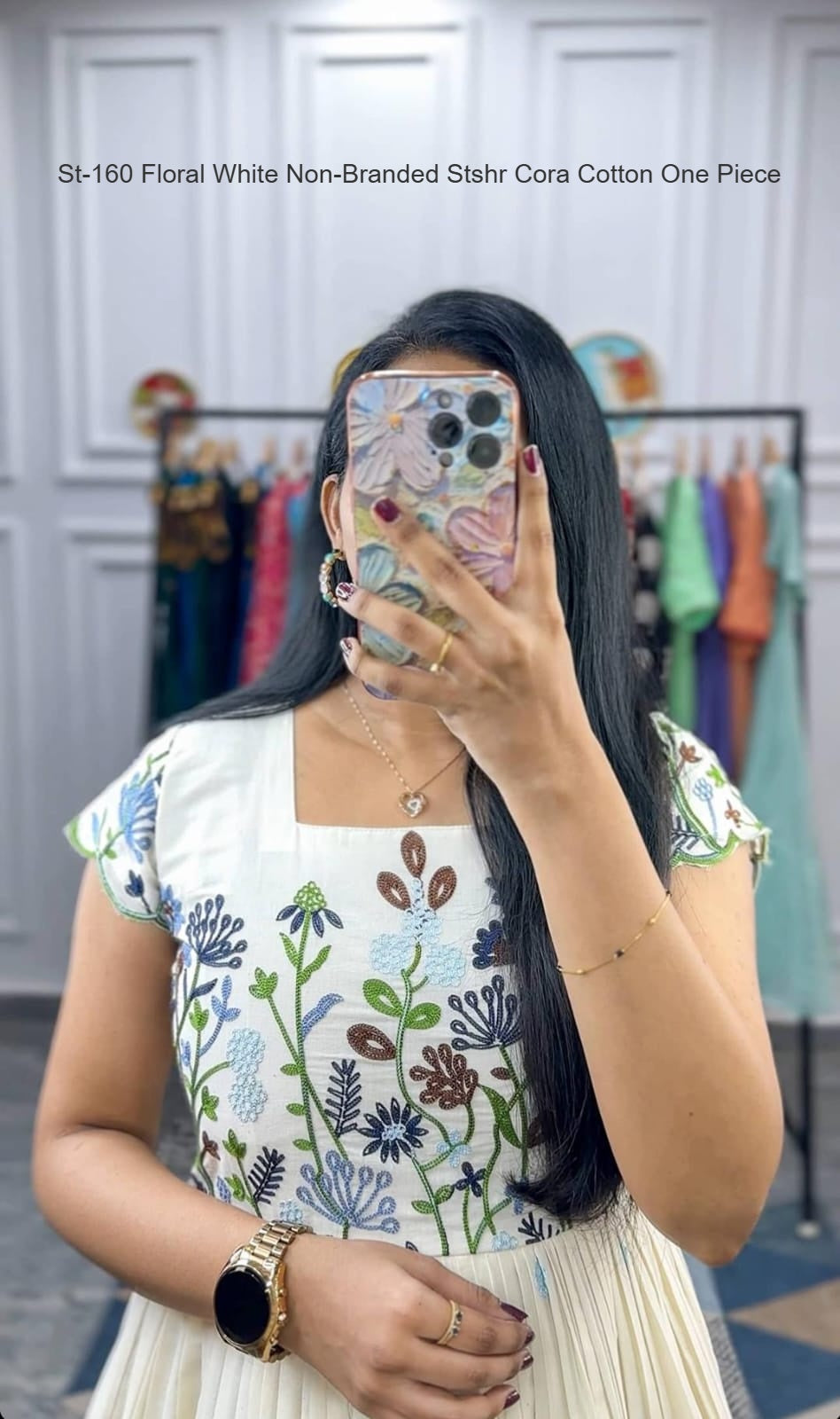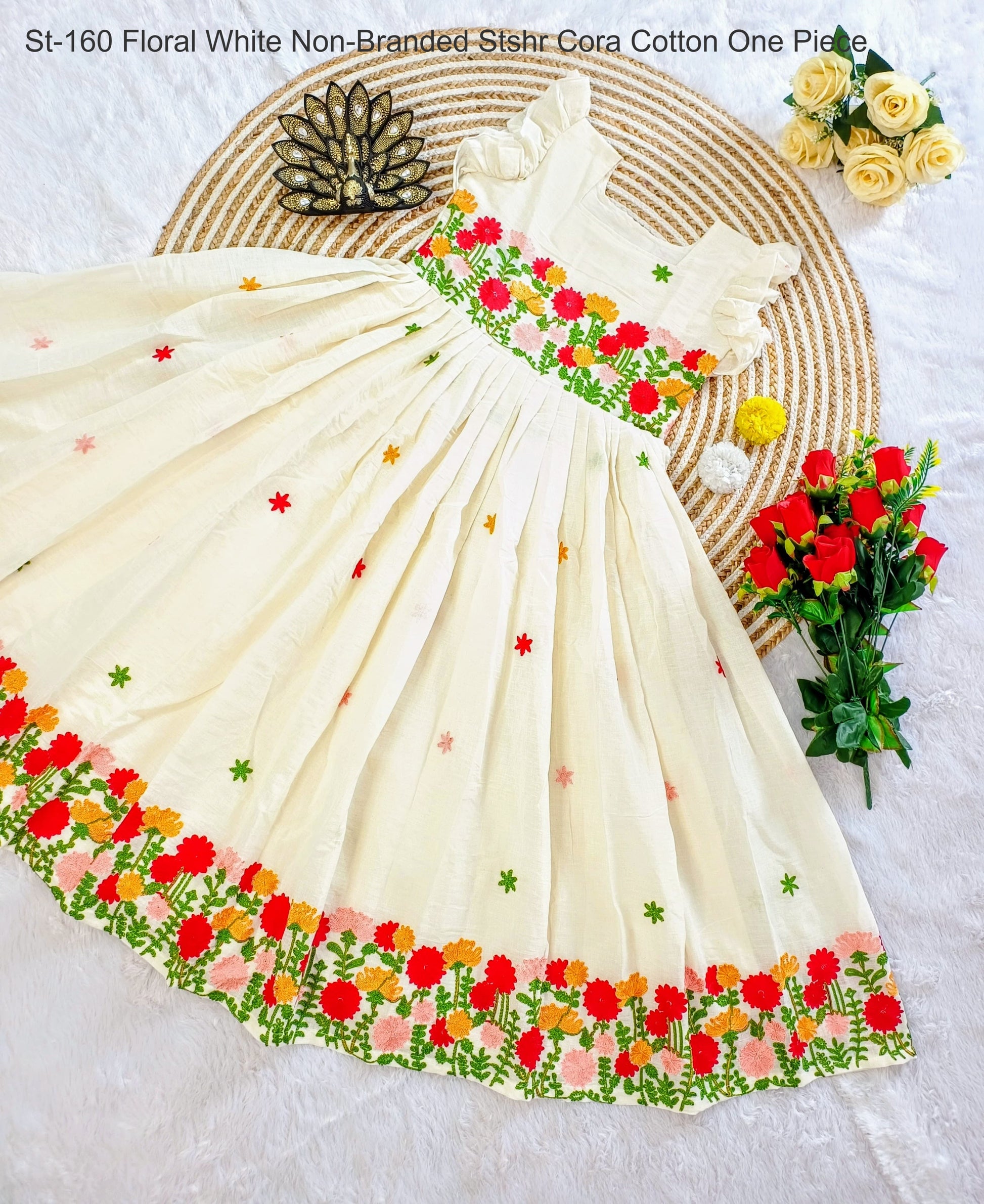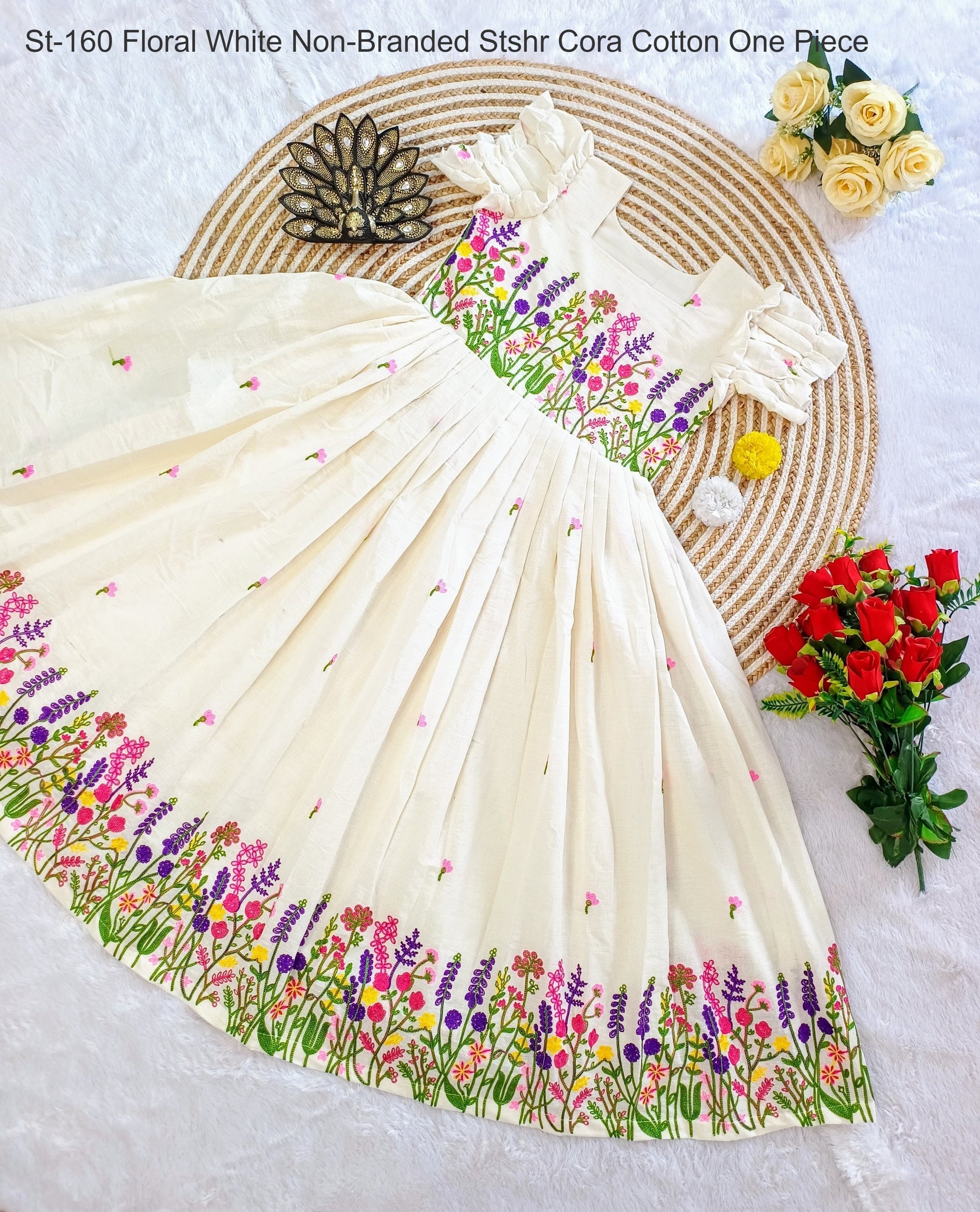 - St-160 Floral White Non-Branded Stshr Cora Cotton One Piece Dealer Ahmedabad Surat Wholesale Gujarat India Lowest Price Best Quality Buy Purchase Shipping Kurta Salwaar Kameez Also free Cash on delivery