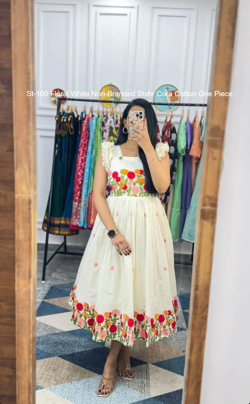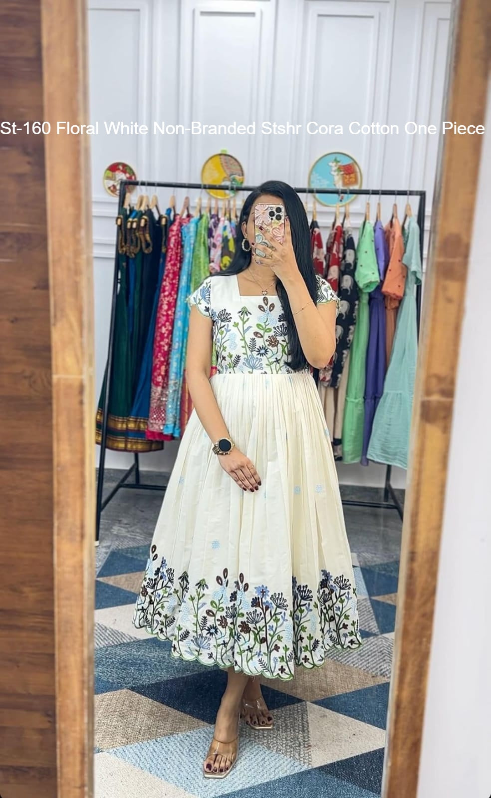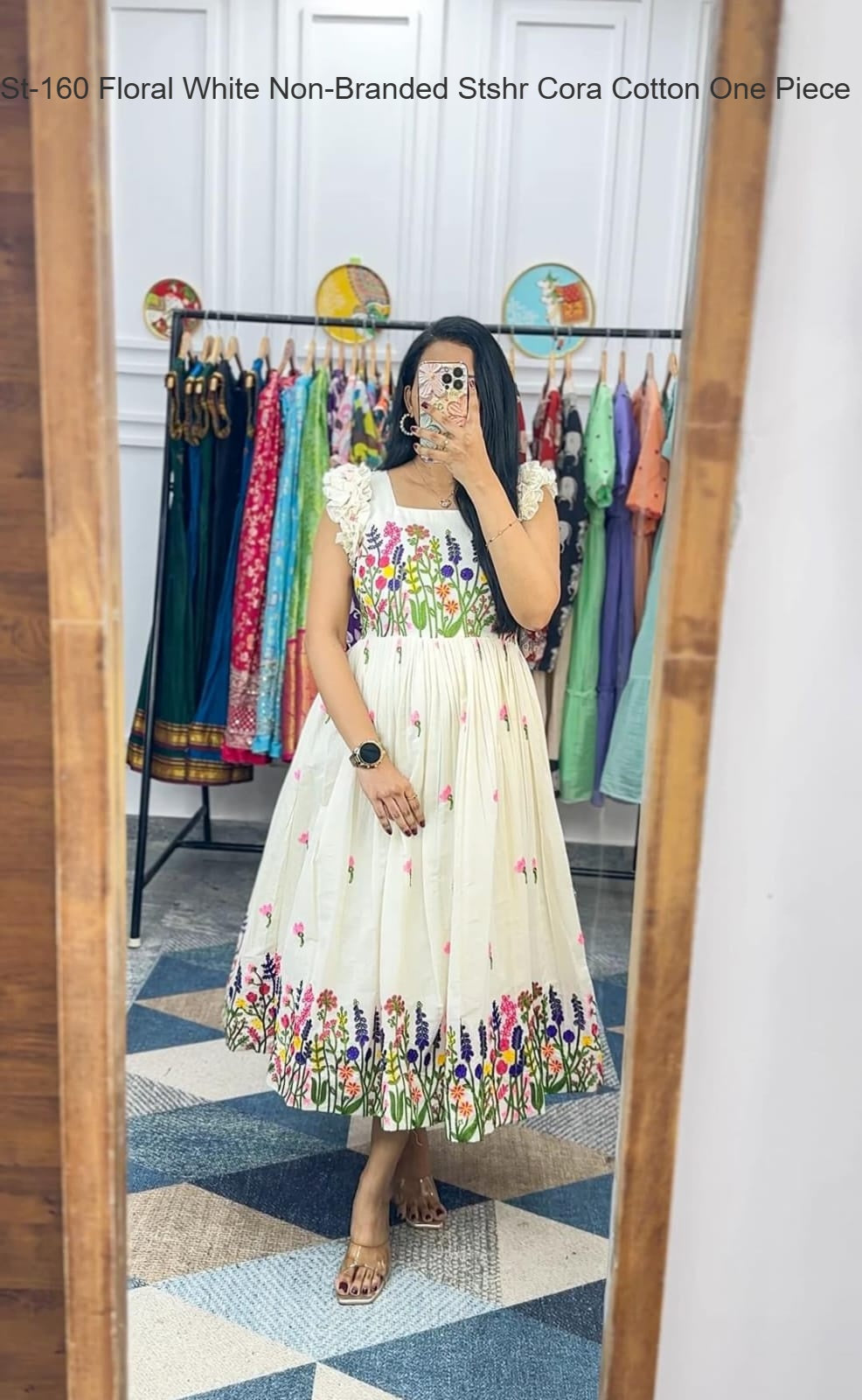 - St-160 Floral White Non-Branded Stshr Cora Cotton One Piece Dealer Ahmedabad Surat Wholesale Gujarat India Lowest Price Best Quality Buy Purchase Shipping Kurta Salwaar Kameez Also free Cash on delivery
