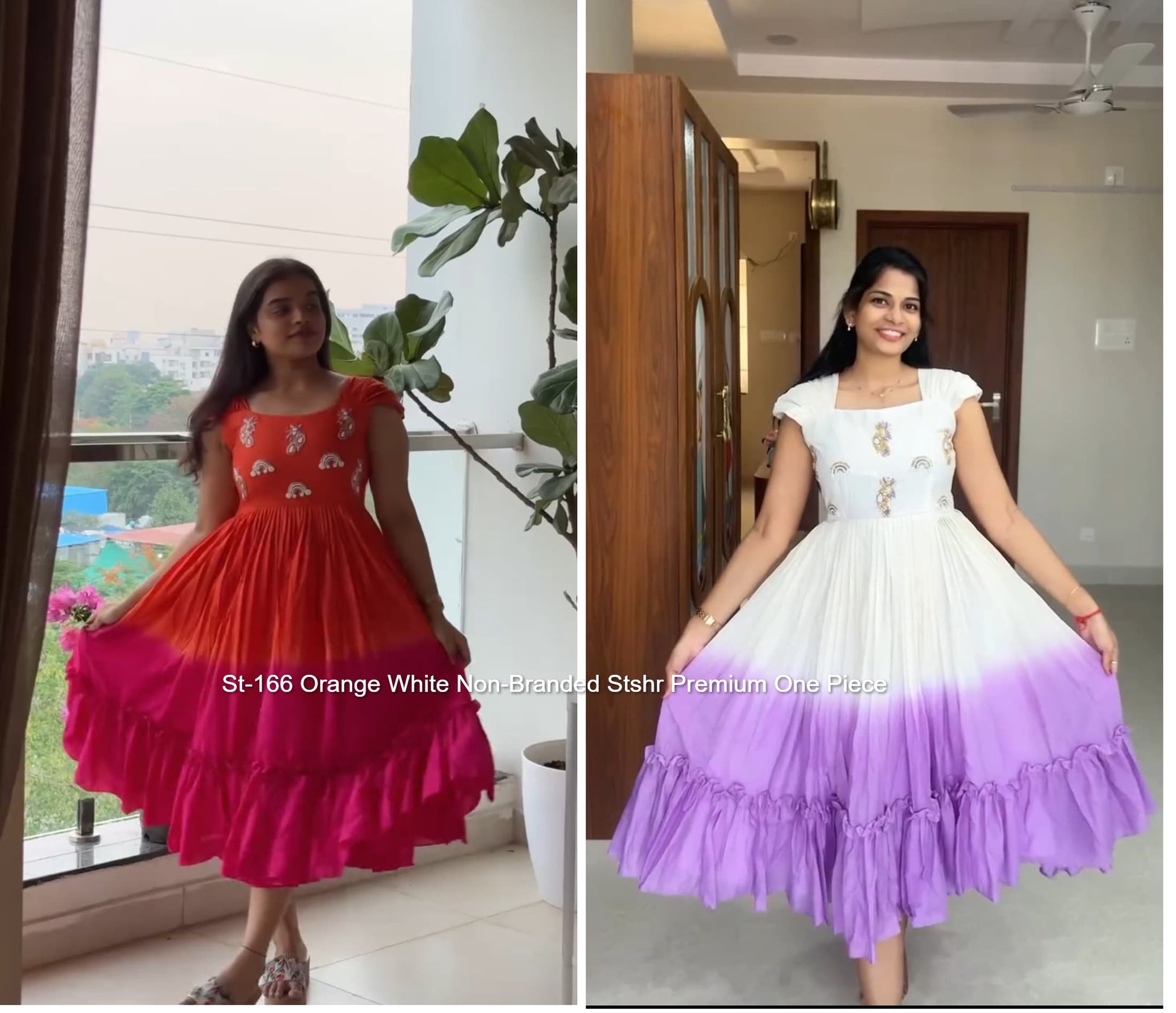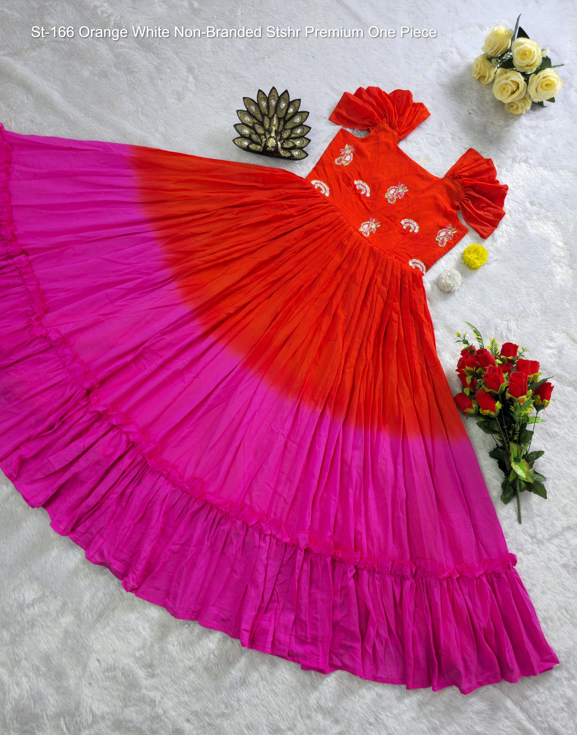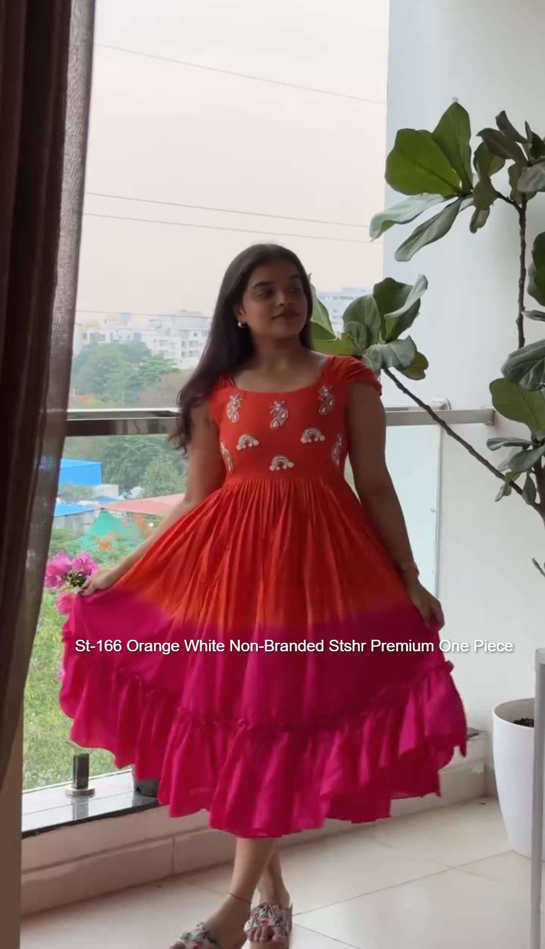 - St-166 Orange White Non-Branded Stshr Premium One Piece Dealer Ahmedabad Surat Wholesale Gujarat India Lowest Price Best Quality Buy Purchase Shipping Kurta Salwaar Kameez Also free Cash on delivery