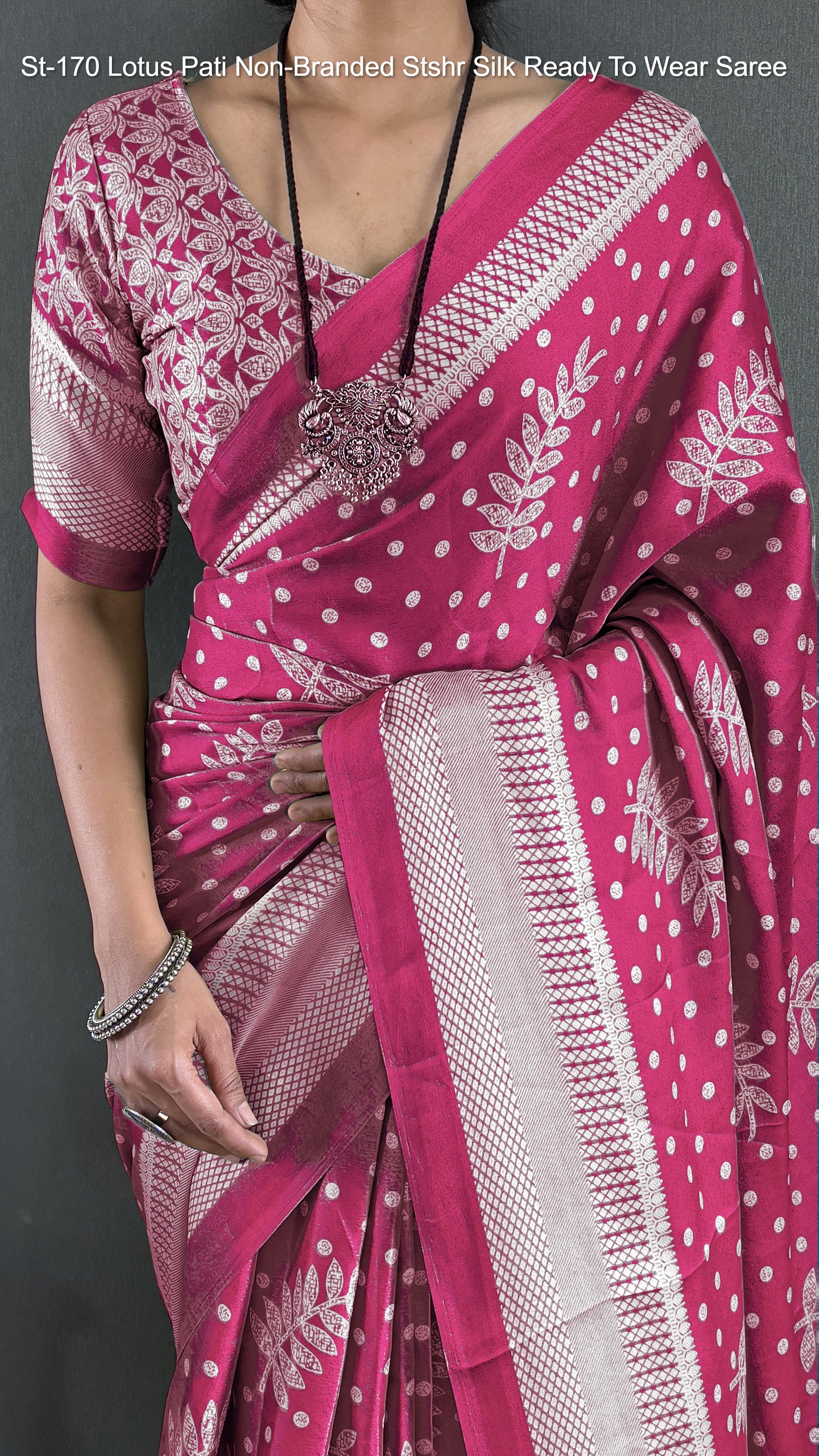St-170 Lotus Pati Non-Branded Stshr Silk Ready To Wear Saree