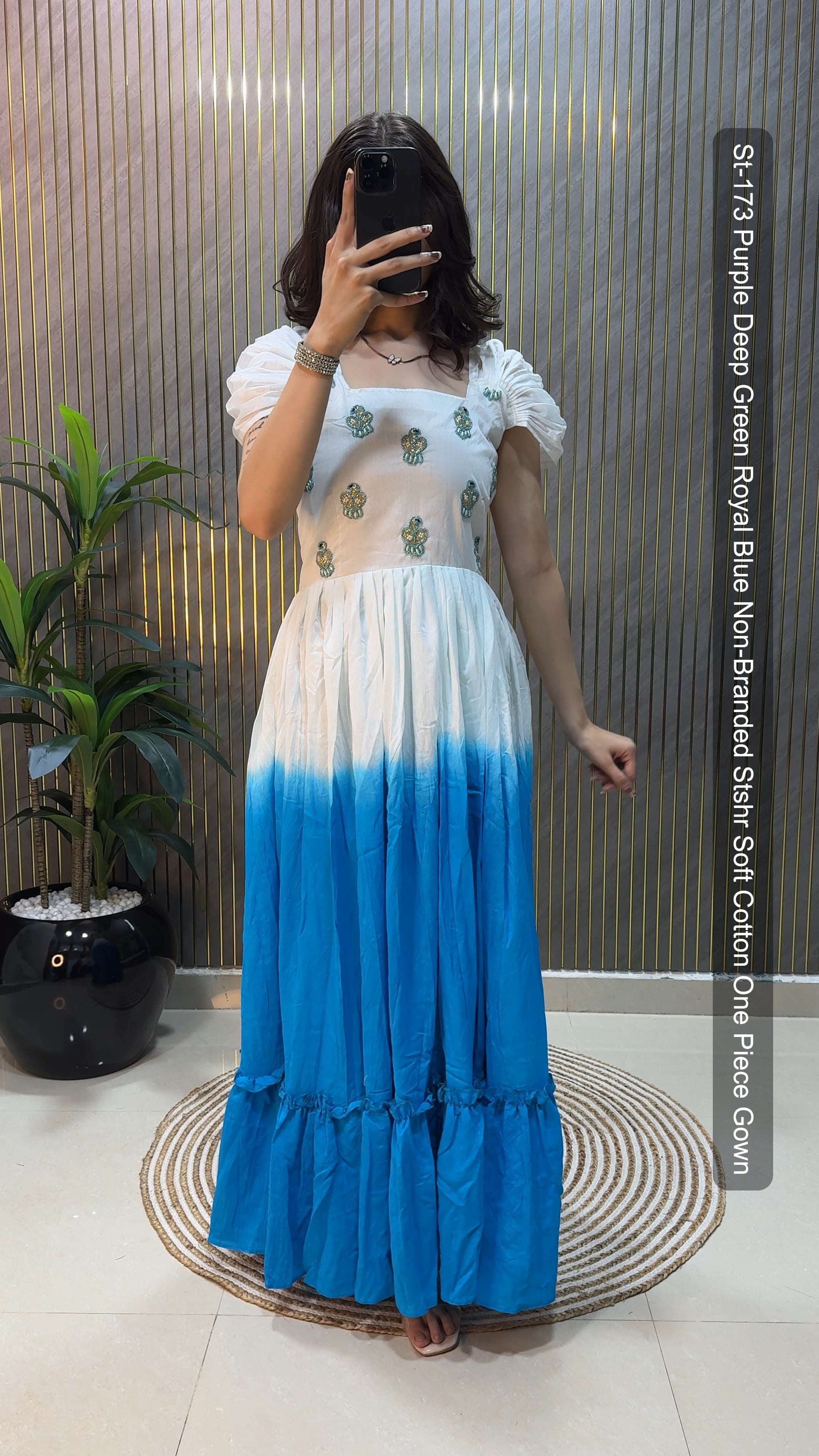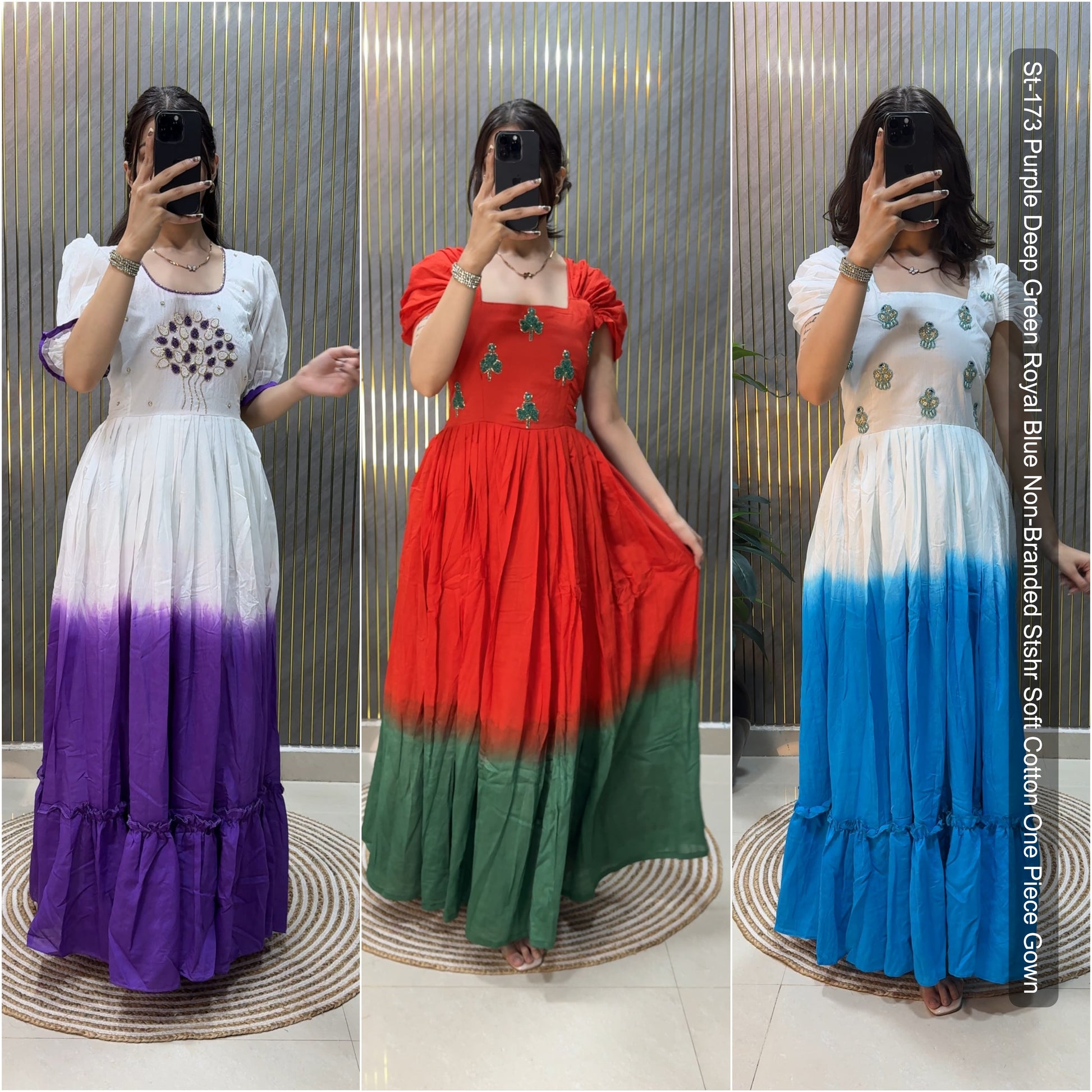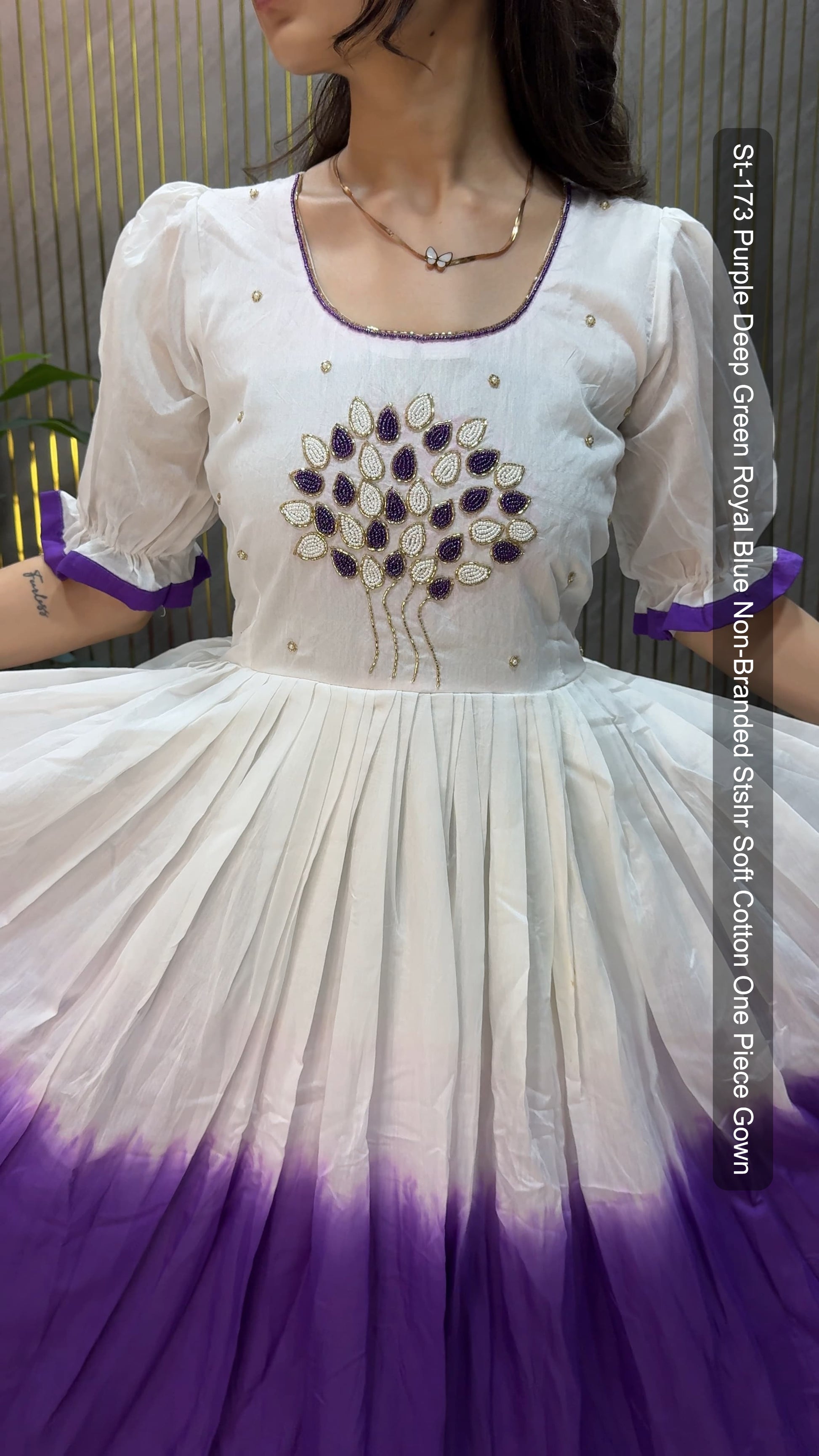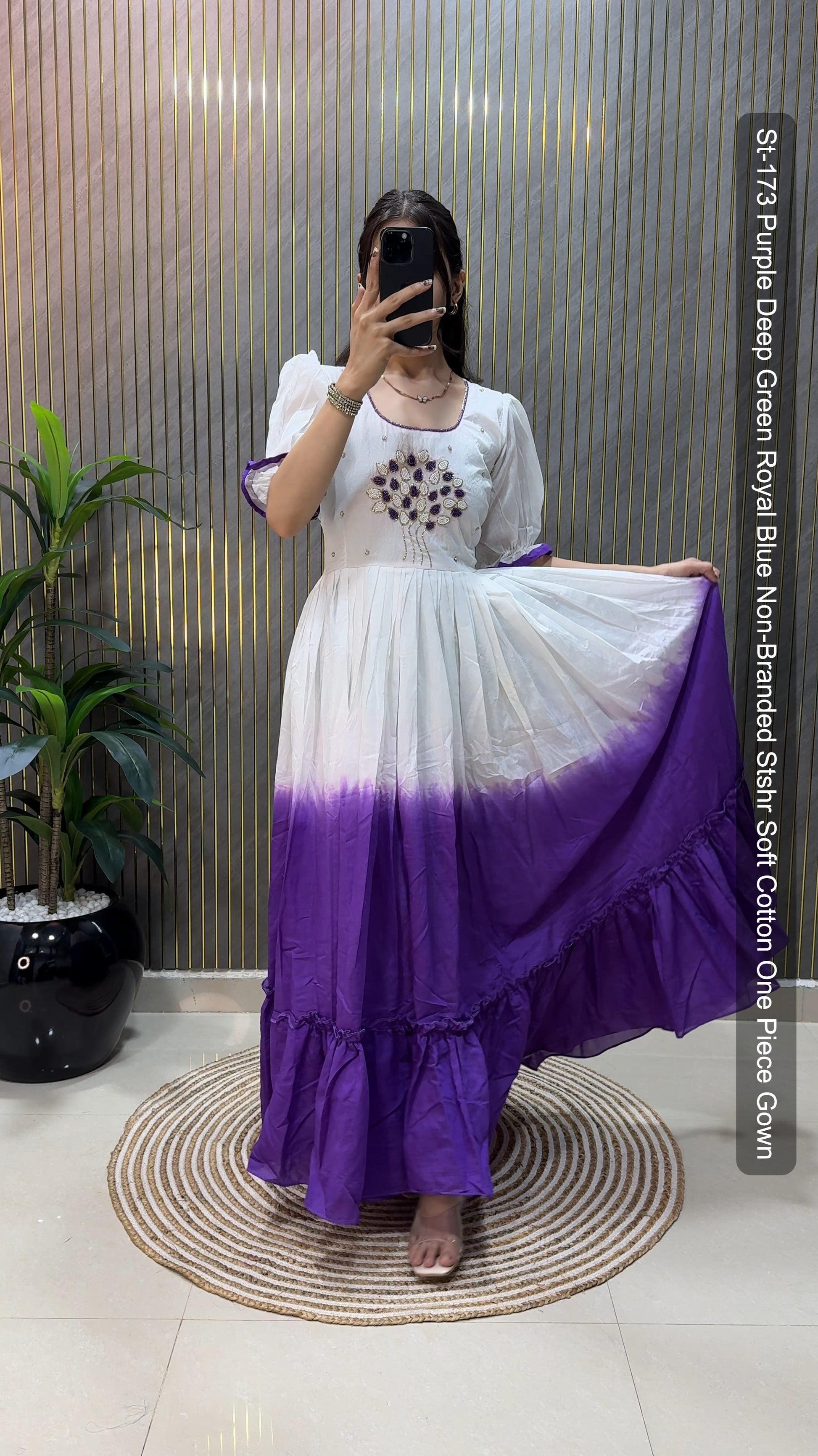 - St-173 Purple Deep Green Royal Blue Non-Branded Stshr Soft Cotton One Piece Gown Dealer Ahmedabad Surat Wholesale Gujarat India Lowest Price Best Quality Buy Purchase Shipping Kurta Salwaar Kameez Also free Cash on delivery