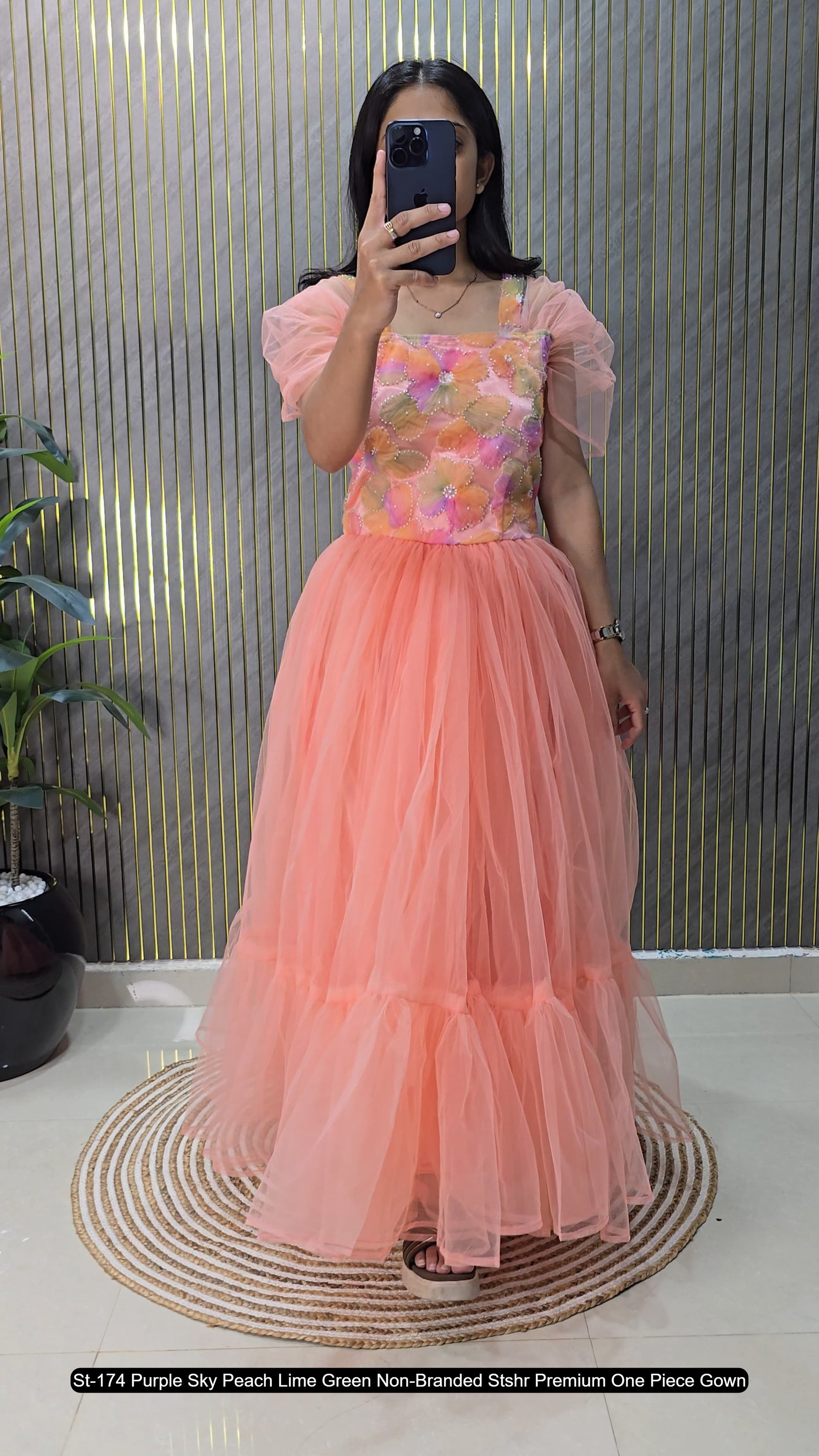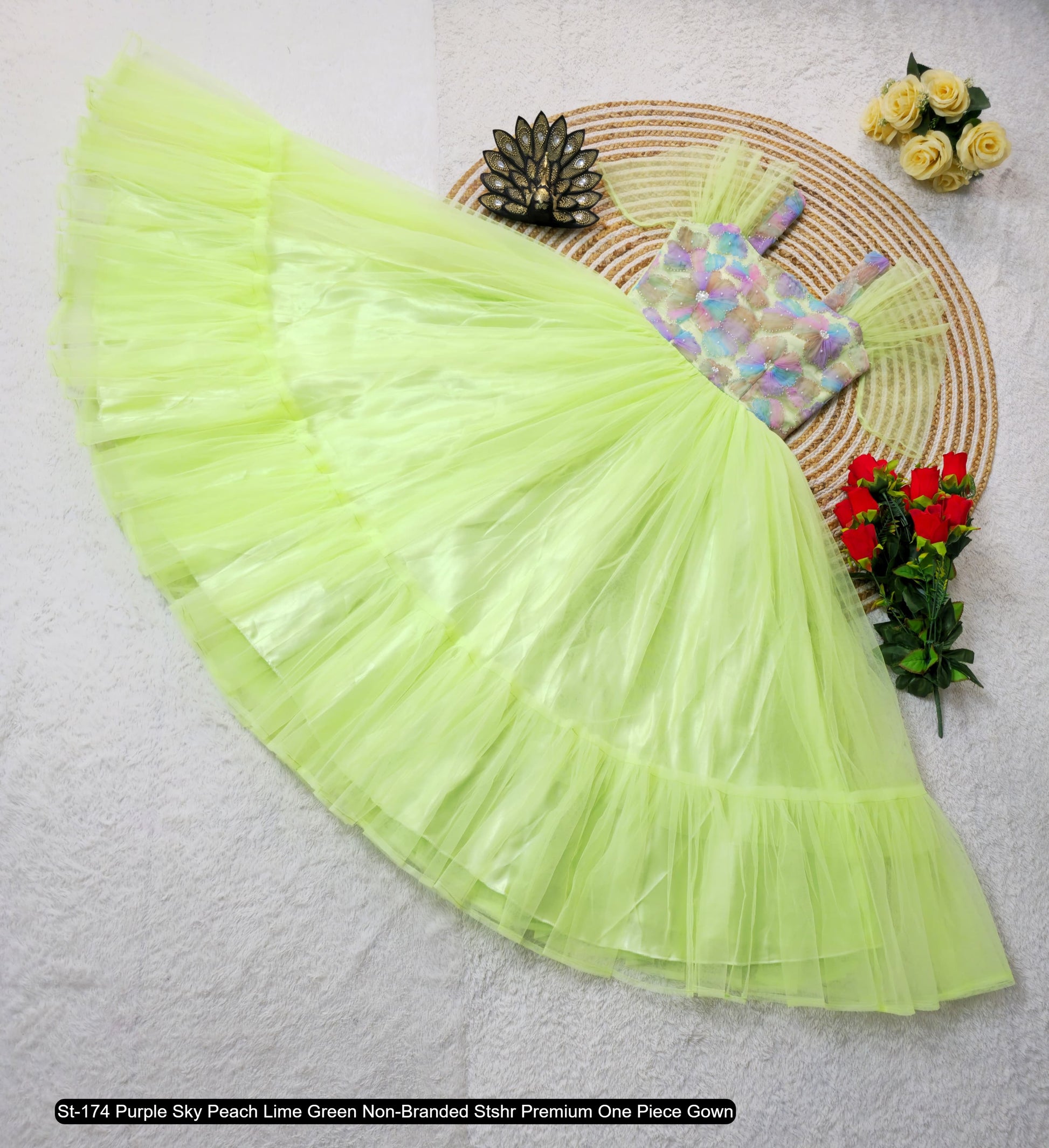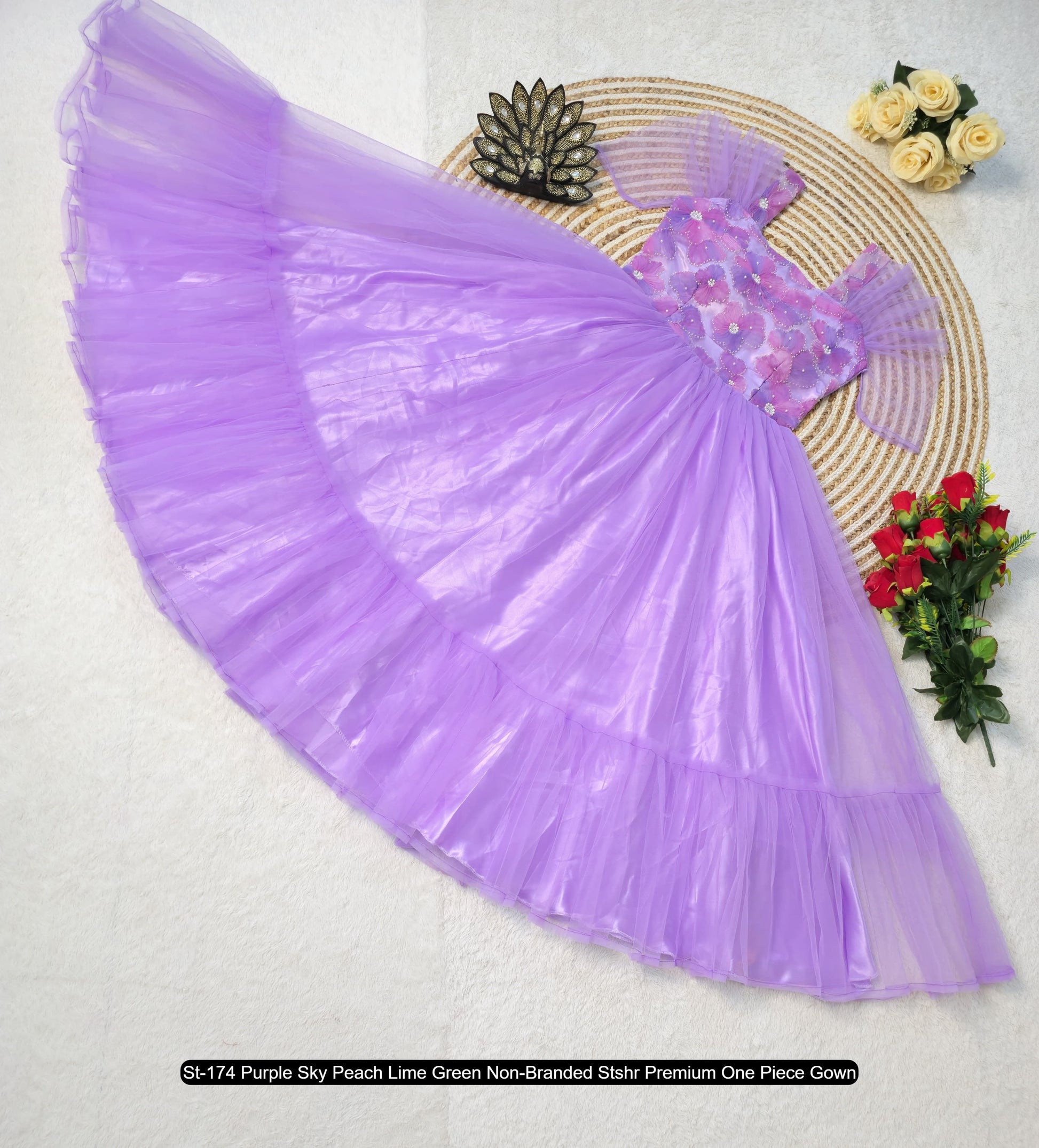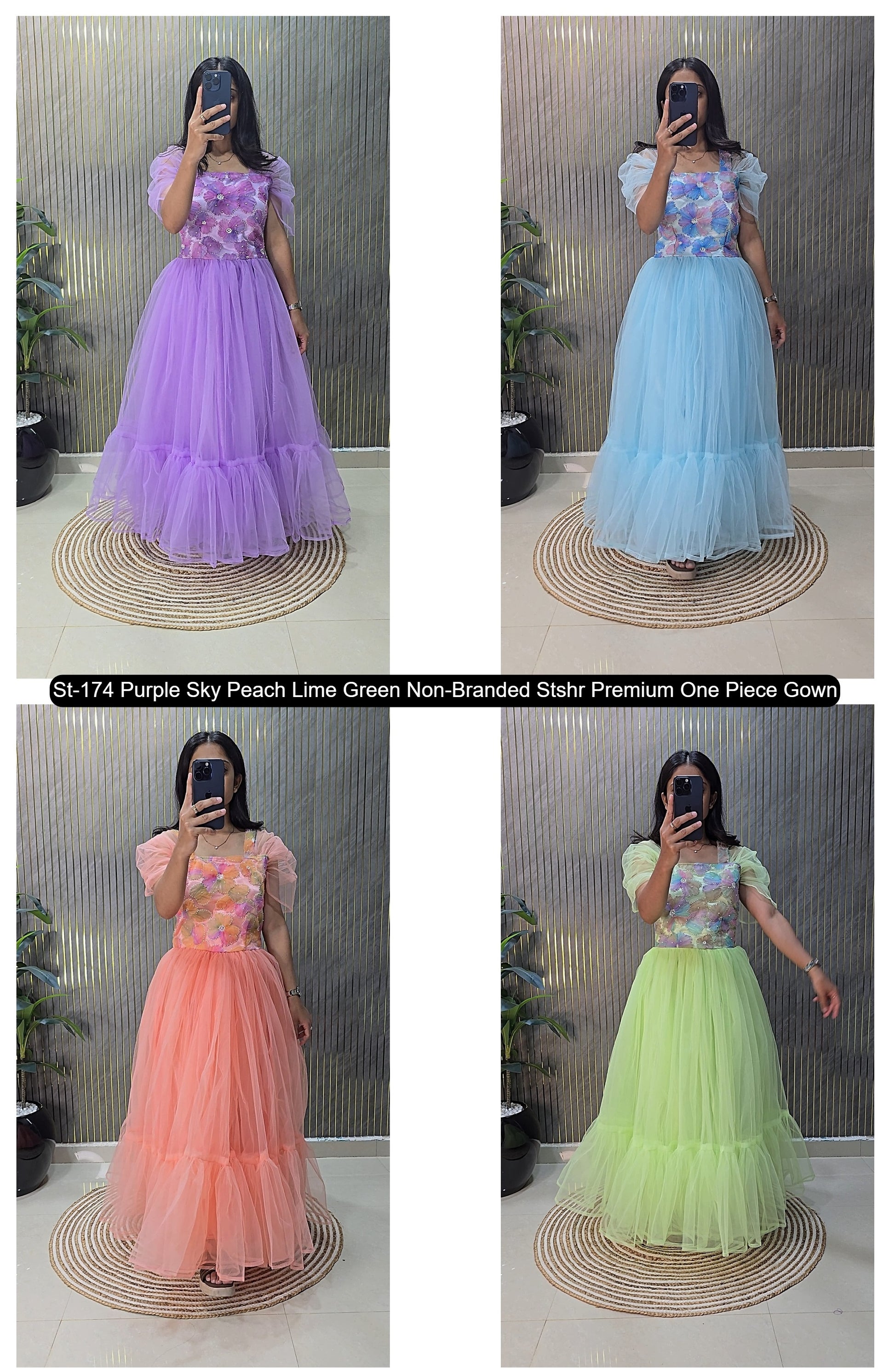 - St-174 Purple Sky Peach Lime Green Non-Branded Stshr Premium One Piece Gown Dealer Ahmedabad Surat Wholesale Gujarat India Lowest Price Best Quality Buy Purchase Shipping Kurta Salwaar Kameez Also free Cash on delivery