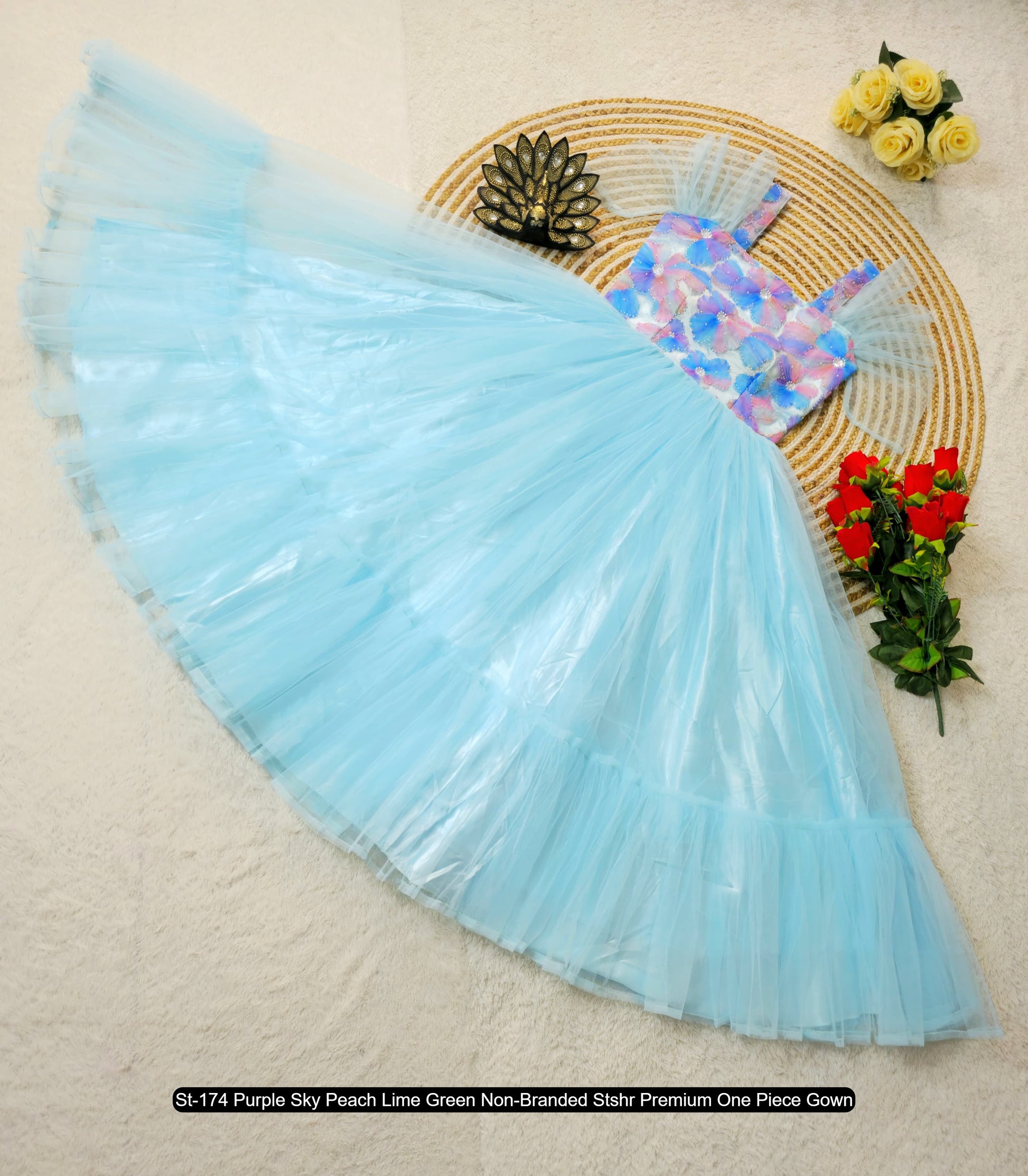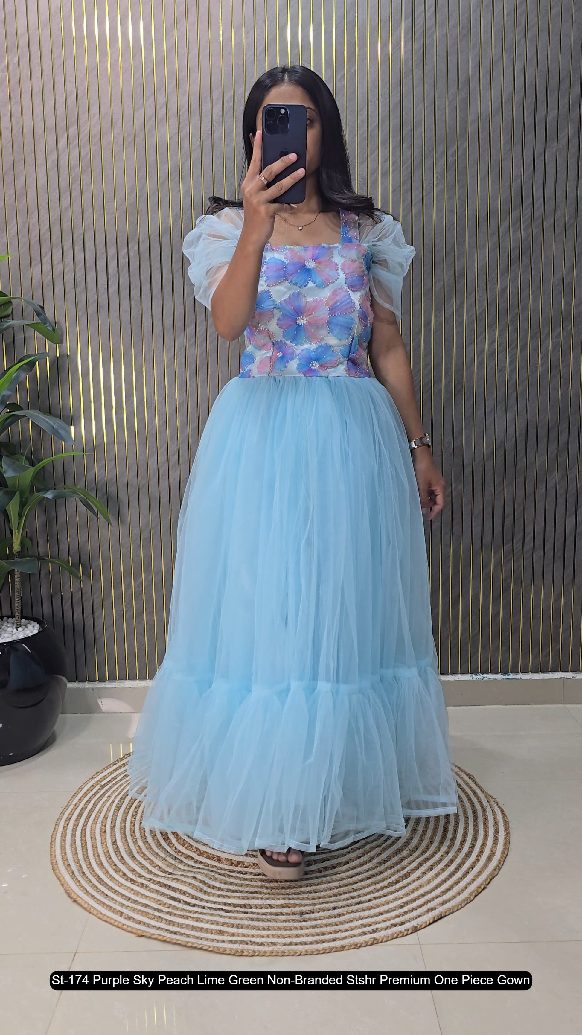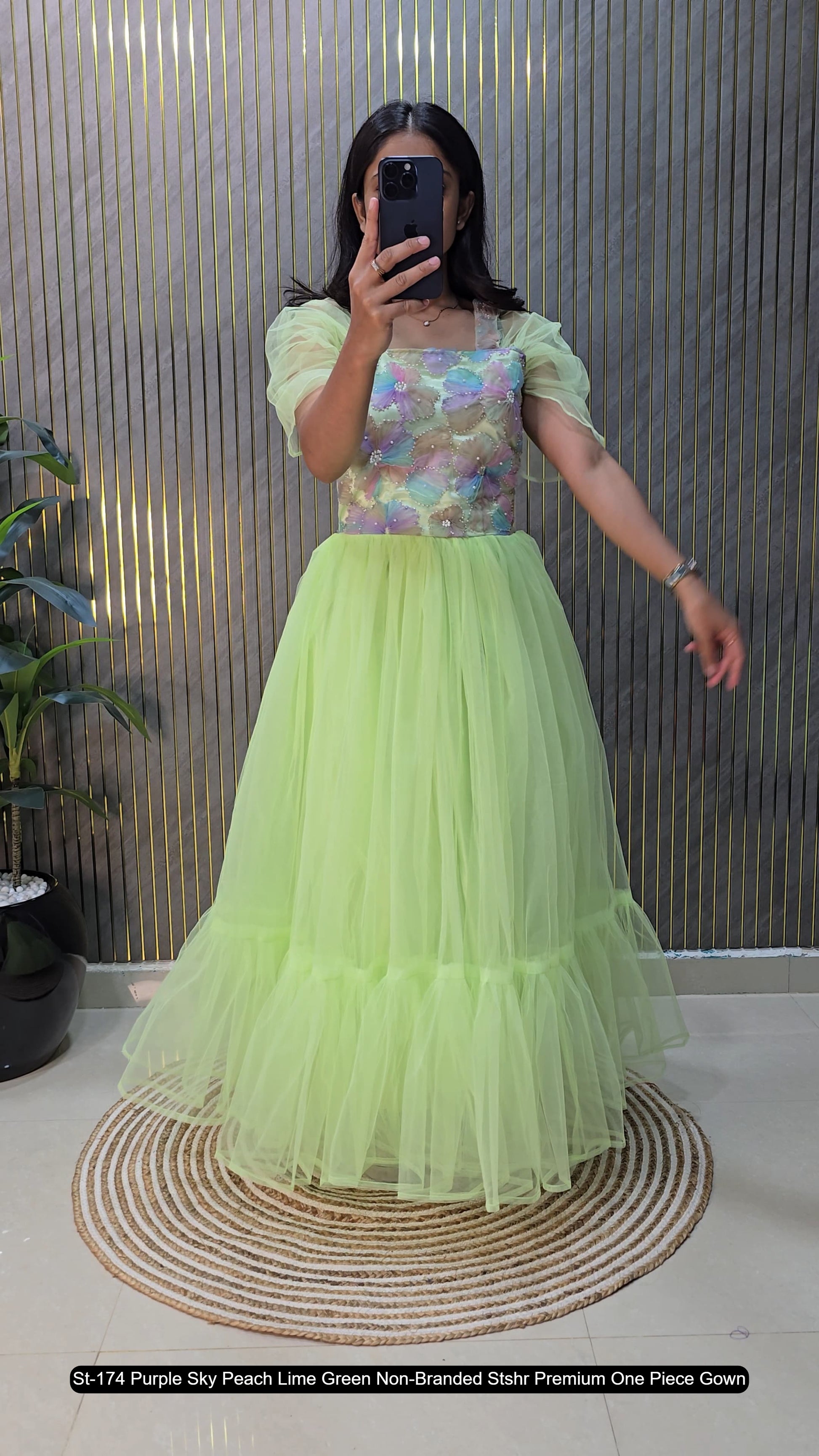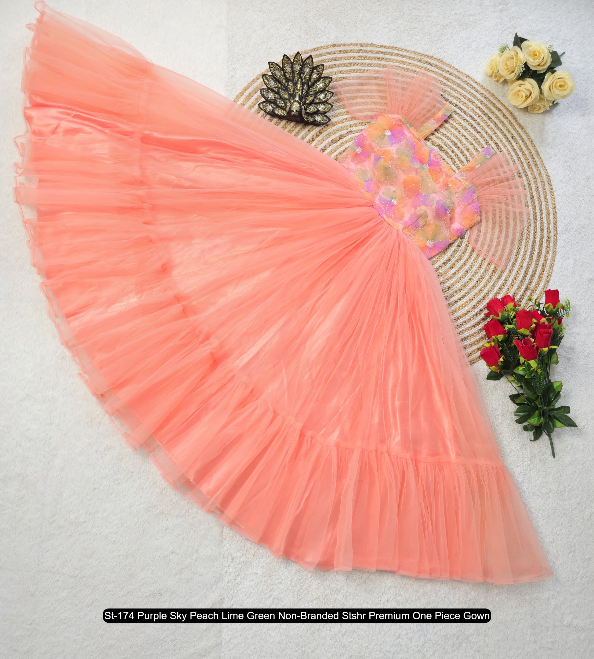 - St-174 Purple Sky Peach Lime Green Non-Branded Stshr Premium One Piece Gown Dealer Ahmedabad Surat Wholesale Gujarat India Lowest Price Best Quality Buy Purchase Shipping Kurta Salwaar Kameez Also free Cash on delivery