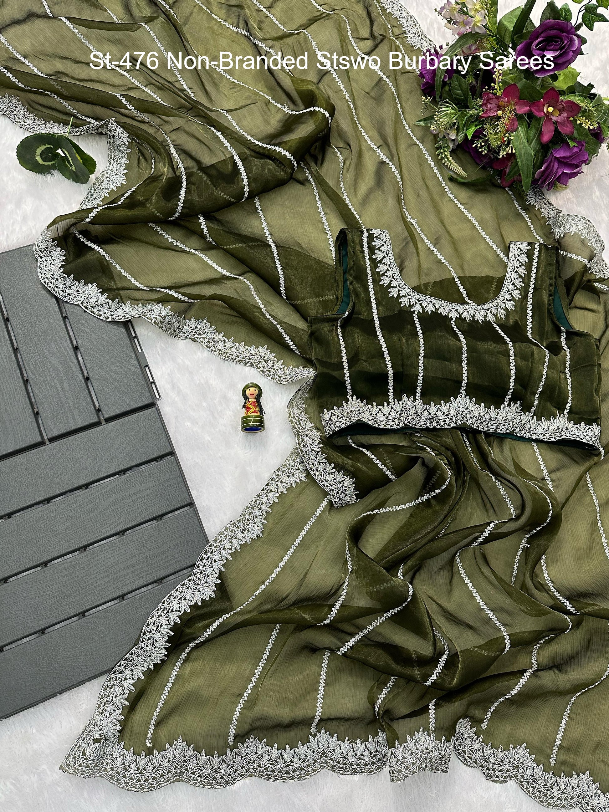 St-476 Non-Branded Stswo Burbary Sarees