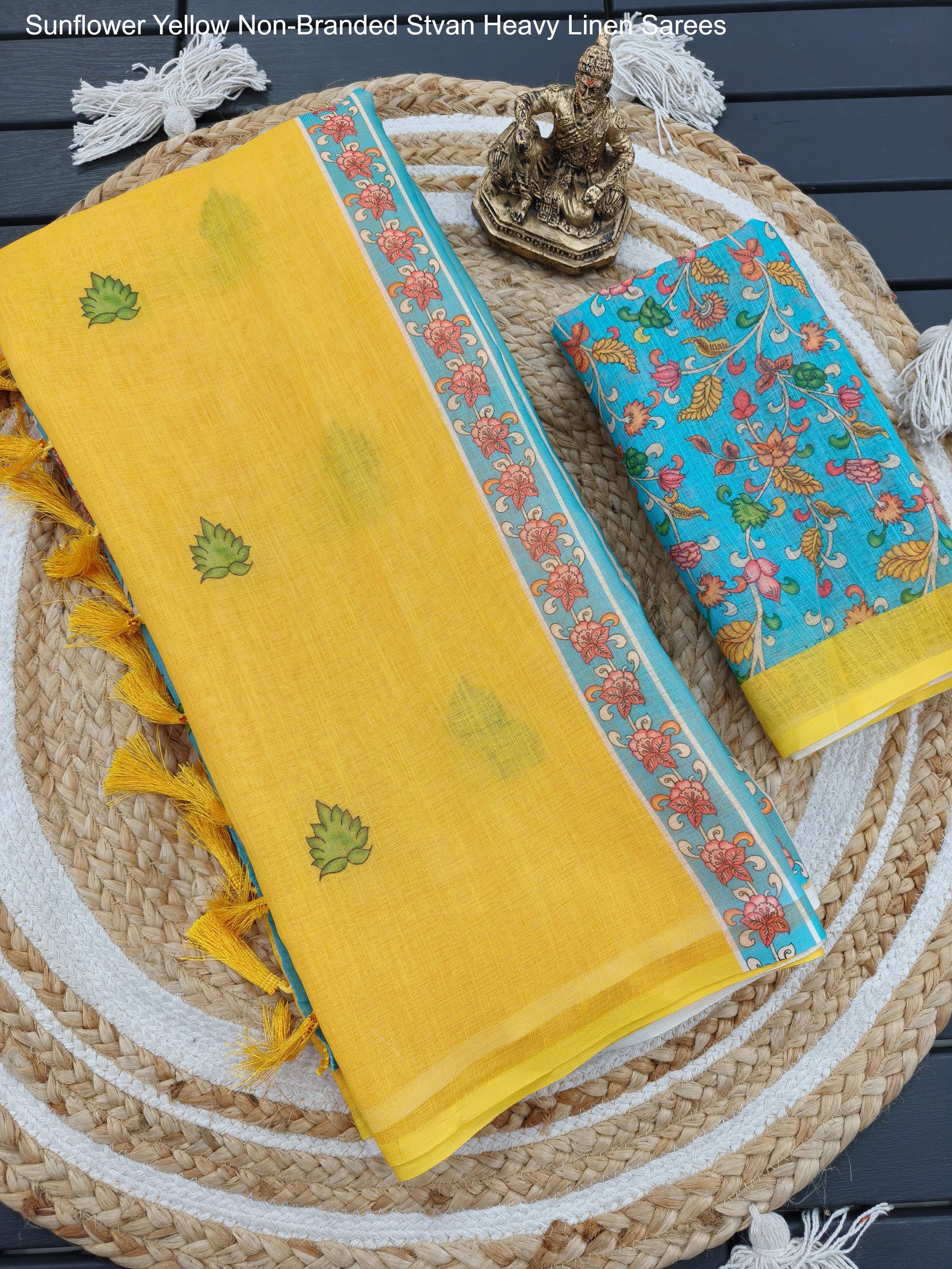 - Sunflower Yellow Non-Branded Stvan Heavy Linen Sarees Dealer Ahmedabad Surat Wholesale Gujarat India Lowest Price Best Quality Buy Purchase Shipping Kurta Salwaar Kameez Also free Cash on delivery