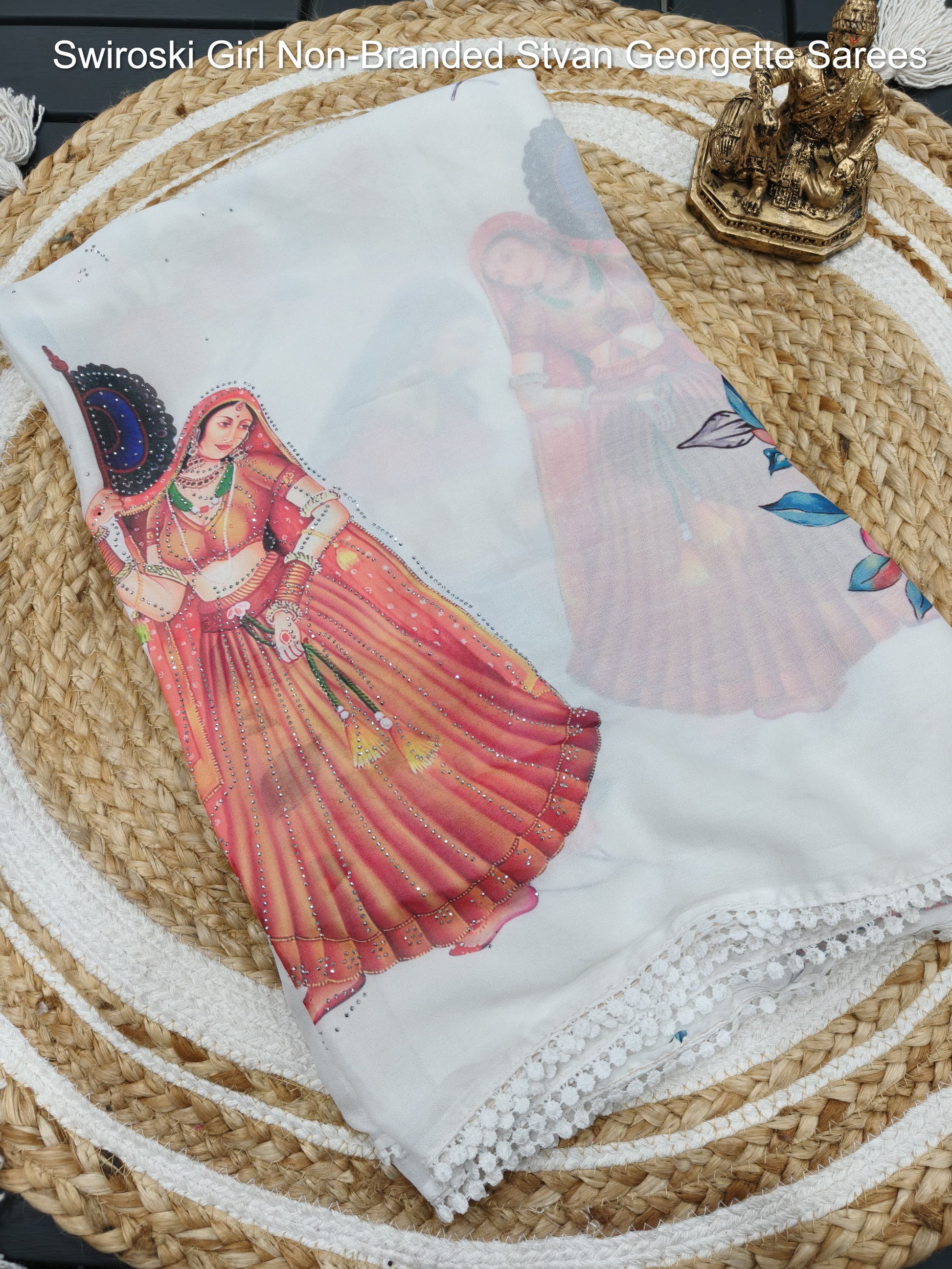 Swiroski Girl Non-Branded Stvan Georgette Sarees