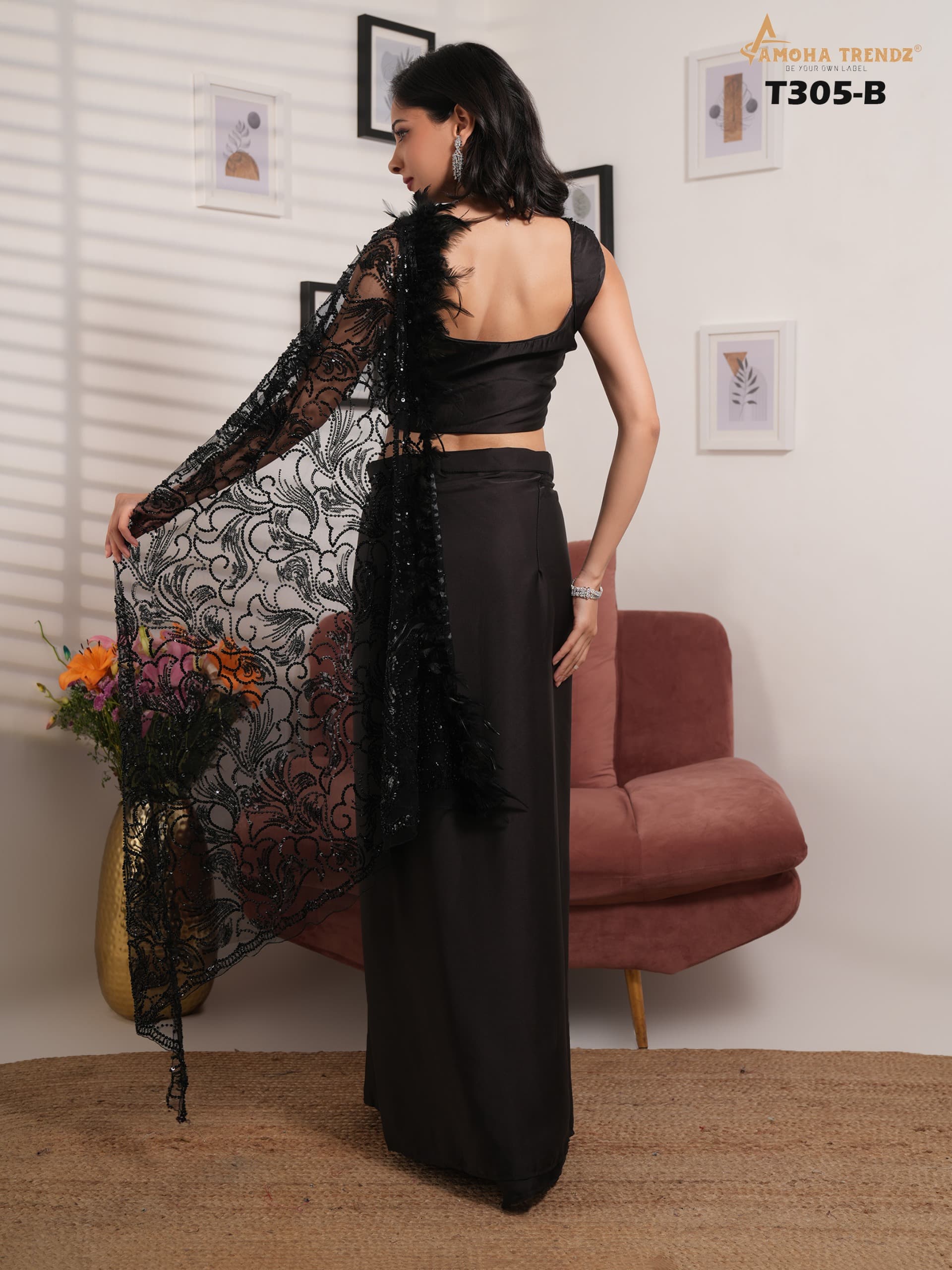 - T305B Black Amoha Satin Ready To Wear Saree Dealer Ahmedabad Surat Wholesale Gujarat India Lowest Price Best Quality Buy Purchase Shipping Kurta Salwaar Kameez Also free Cash on delivery
