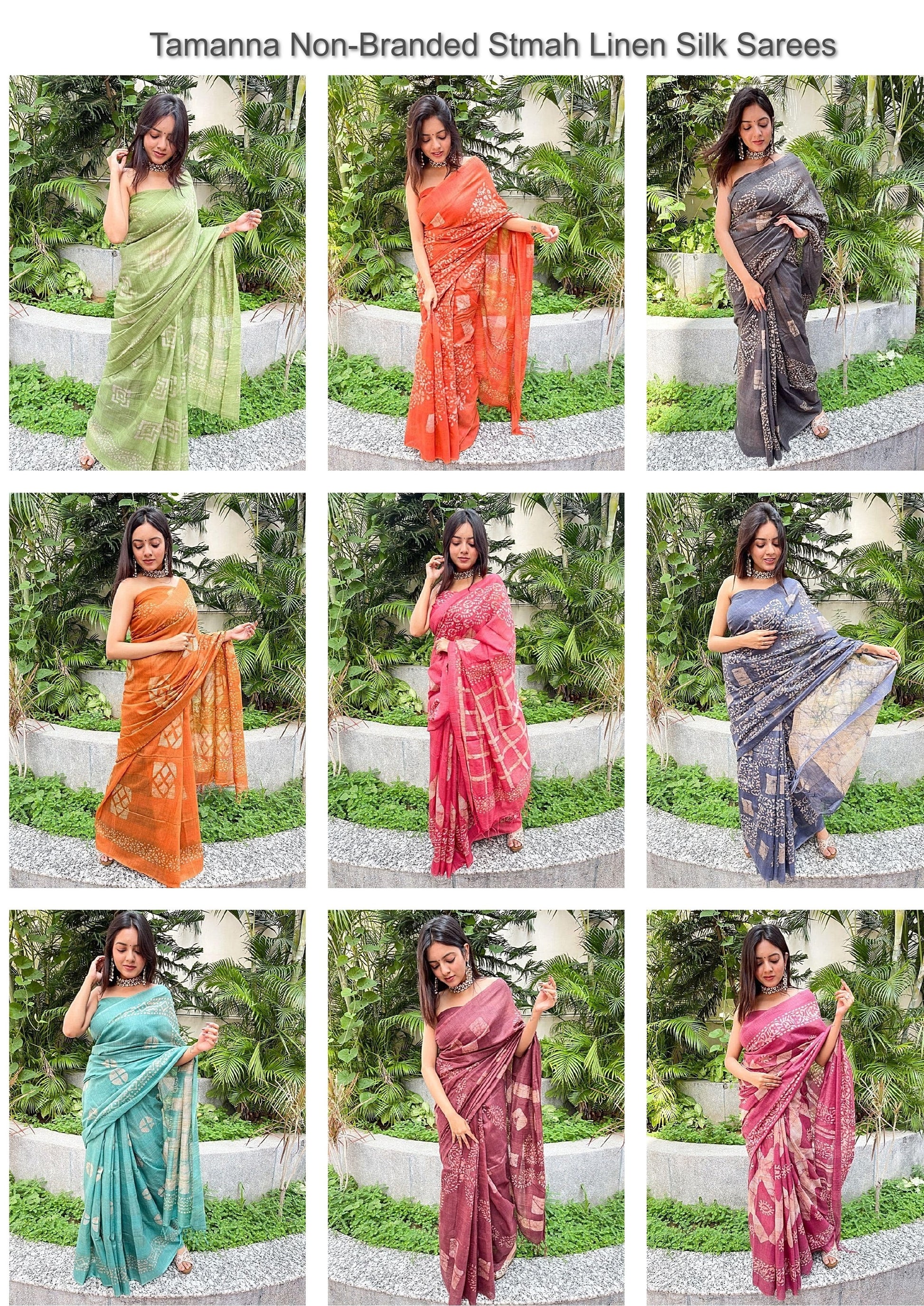 Tamanna Non-Branded Stmah Linen Silk Sarees