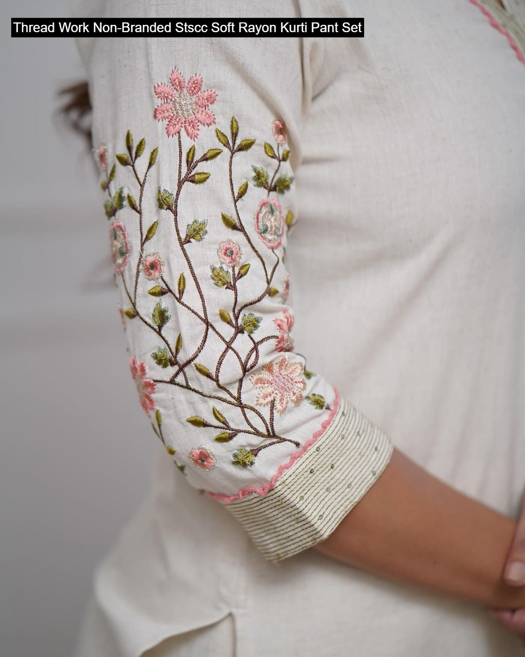 Thread Work Non-Branded Stscc Soft Rayon Kurti Pant Set