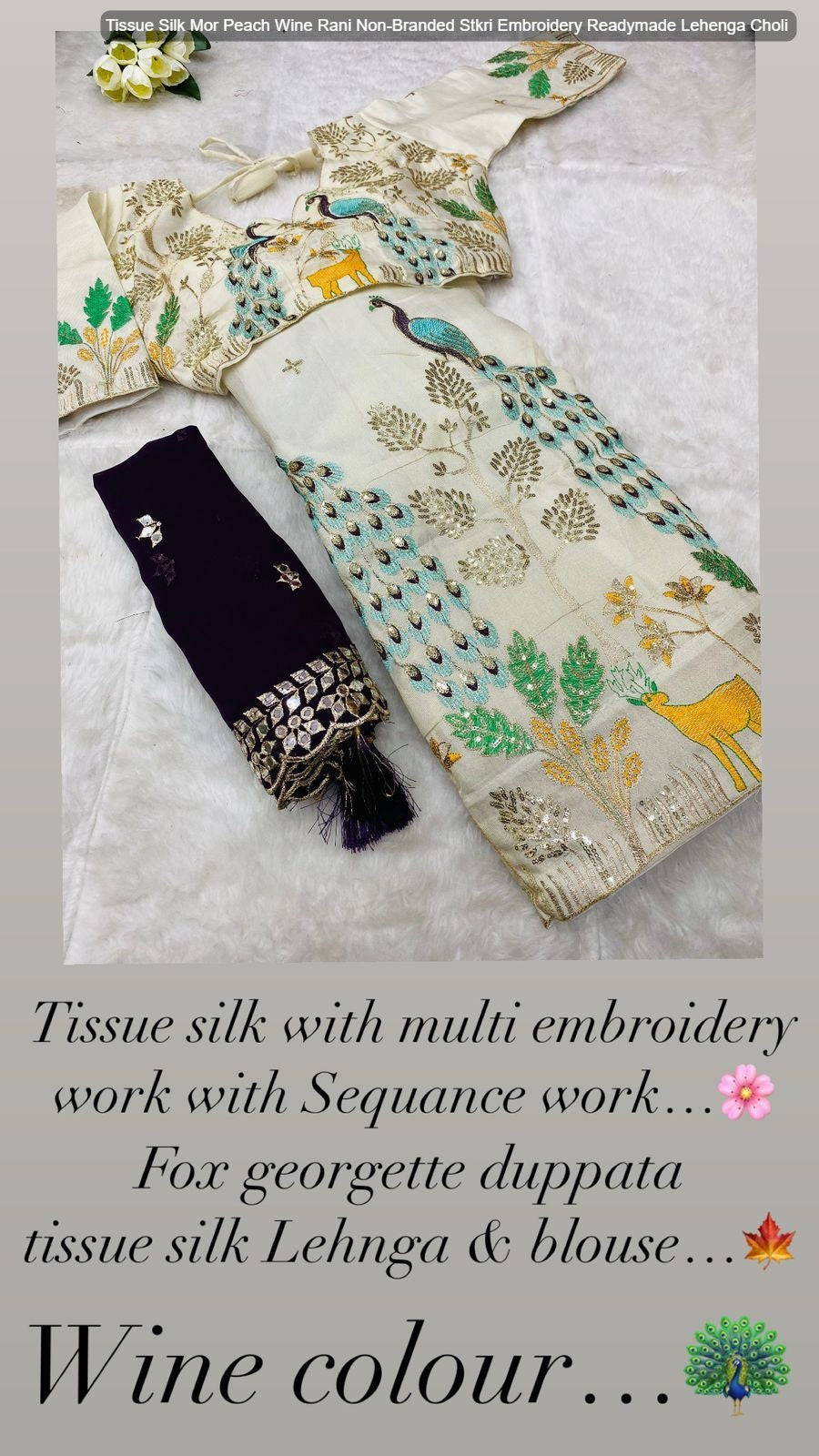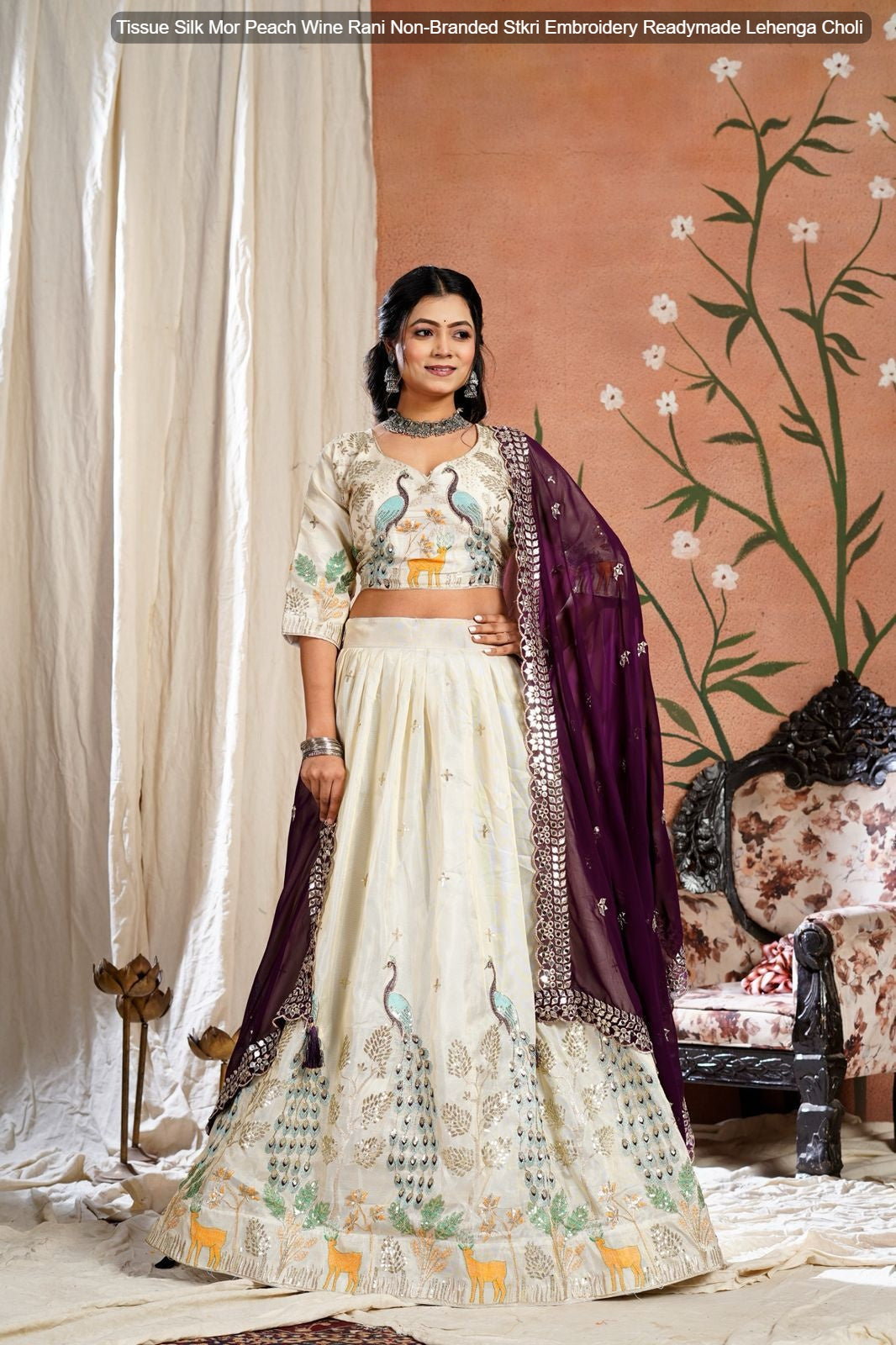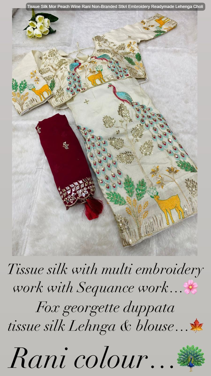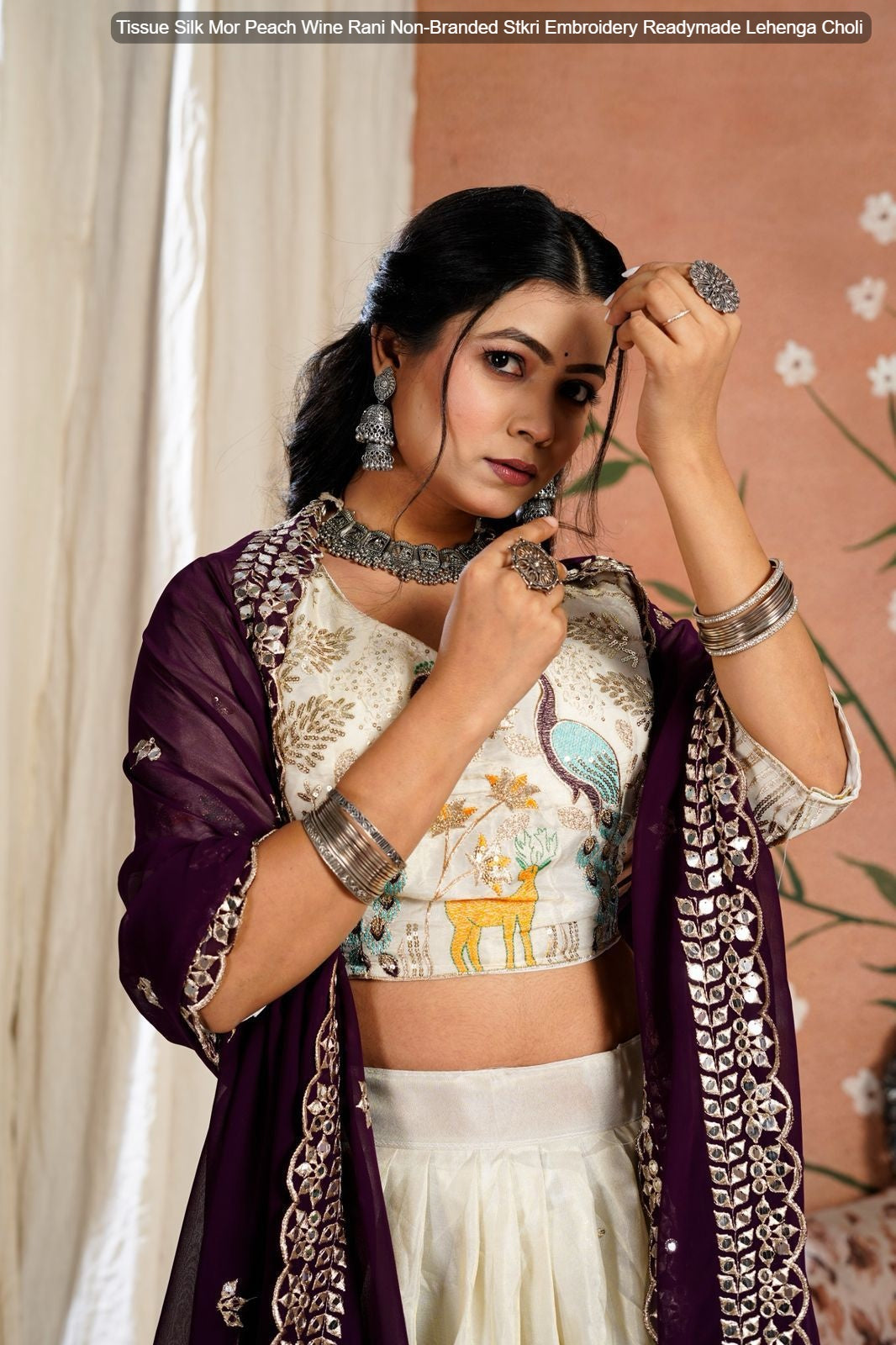 Tissue Silk Mor Peach Wine Rani Non-Branded Stkri Embroidery Readymade Lehenga Choli