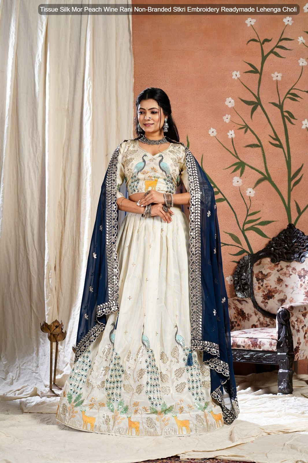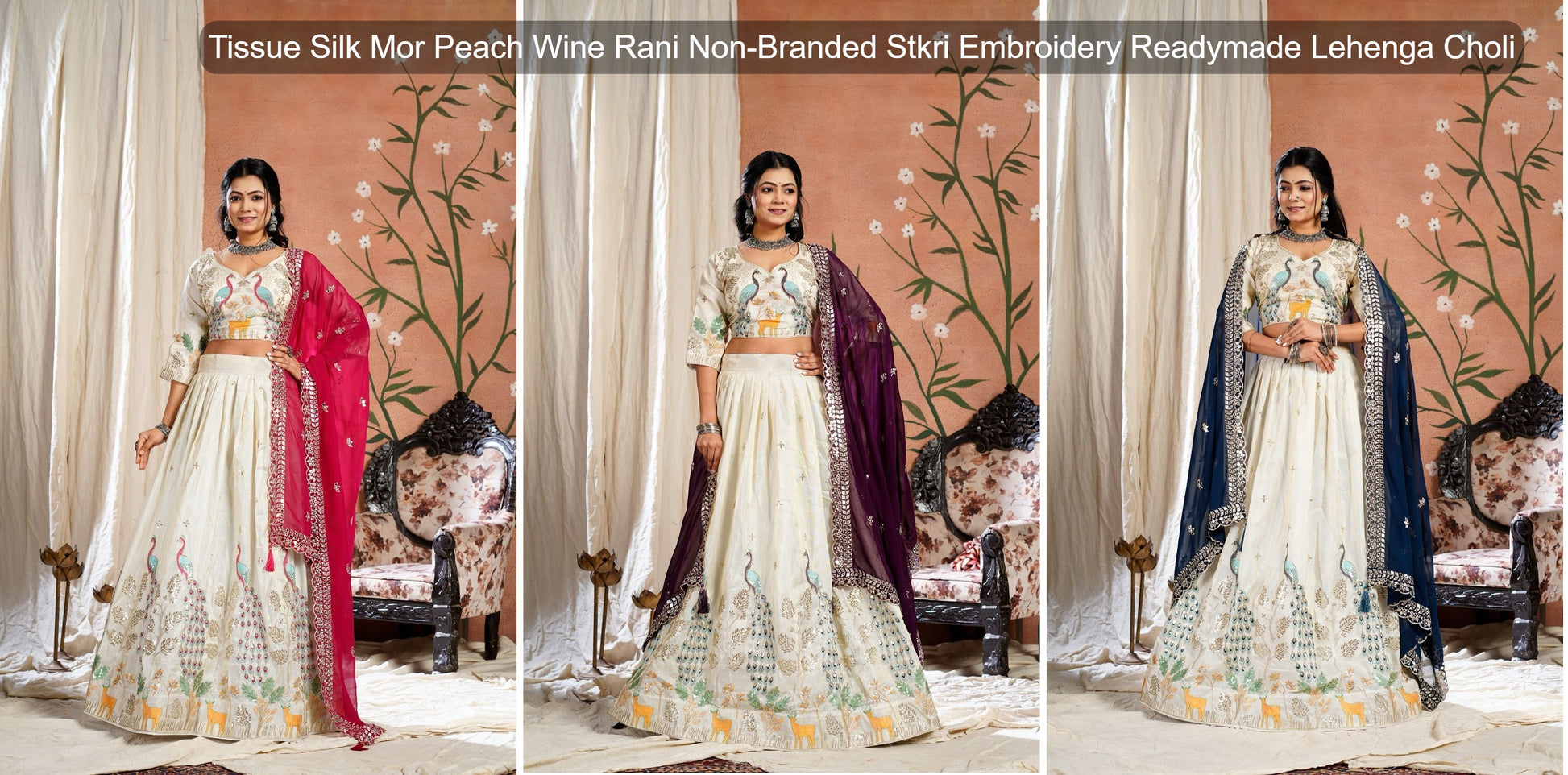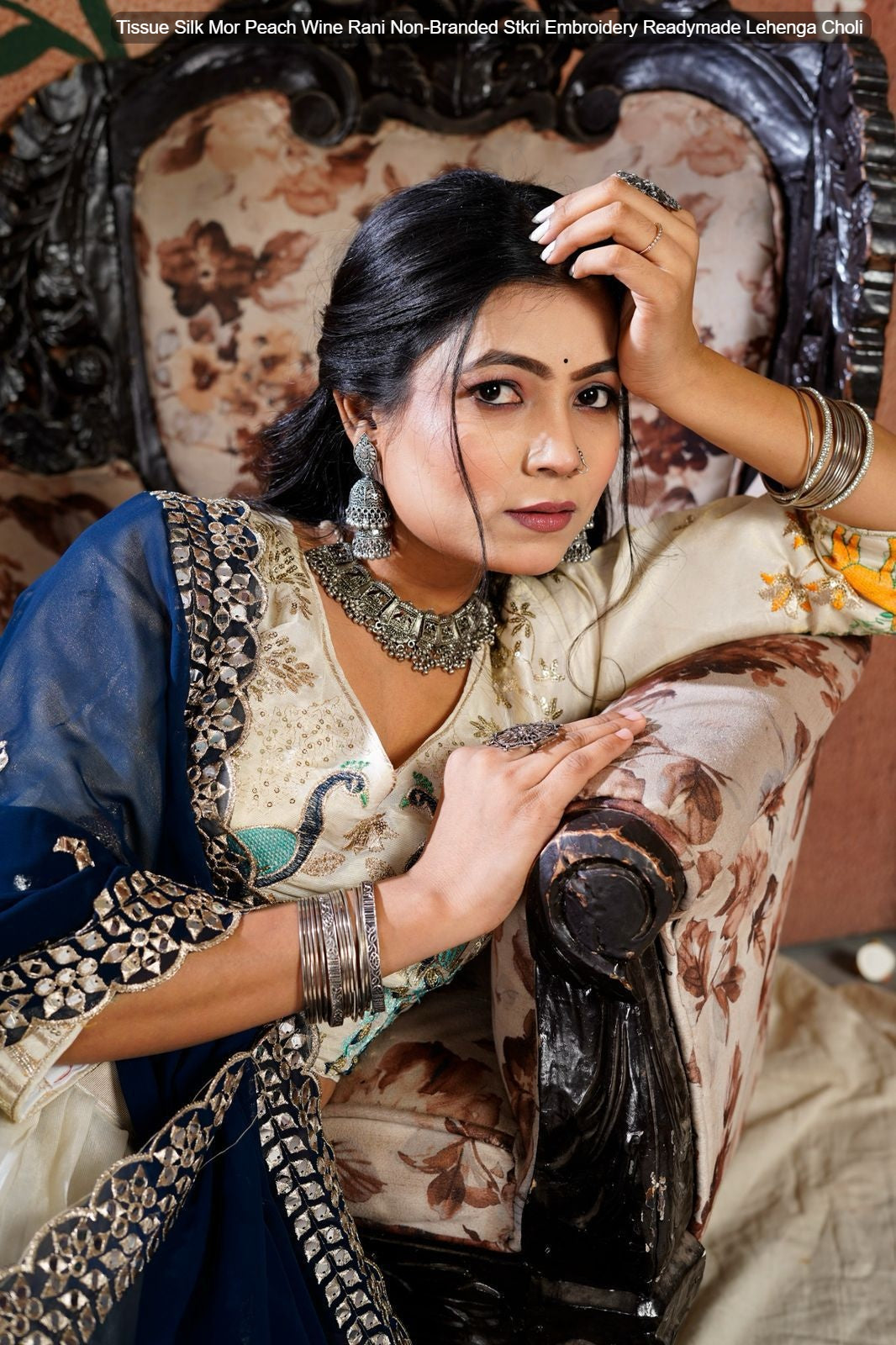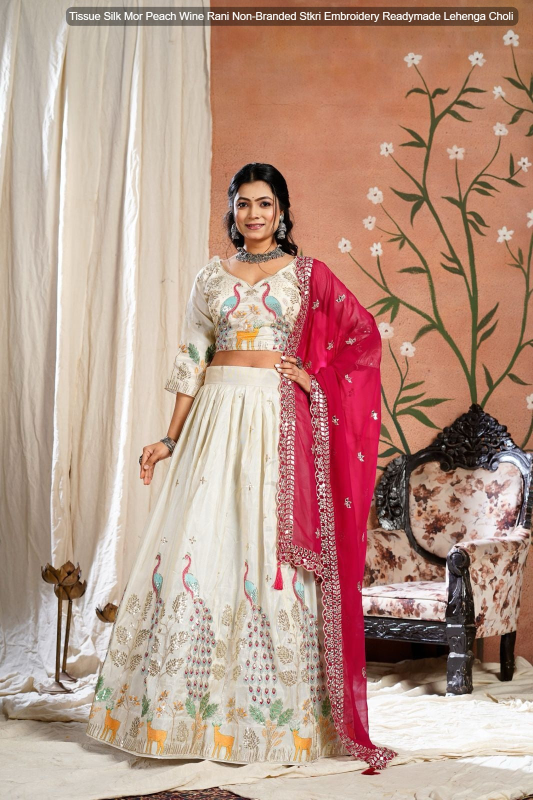Tissue Silk Mor Peach Wine Rani Non-Branded Stkri Embroidery Readymade Lehenga Choli