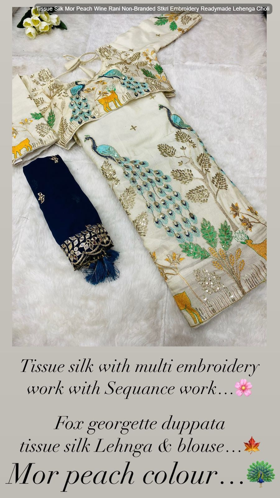 - Tissue Silk Mor Peach Wine Rani Non-Branded Stkri Embroidery Readymade Lehenga Choli Dealer Ahmedabad Surat Wholesale Gujarat India Lowest Price Best Quality Buy Purchase Shipping Kurta Salwaar Kameez Also free Cash on delivery