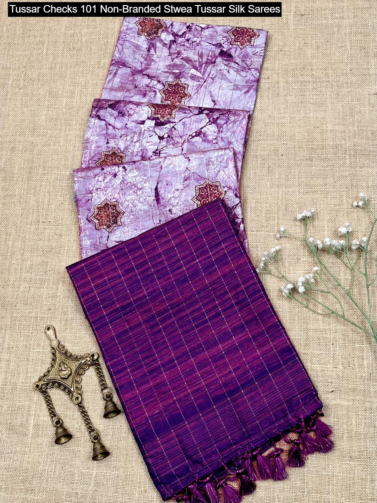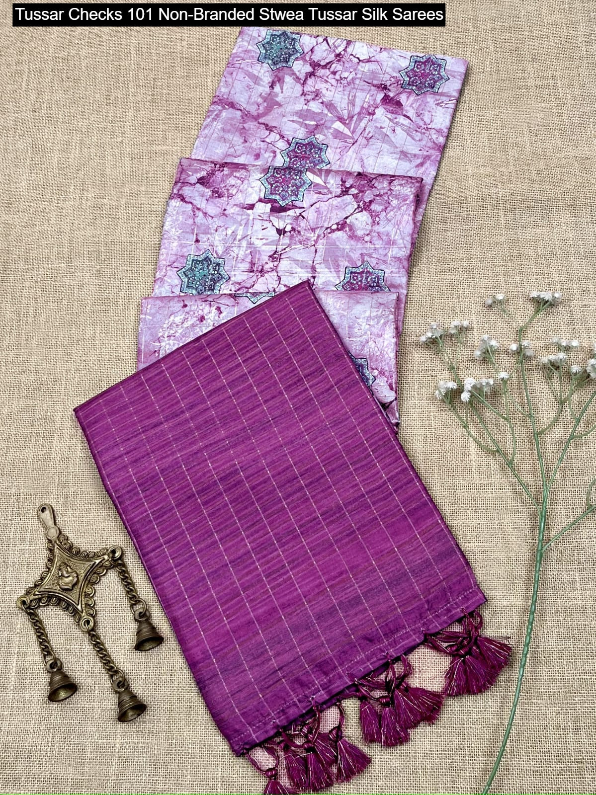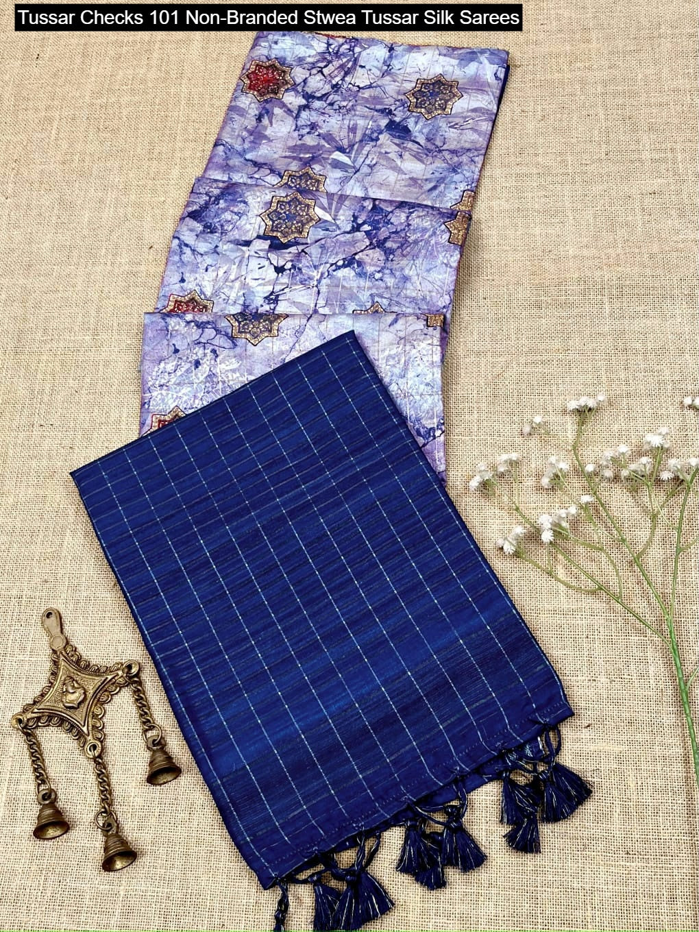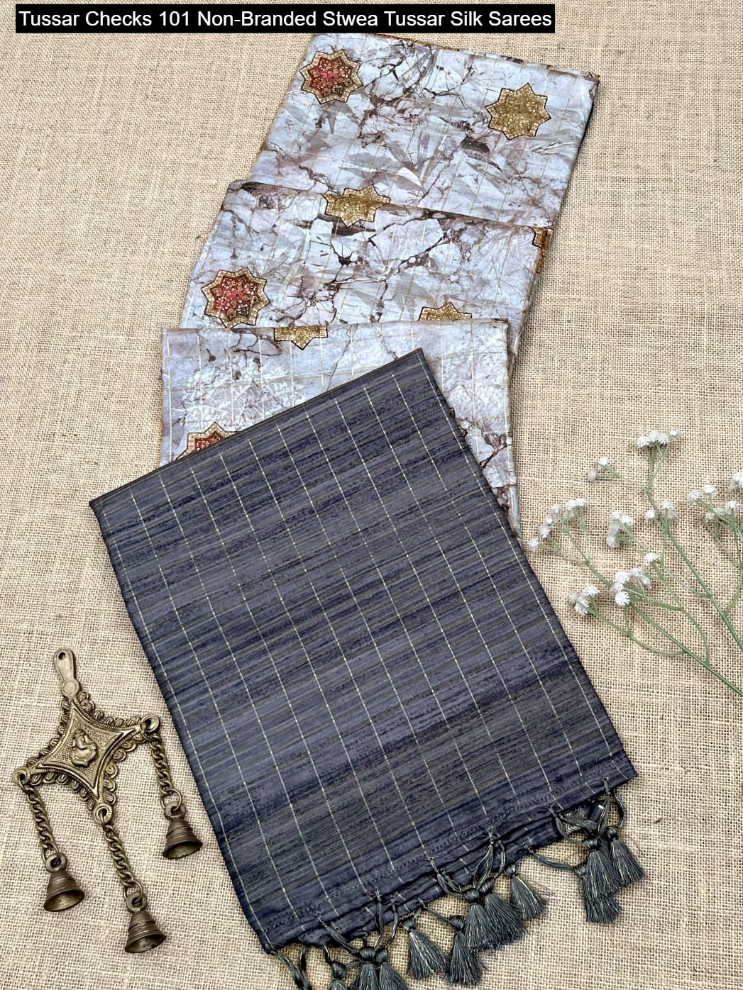 Tussar Checks 101 Non-Branded Stwea Tussar Silk Sarees