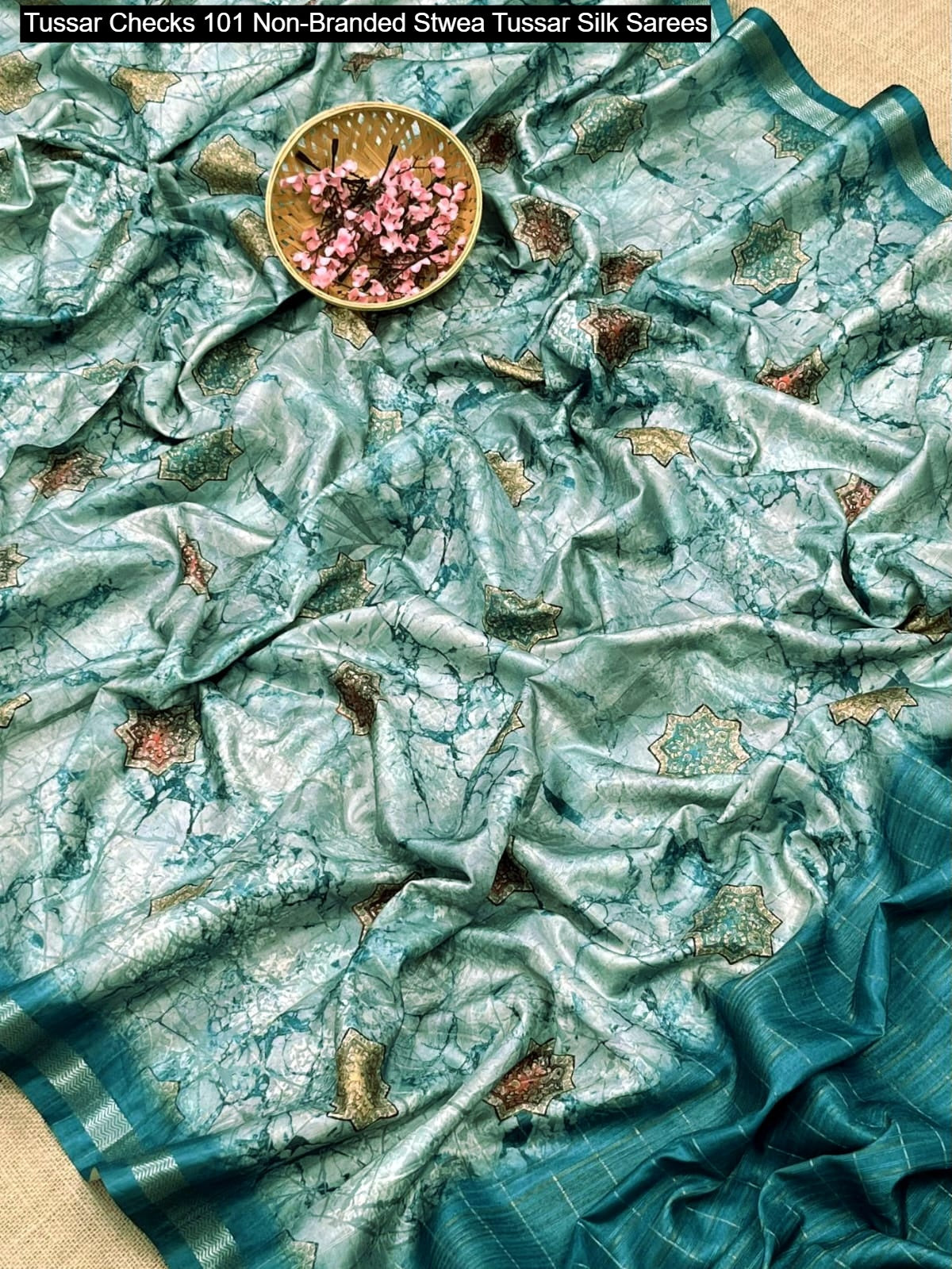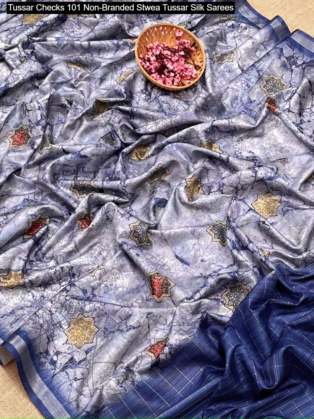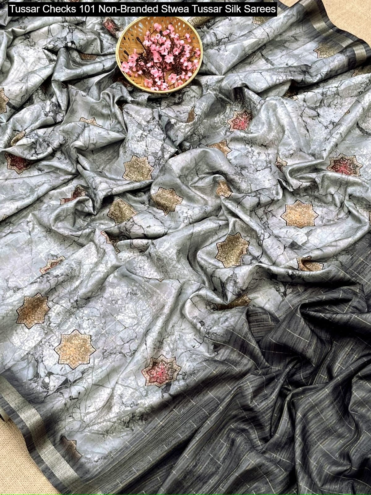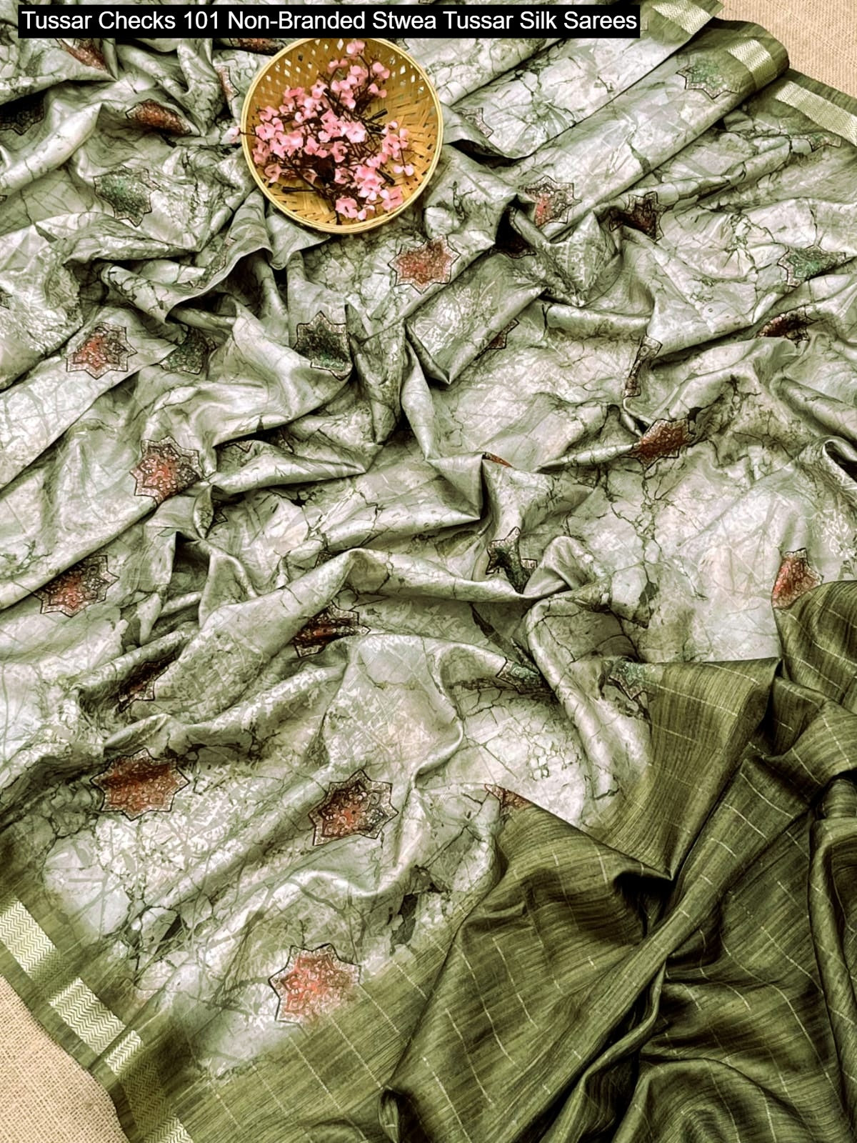 Tussar Checks 101 Non-Branded Stwea Tussar Silk Sarees