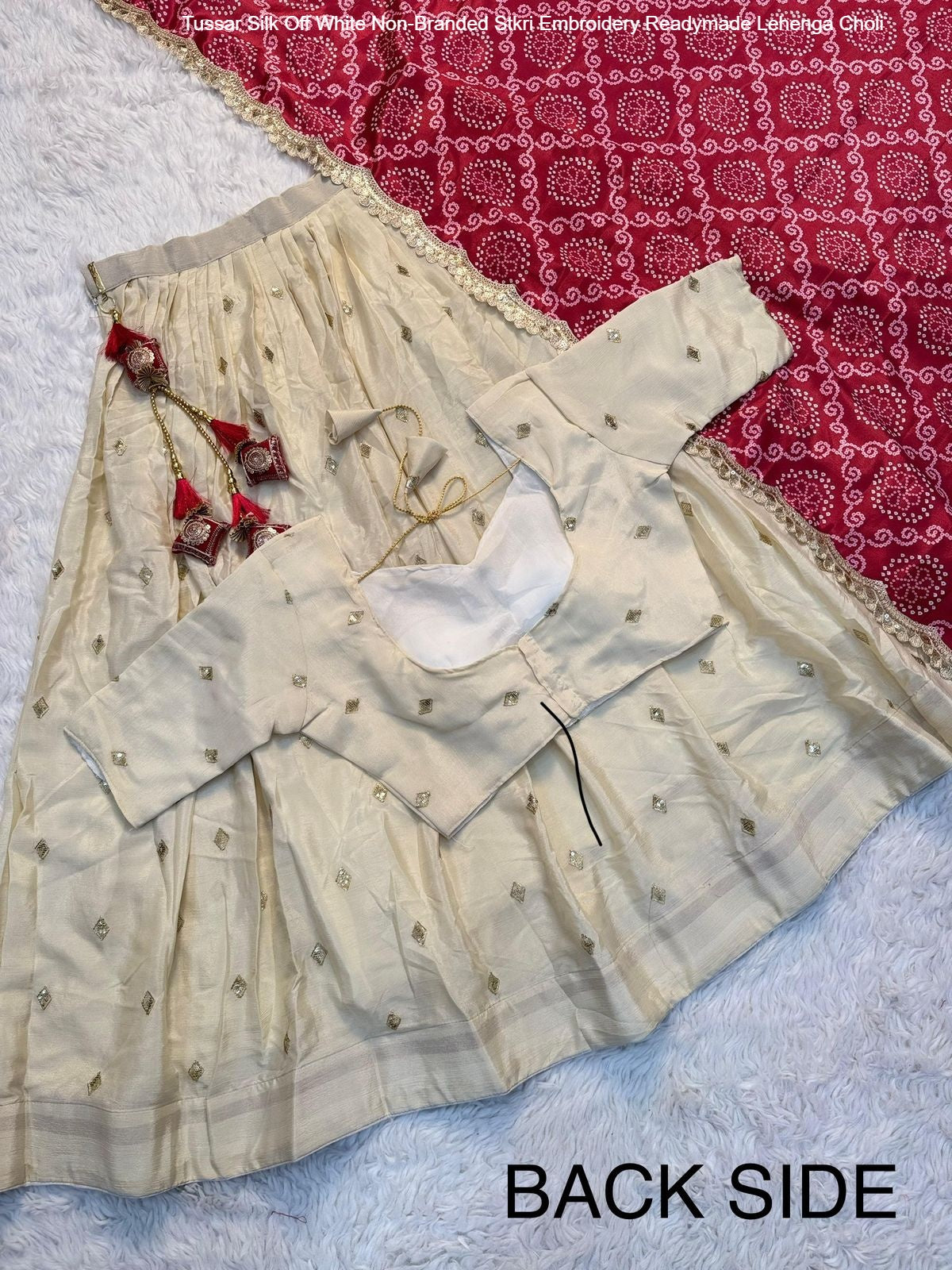 - Tussar Silk Off White Non-Branded Stkri Embroidery Readymade Lehenga Choli Dealer Ahmedabad Surat Wholesale Gujarat India Lowest Price Best Quality Buy Purchase Shipping Kurta Salwaar Kameez Also free Cash on delivery