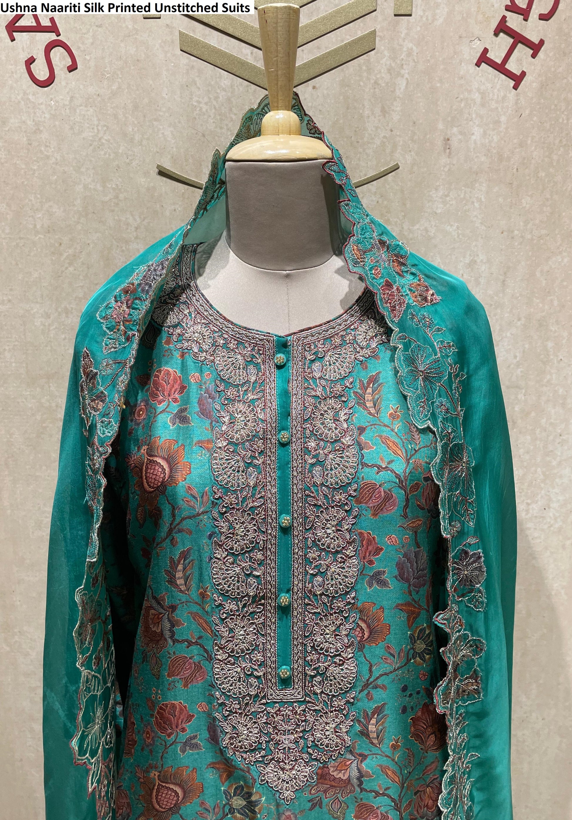 - Ushna Naariti Silk Printed Unstitched Suits Dealer Ahmedabad Surat Wholesale Gujarat India Lowest Price Best Quality Buy Purchase Shipping Kurta Salwaar Kameez Also free Cash on delivery
