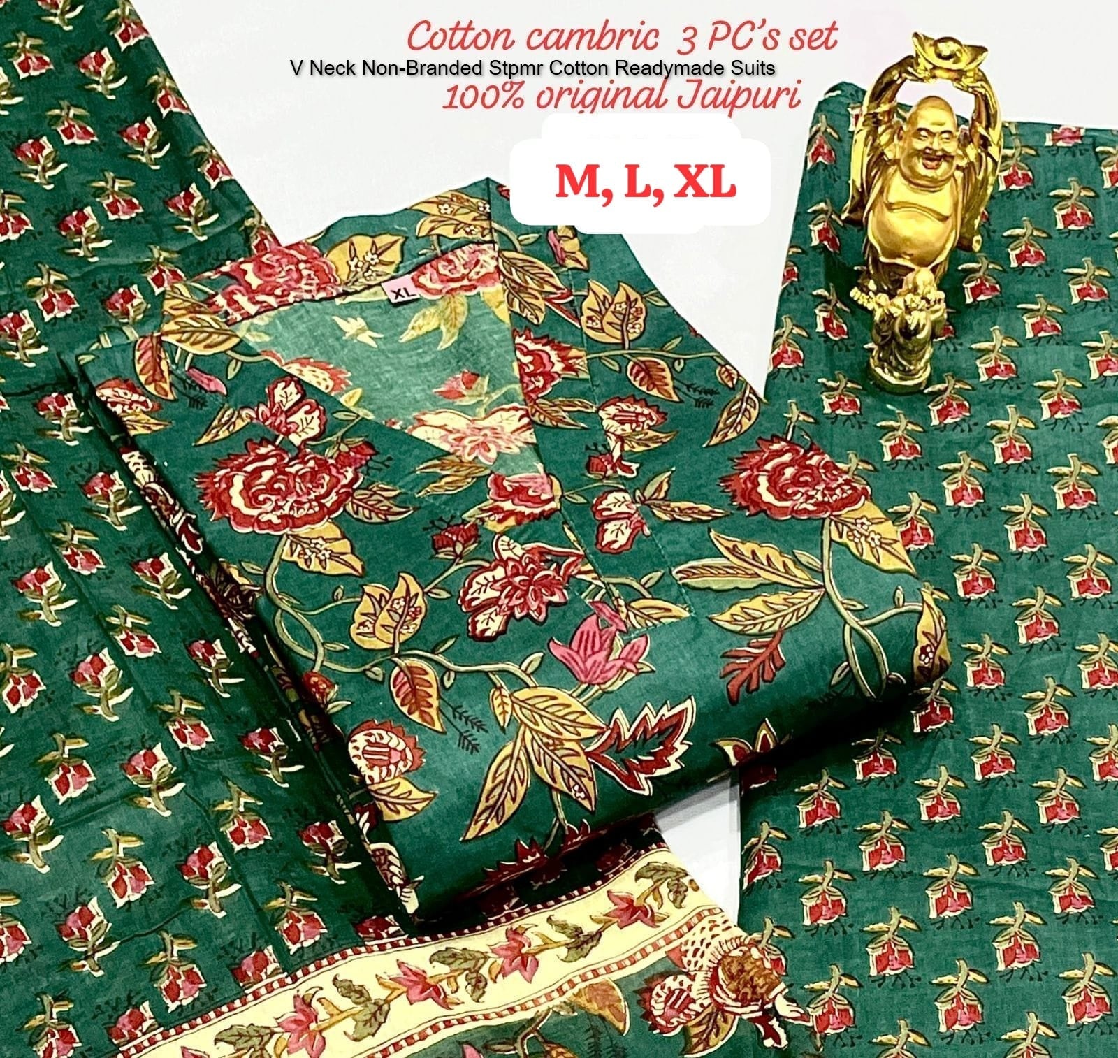 - Fabric Detail: Top : Pure Heavy Cambric Cotton Neck Pattern , Bottom : Heavy Cambric Cotton, Dupatta : Heavy Cambric Cotton , Size : M, L, Xl, 2Xl, 3Xl, 4Xl Available Size Mentioned On Photo
