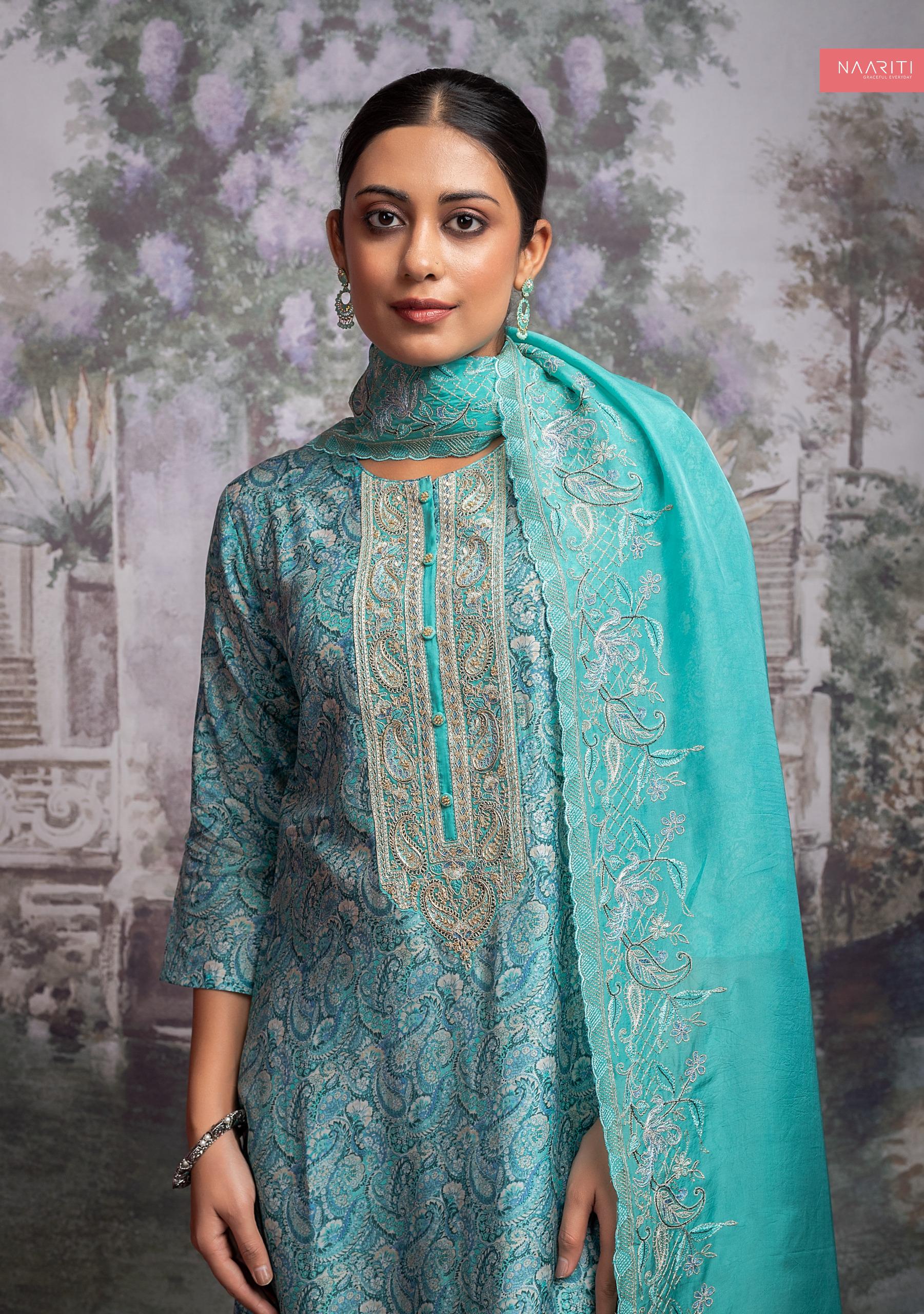 - Varaz 2078 Naariti Neck Work Unstitched Suits Dealer Ahmedabad Surat Wholesale Gujarat India Lowest Price Best Quality Buy Purchase Shipping Kurta Salwaar Kameez Also free Cash on delivery