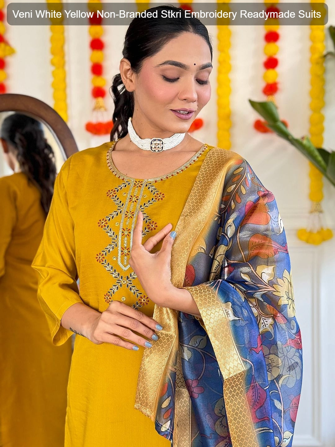 Veni White Yellow Non-Branded Stkri Embroidery Readymade Suits