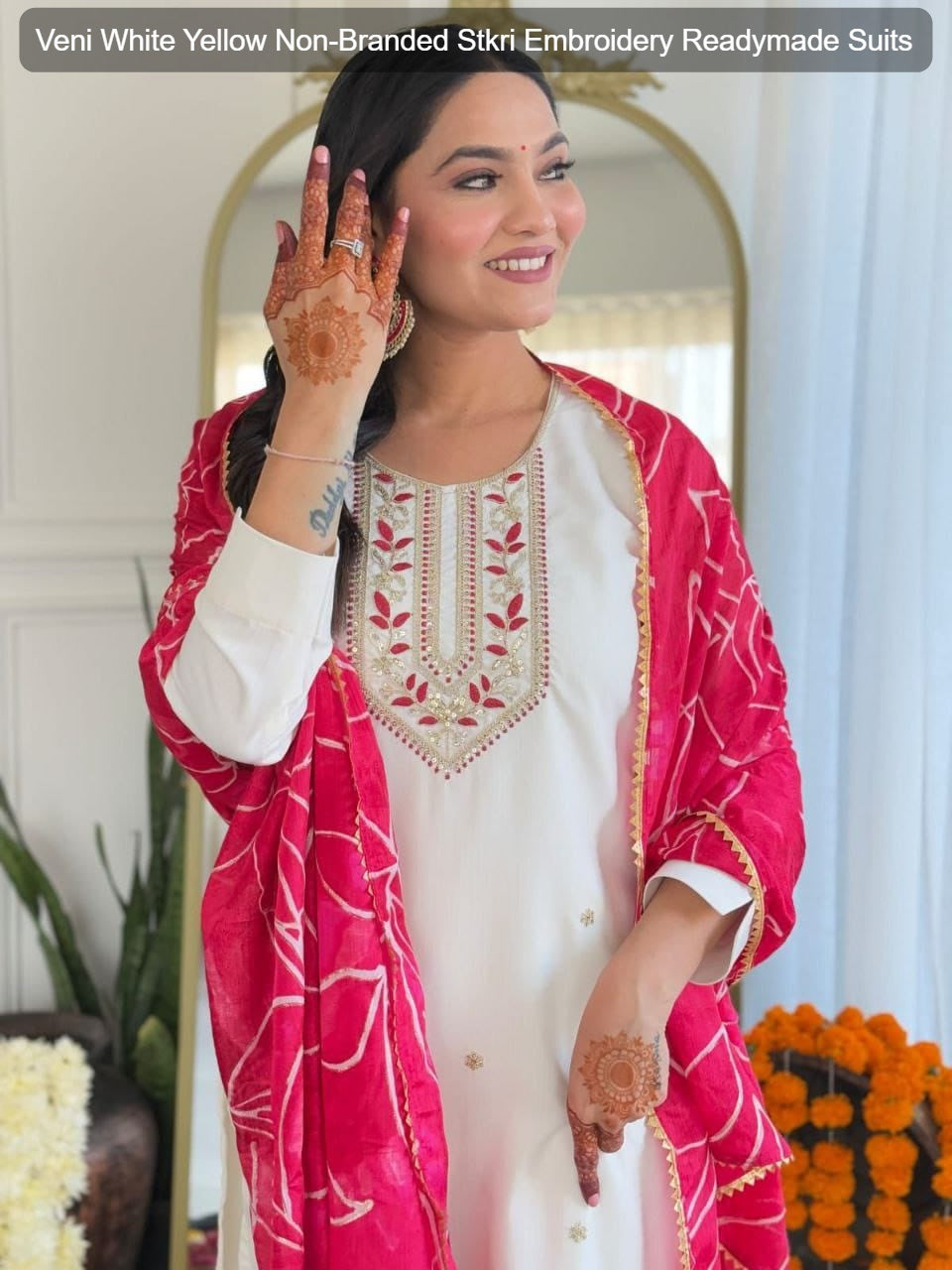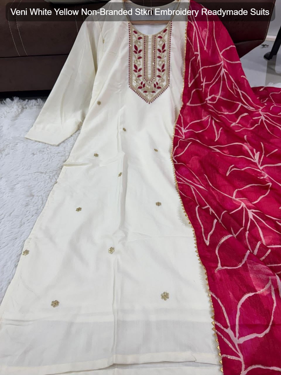 - Veni White Yellow Non-Branded Stkri Embroidery Readymade Suits Dealer Ahmedabad Surat Wholesale Gujarat India Lowest Price Best Quality Buy Purchase Shipping Kurta Salwaar Kameez Also free Cash on delivery
