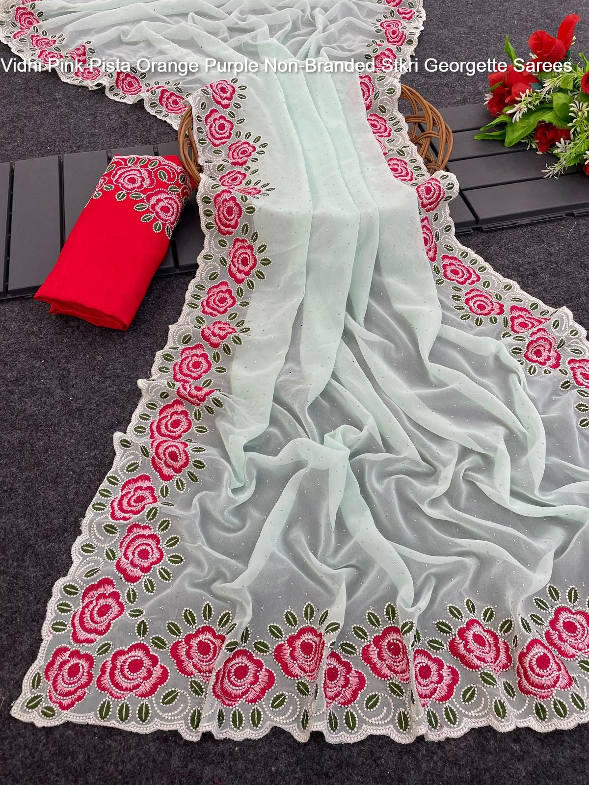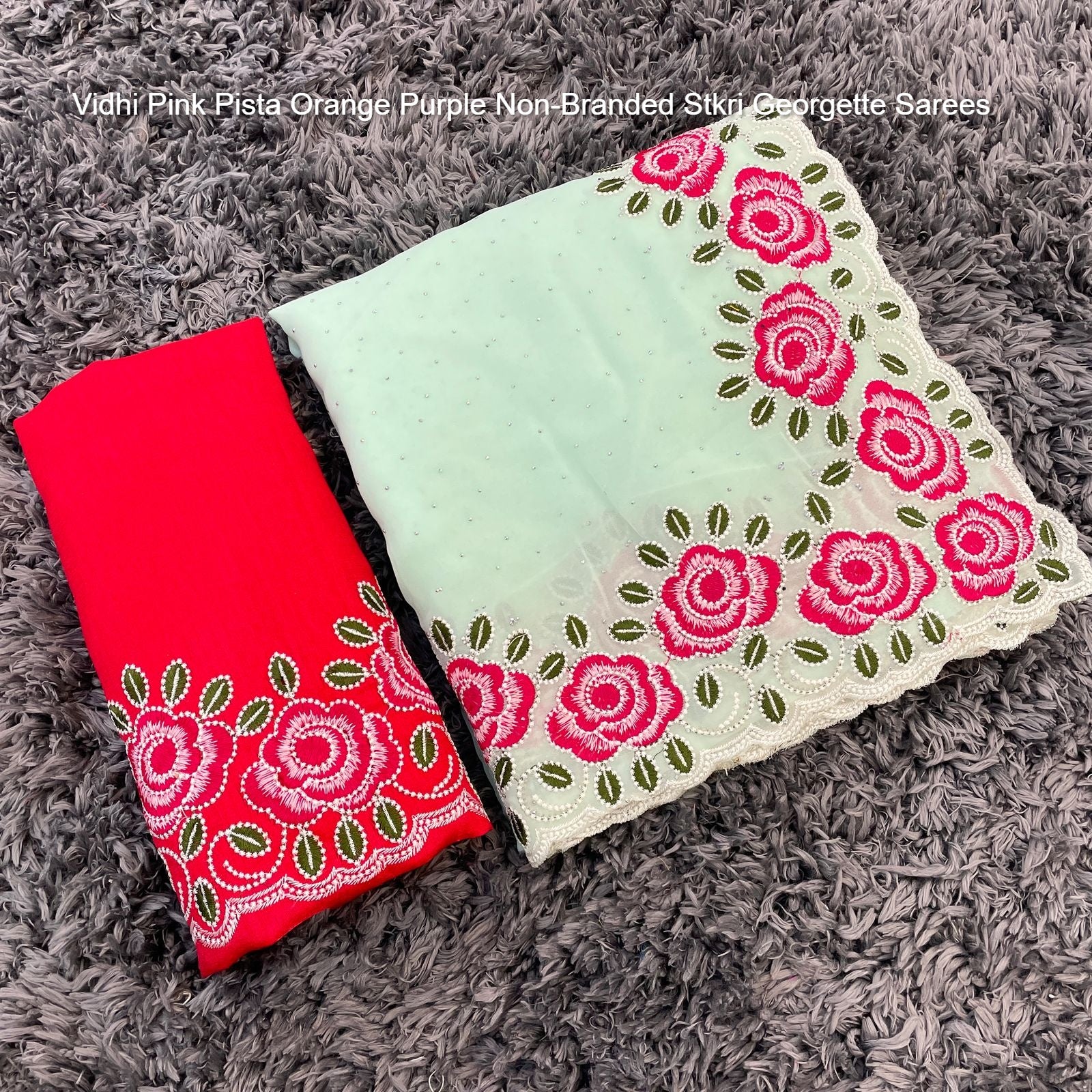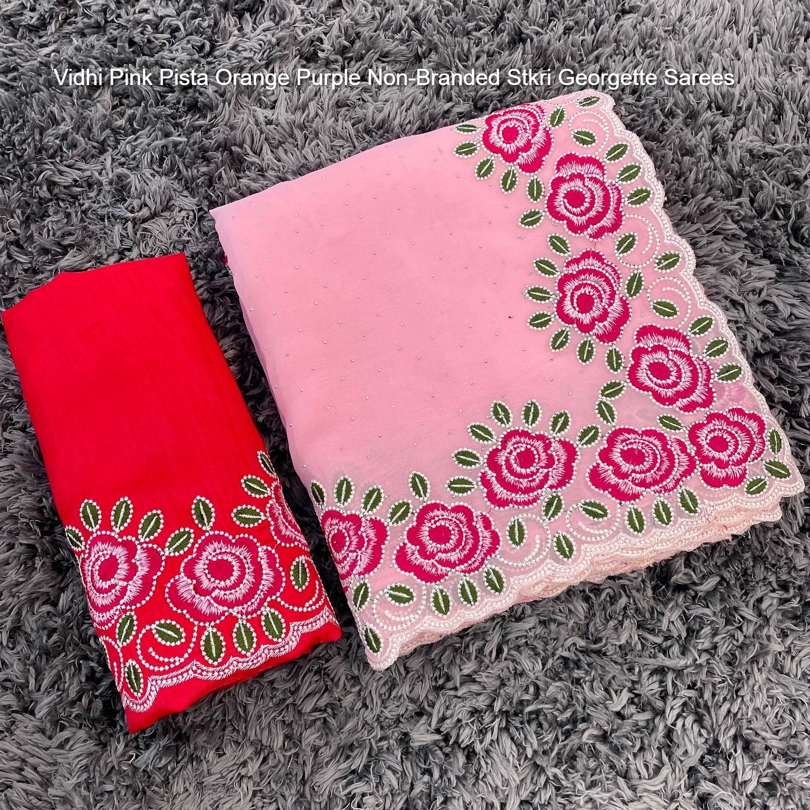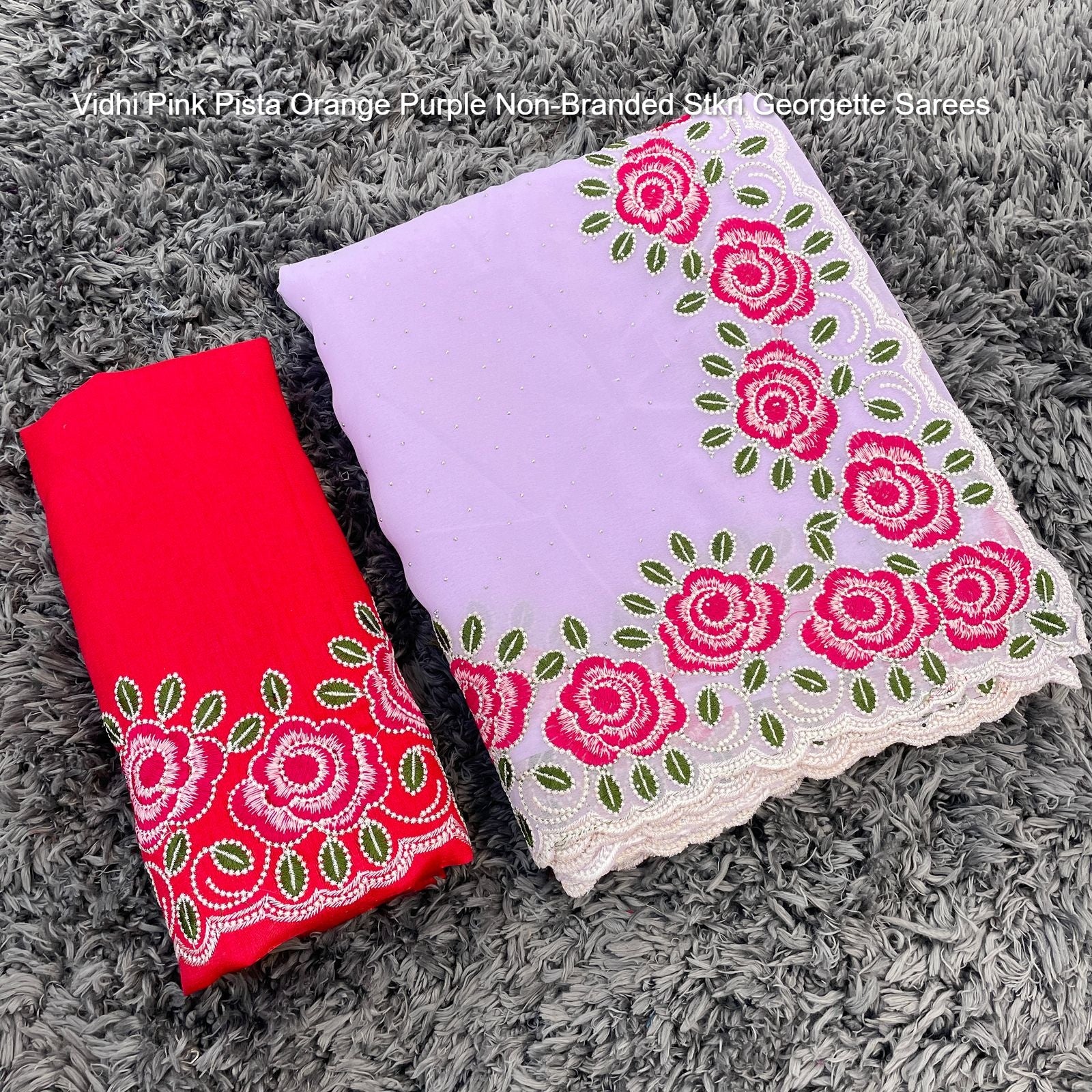 Vidhi Pink Pista Orange Purple Non-Branded Stkri Georgette Sarees