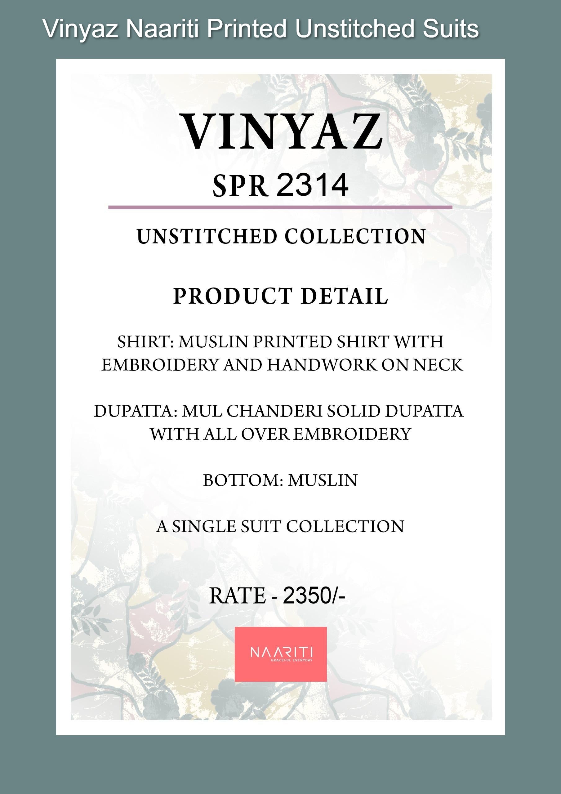 - Vinyaz Naariti Printed Unstitched Suits Dealer Ahmedabad Surat Wholesale Gujarat India Lowest Price Best Quality Buy Purchase Shipping Kurta Salwaar Kameez Also free Cash on delivery