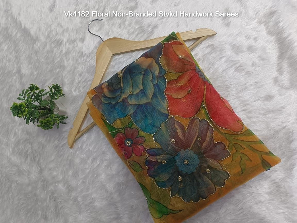Vk4182 Floral Non-Branded Stvkd Handwork Sarees