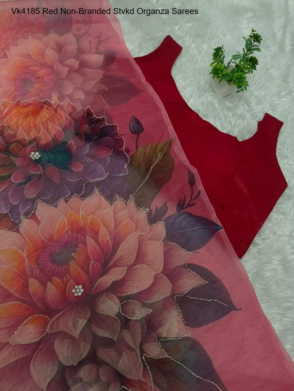 Vk4185 Red Non-Branded Stvkd Organza Sarees