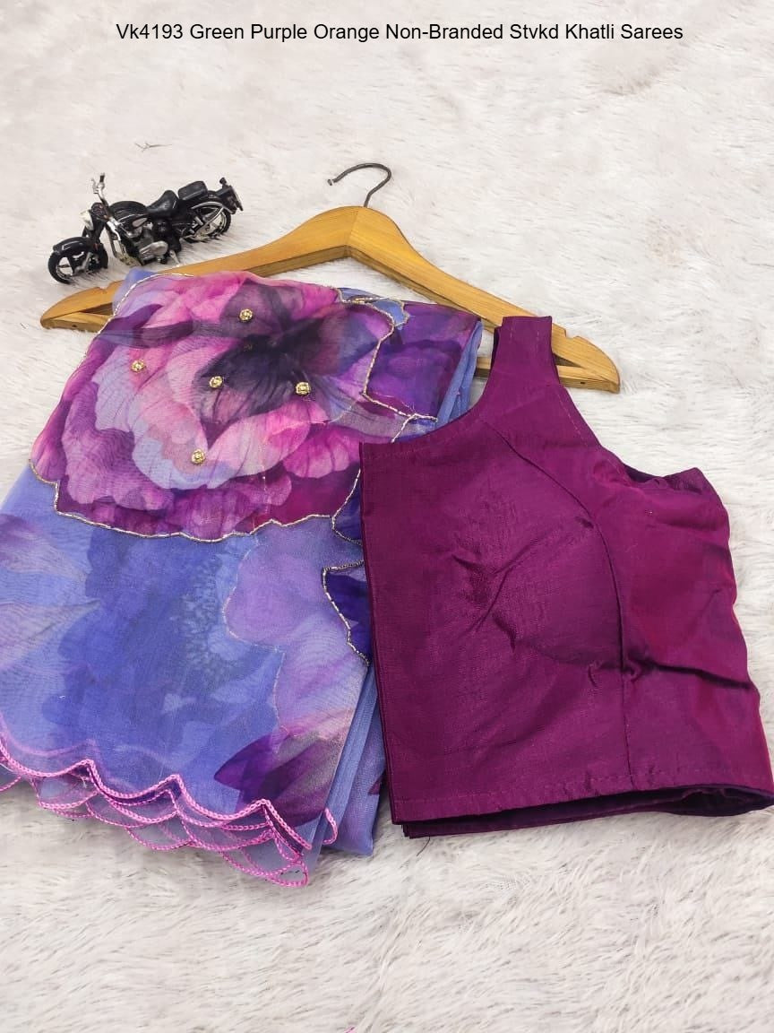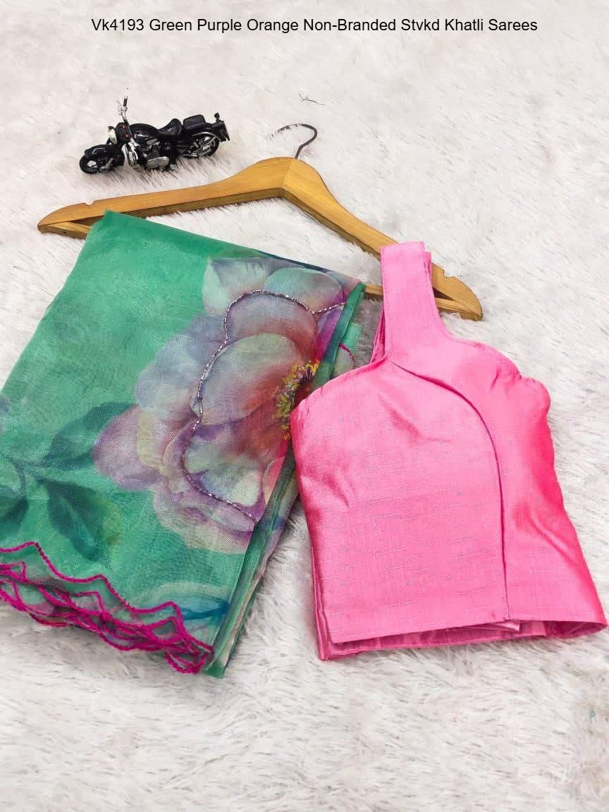 - Vk4193 Green Purple Orange Non-Branded Stvkd Khatli Sarees Dealer Ahmedabad Surat Wholesale Gujarat India Lowest Price Best Quality Buy Purchase Shipping Kurta Salwaar Kameez Also free Cash on delivery