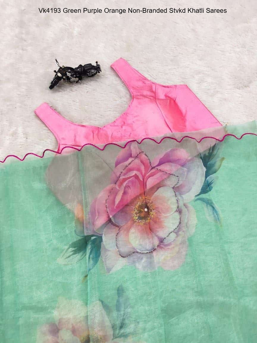 Vk4193 Green Purple Orange Non-Branded Stvkd Khatli Sarees