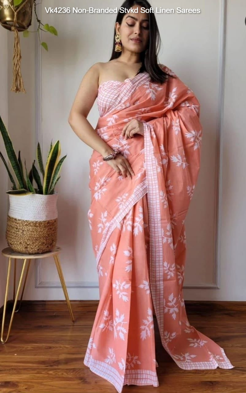 Vk4236 Non-Branded Stvkd Soft Linen Sarees