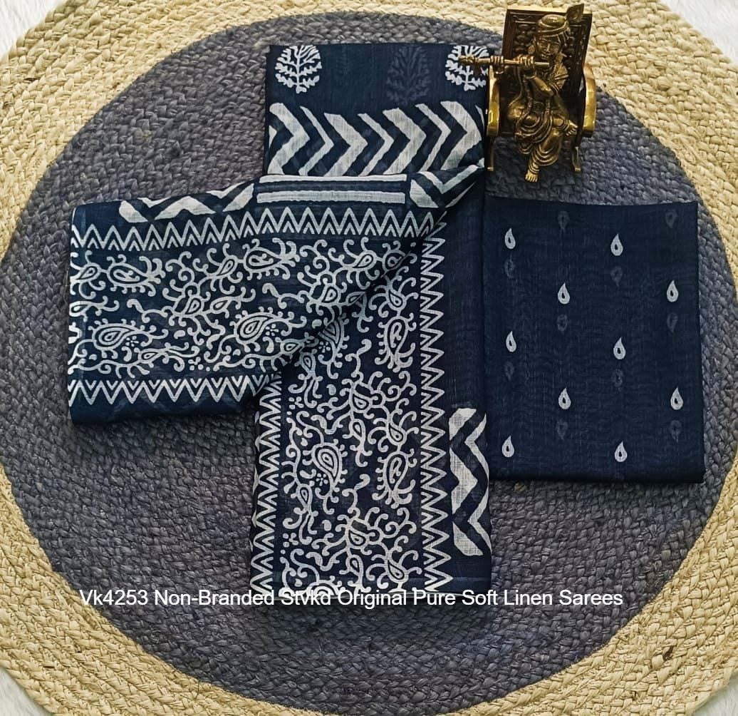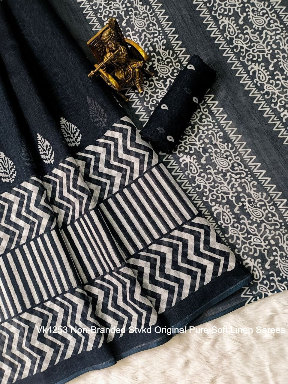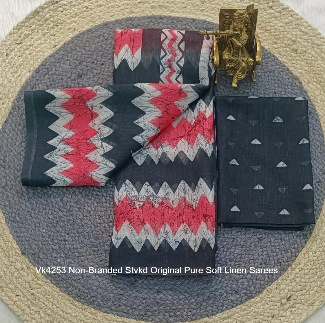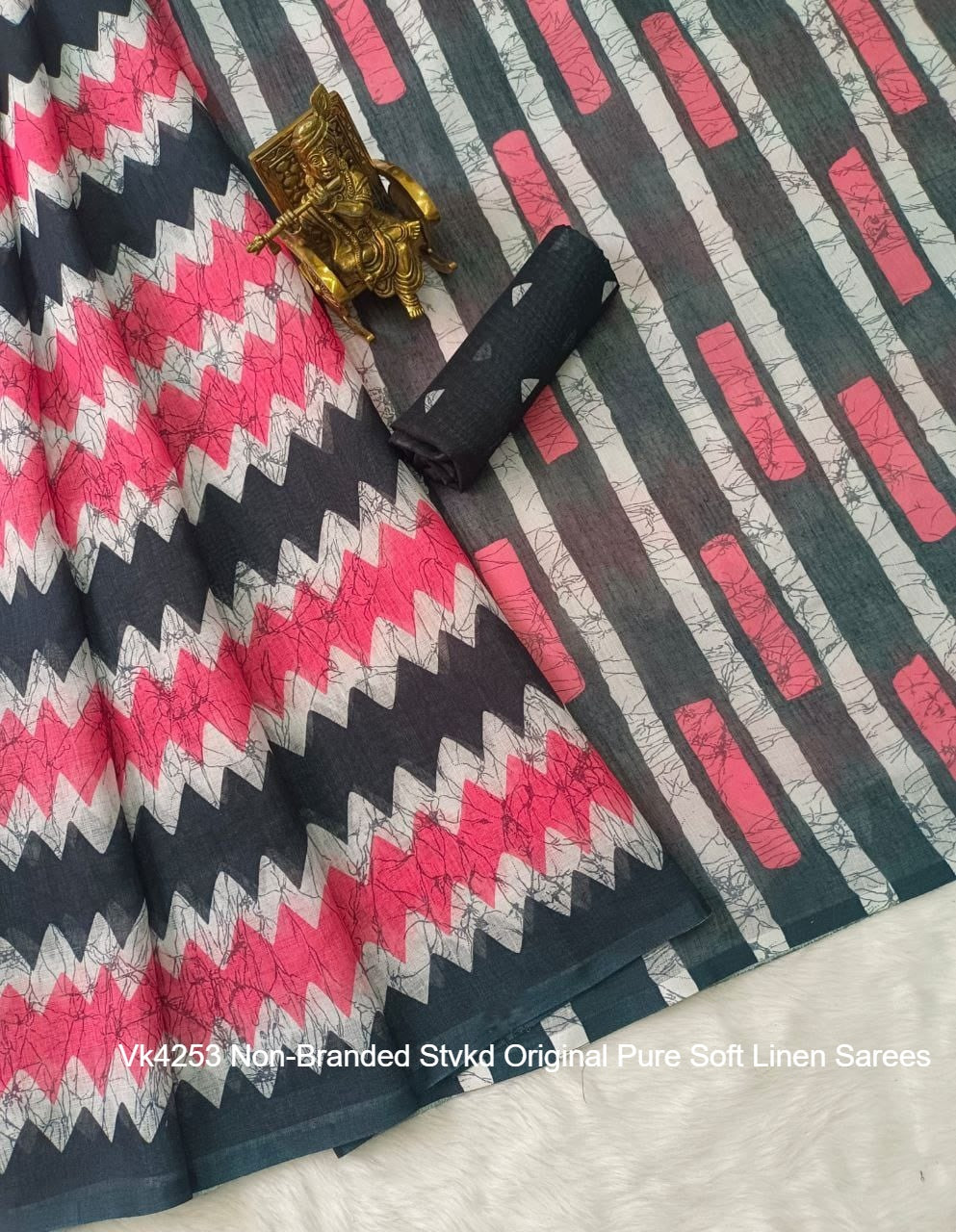 Vk4253 Non-Branded Stvkd Original Pure Soft Linen Sarees
